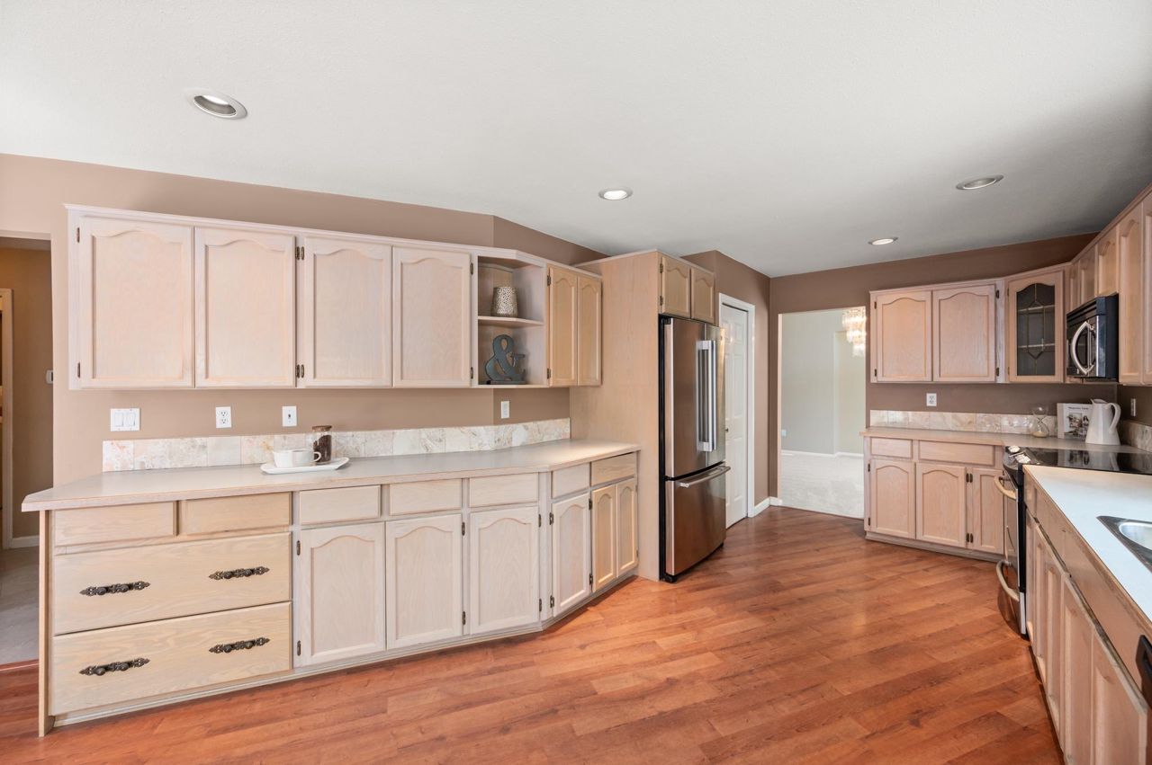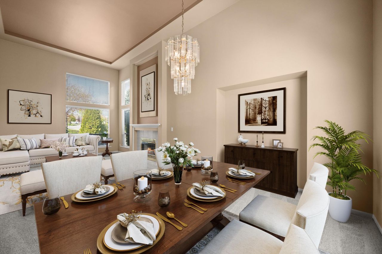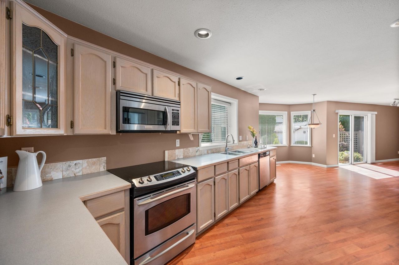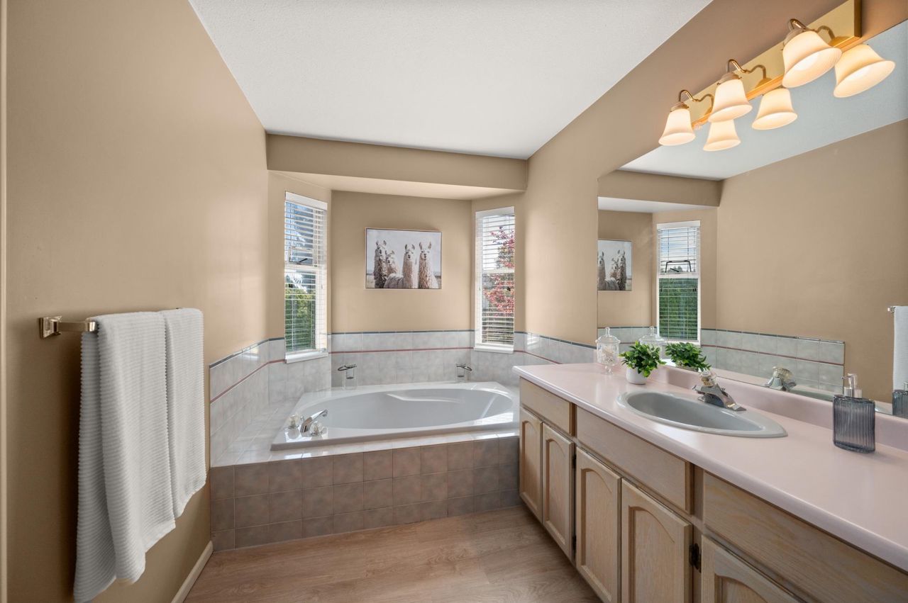 Nestled in the coveted neighborhood of Rosewood Park this 2-level home offers over 2600 sq ft of living space on a spacious 7800 sq ft property. Situated on a quiet family-friendly cul-de-sac, this home features 4 bedrooms, 3 bathrooms plus a den. The main level boasts high 13'5 ceilings in the living & dining rooms creating a grand and airy atmosphere. The open-concept kitchen w/ an eating area & family room is perfect for gatherings. The spacious primary bedroom features walk-in closets & 4-piece ensuite w/ soaker tub. Brand new flooring throughout the home adds to its fresh appeal. Enjoy the warmth of 2 gas fireplaces and the convenience of a double garage w/ a long driveway for extra parking Step outside to the ultra-private backyard with a patio, offering a serene retreat.