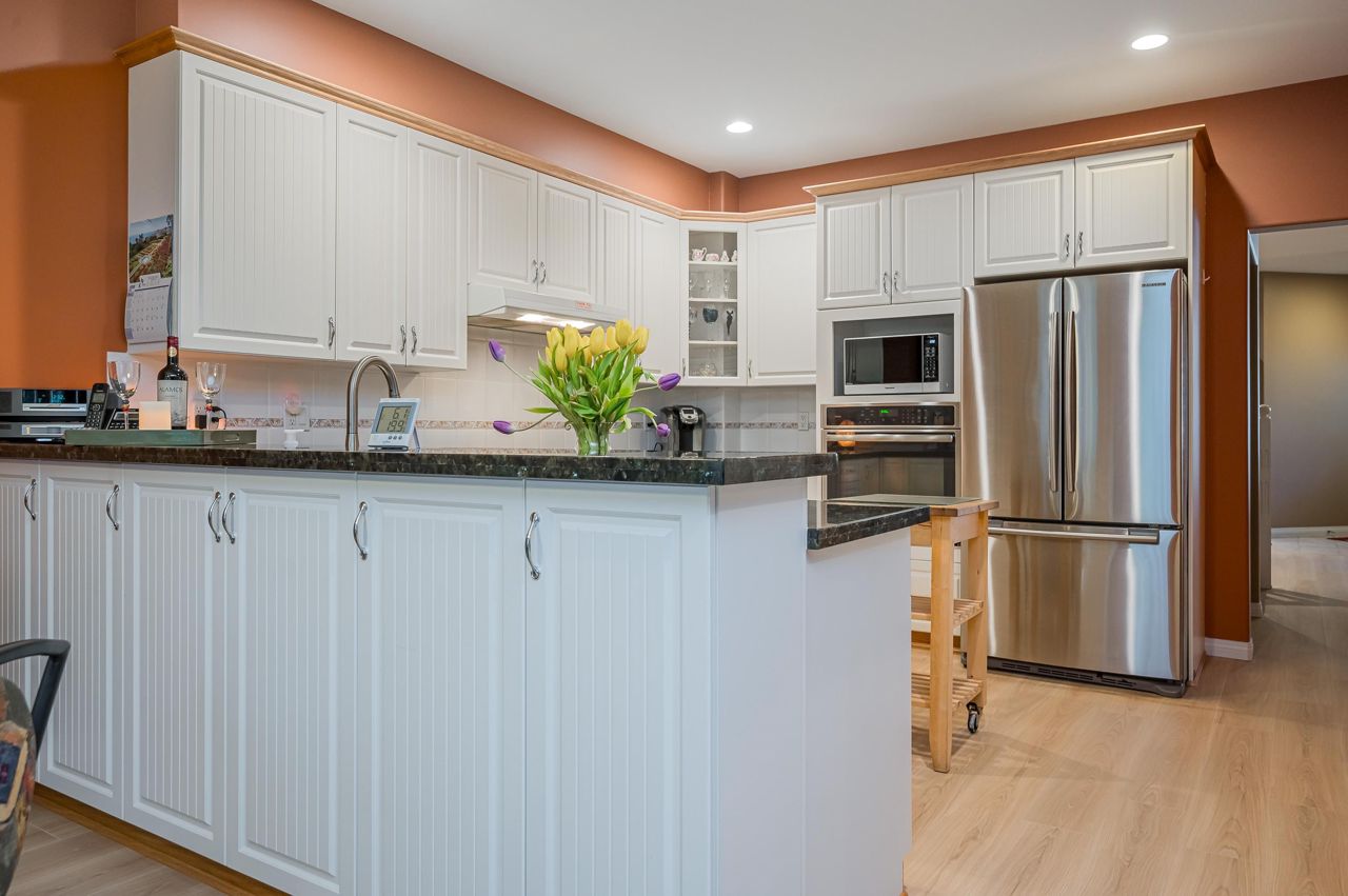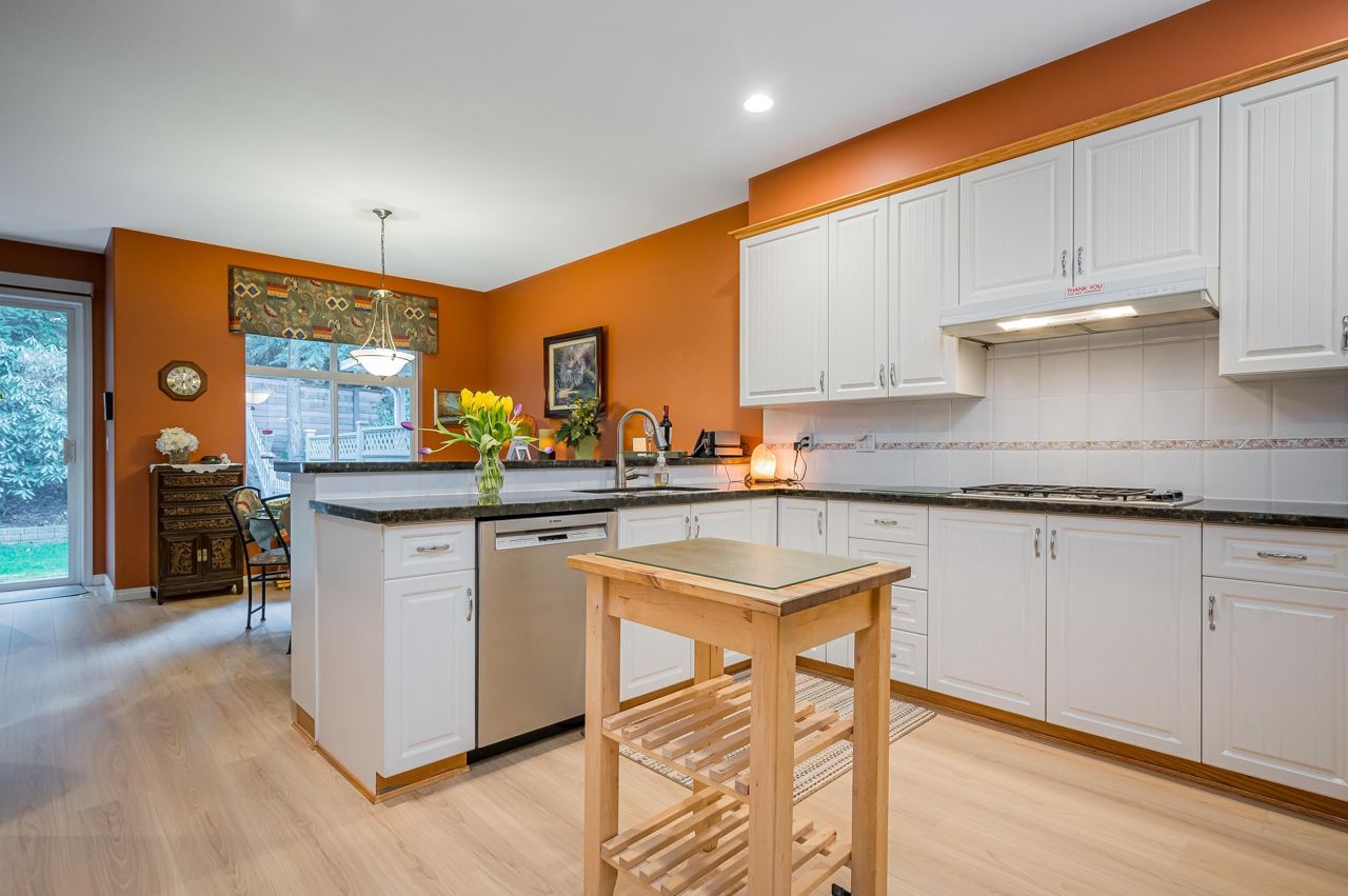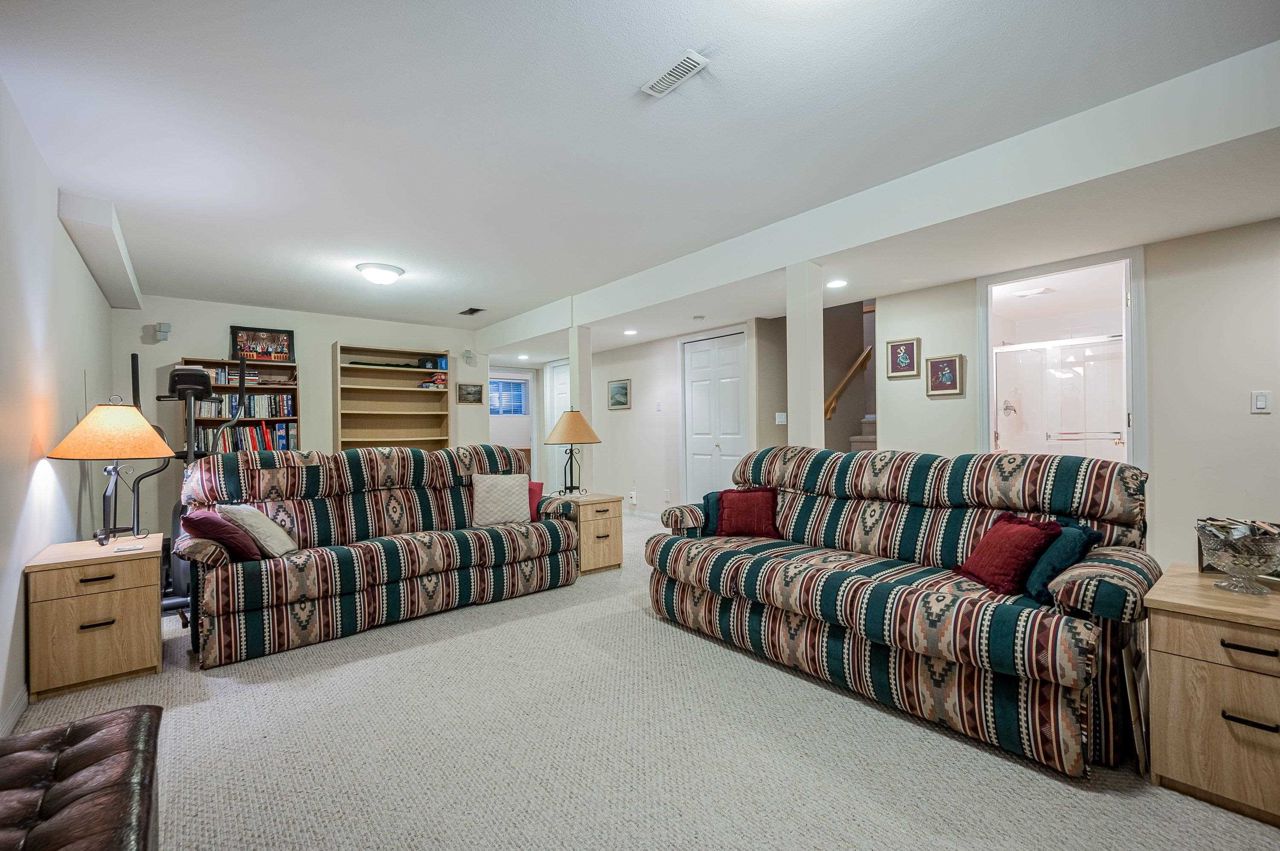 Beautiful "LAKEBRIDGE' 2/Storey & Basement Townhome located in Boundary Park. Finished Basement w/huge rec. room or media room, large bdrm, 3pce. bathrm & large storage rm. Main level features: Living rm. w/high ceilings & gas f/p.+ formal dining room with French doors to Family room. Bright Kitchen with Granite countertops, white cabinets with extended Pantry wall cabinets & extra cabinets below counter, S/S appliances, Bosch Gas Range, New Bosch D/W, New Sink +Tap. Separate Eating Area overlooking large & private backyard. Family Room with Gas Fireplace & doors to patio & backyard. Upper level features extra large Primary bedroom with 5 pce. ensuite, 2 other large bedrooms, one with outdoor balcony. 4-pce. main bathroom & laundry room. Nearby is shopping, restaurants, schools & transit.
