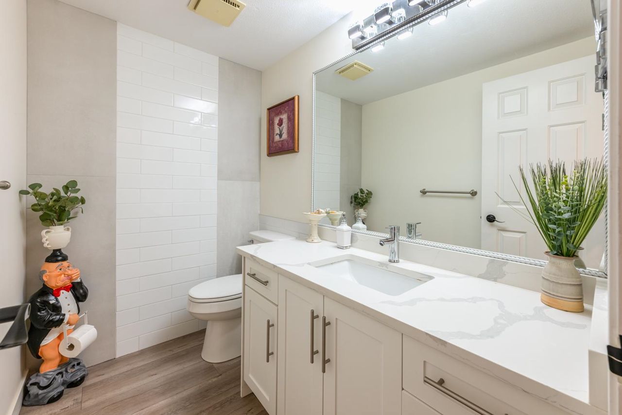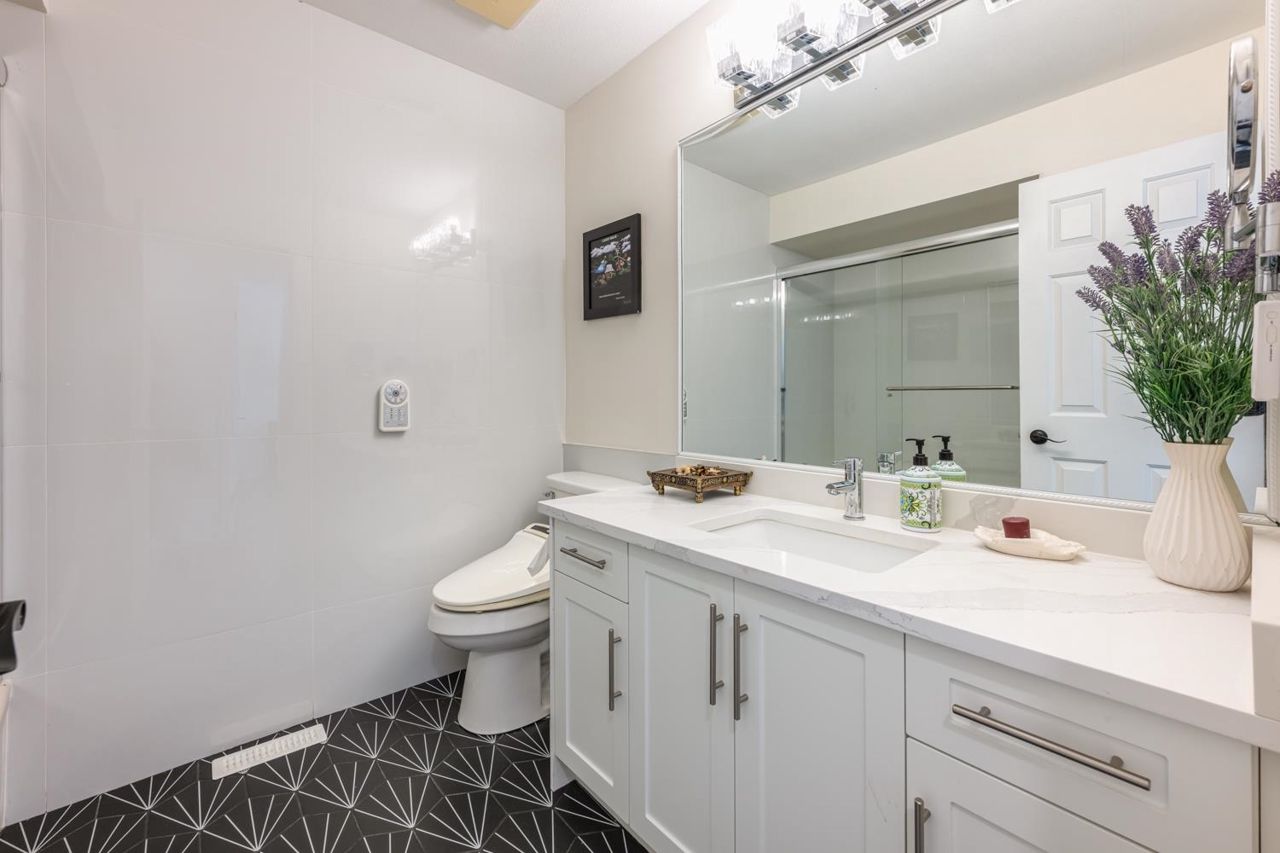 Fully Renovated Unit in the sought-after Lakewood Estates, one of the best complex's near Boundary Park! This 2 Level TH features a fantastic open-concept layout, $170K+ spent on renovation from top to bottom with new paint, laminate/hardwood flooring, lighting, SS Appliances/cabinets/quartz countertops & tile in the kitchen & bathrooms. Master ensuite boasts double sinks + bonus vanity, 2 ppl jacuzzi, steam shower with new doors/floors/marble tiles. Designer 3D Feature wall in staircase. BONUS Den on main floor, cozy fireplace & BEAUTIFUL backyard. Double garage with HUGE driveway space for at least 2 more cars. 55+ Age Restricted. But DON'T worry, your children and grandchildren can still sleep overnight for 30 days max within 1 year! Spouse <55 is permitted. Open House 2-4pm, Jan 28th