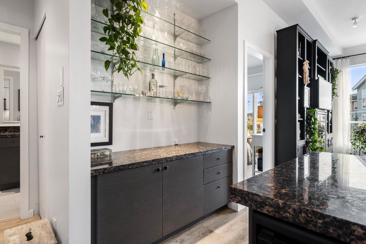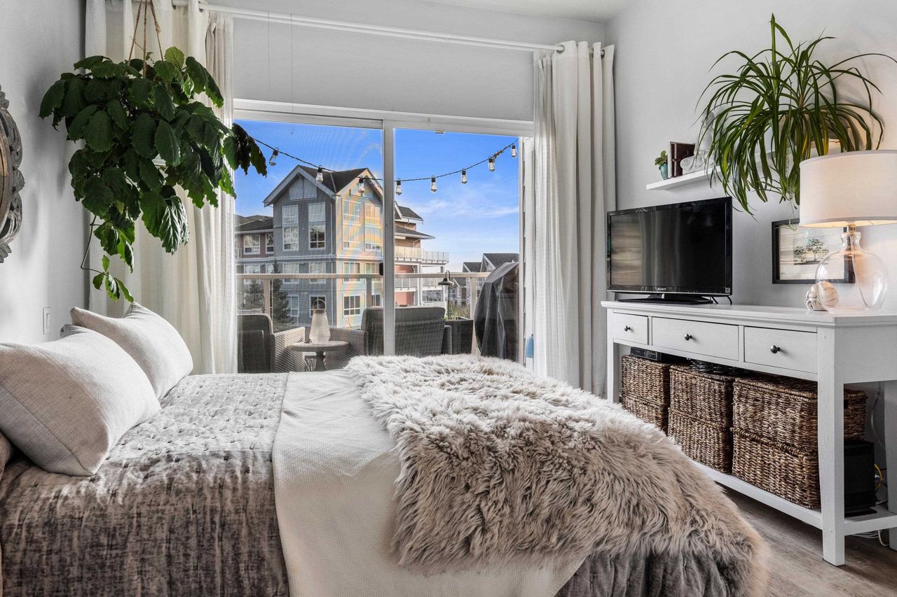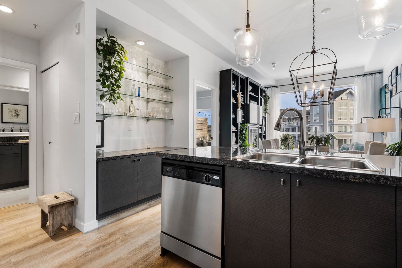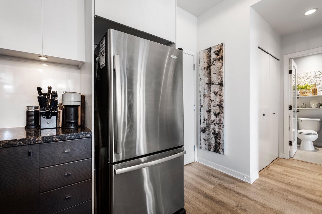 Welcome to the desirable Waterstone! This stunning 1 bedroom PENTHOUSE features vinyl plank flooring, a MODERN KITCHEN with granite counters, stainless steal appliances, updated light fixtures and a custom built in with cabinets and glass shelving. The living room offers plenty of natural light from the LARGE WINDOWS. The spacious bedroom has access to the 4 piece bathroom and a large sliding glass door leading to the NICE SIZED PATIO with privacy screen and VIEWS OF THE WATER FEATURE. This condo also includes a new in-suite washer and dryer. Waterstone offers resort style amenities including INDOOR 60' LAP POOL, HOT TUB, dry and steam sauna, well equipped fitness centre, 17 seat theatre room, game room and more! Call for more info!