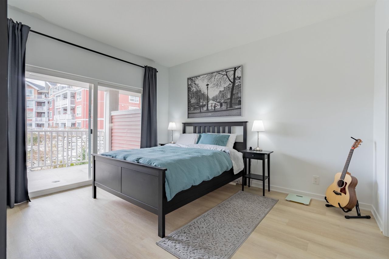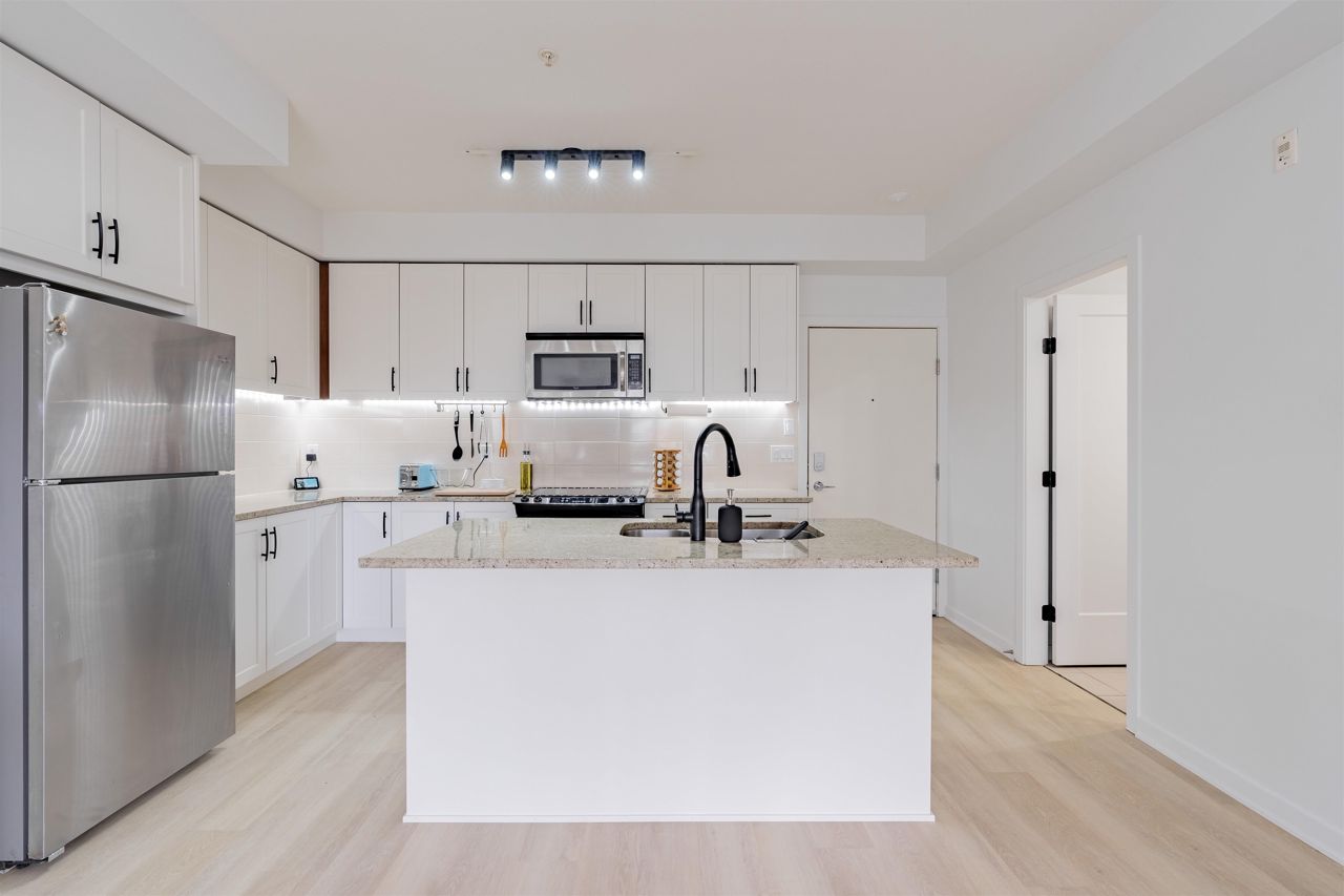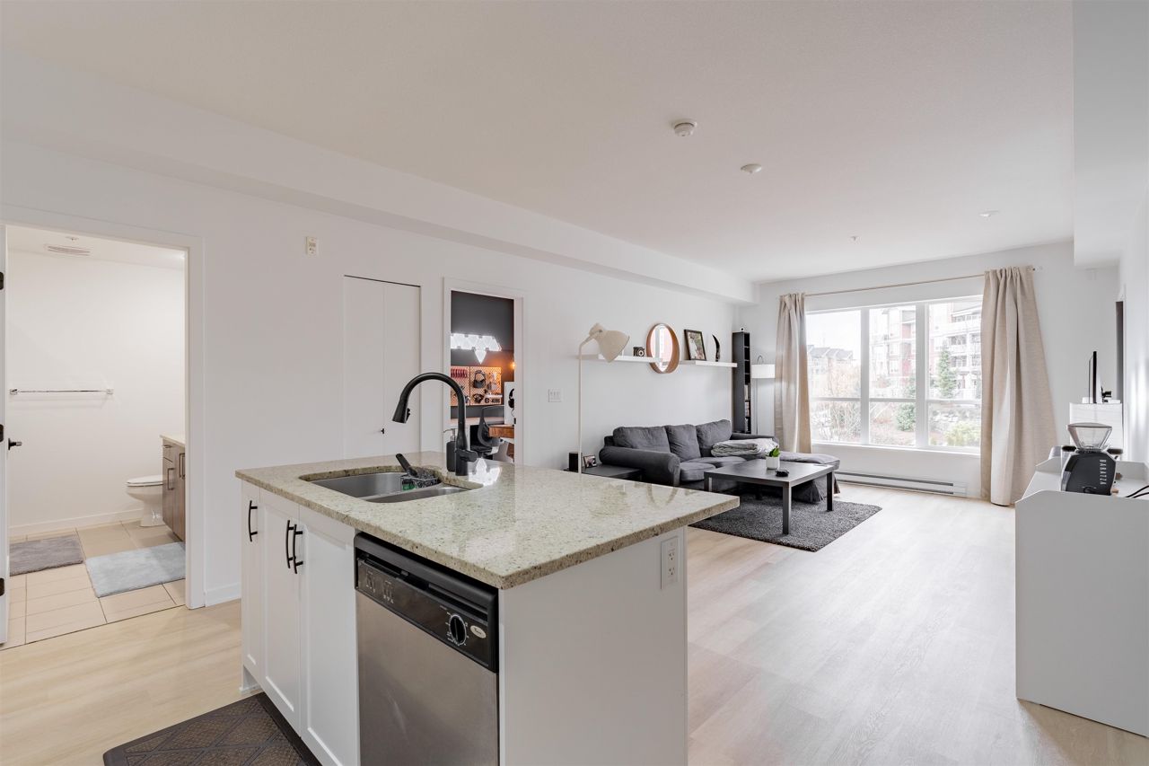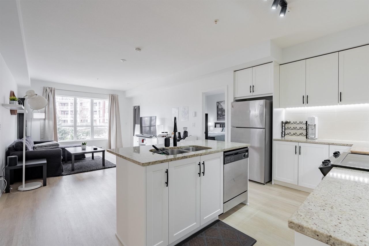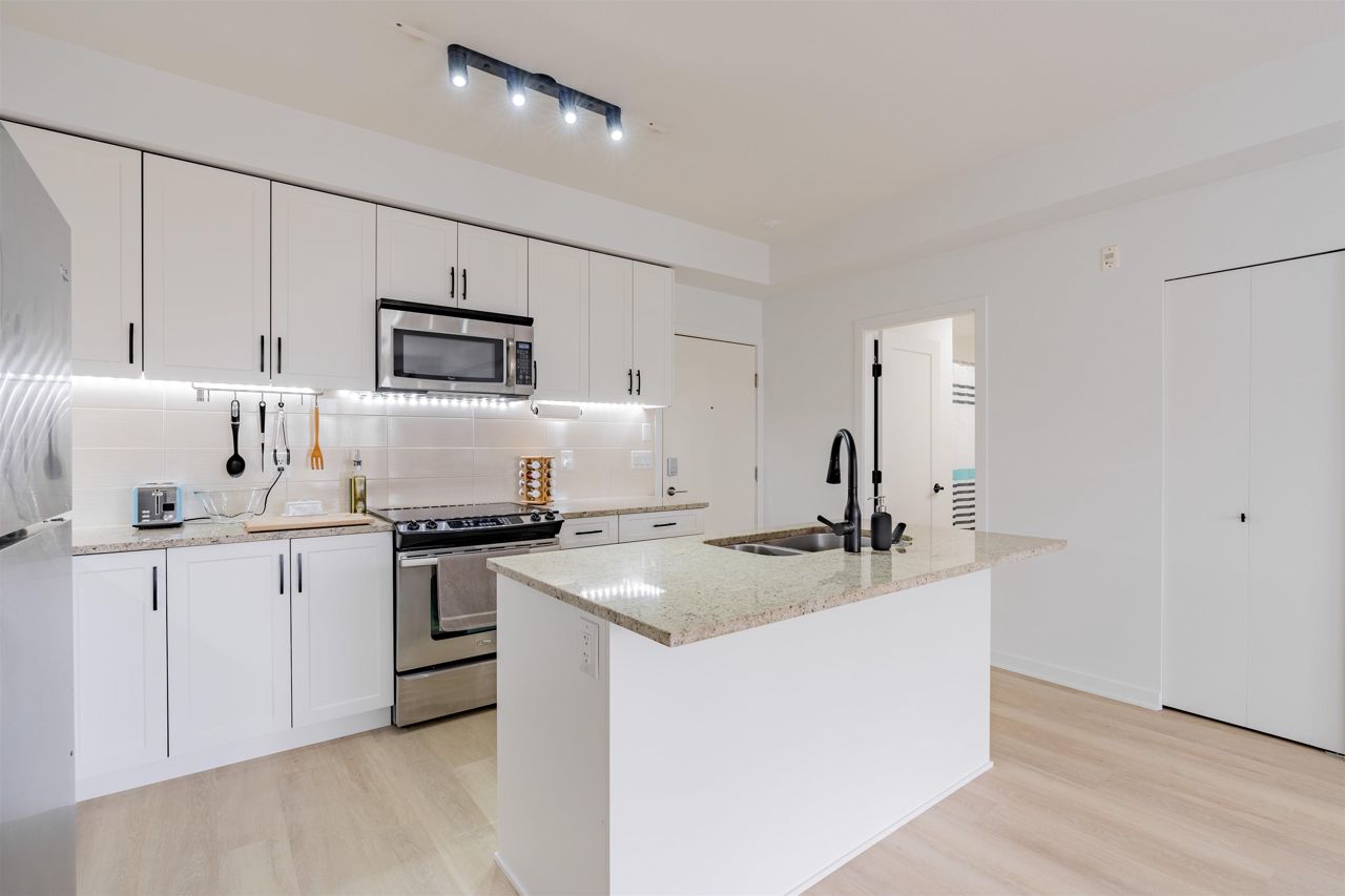 Welcome home to your bright West facing, updated 2 bed 2 bath condo in desirable Waterstone. This ideal layout features a large open living area dividing each bedroom. Updated kitchen cabinets, brand new flooring, newer washer and dryer, and fresh paint make this move in ready with nothing to do. Waterstone comes complete with one of the best amenity centres including a 17 seat theatre, indoor pool, dry & steam saunas, fully equipped fitness centre, chef's kitchen, fireside lounges, fire pit, games room & more! Centrally located within walking distance of grocery stores, restaurants, pubs, breweries, Hwys 1 & 10 and future Skytrain. Open House CANCELLED