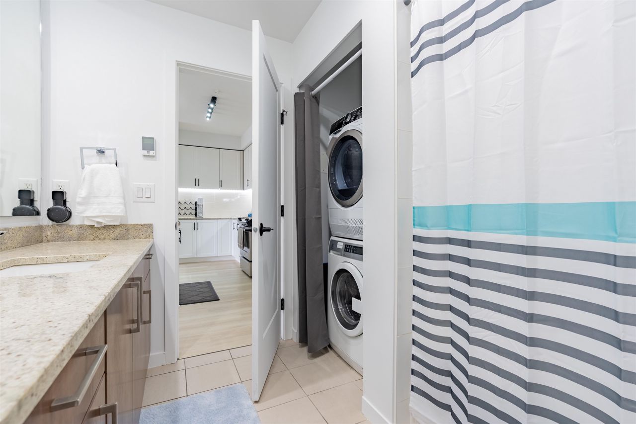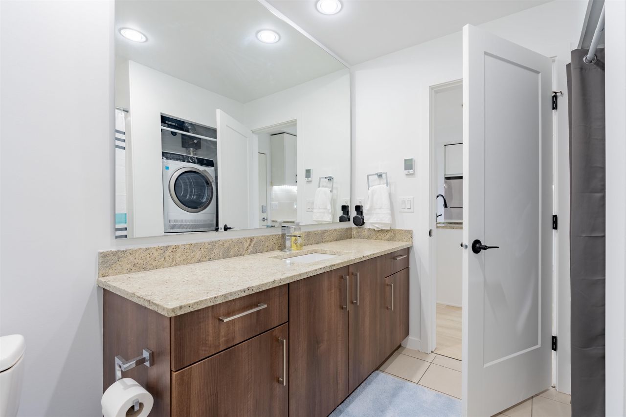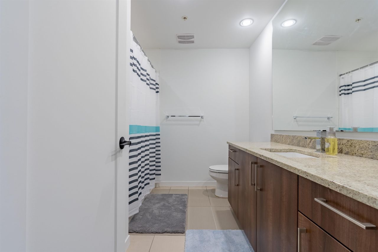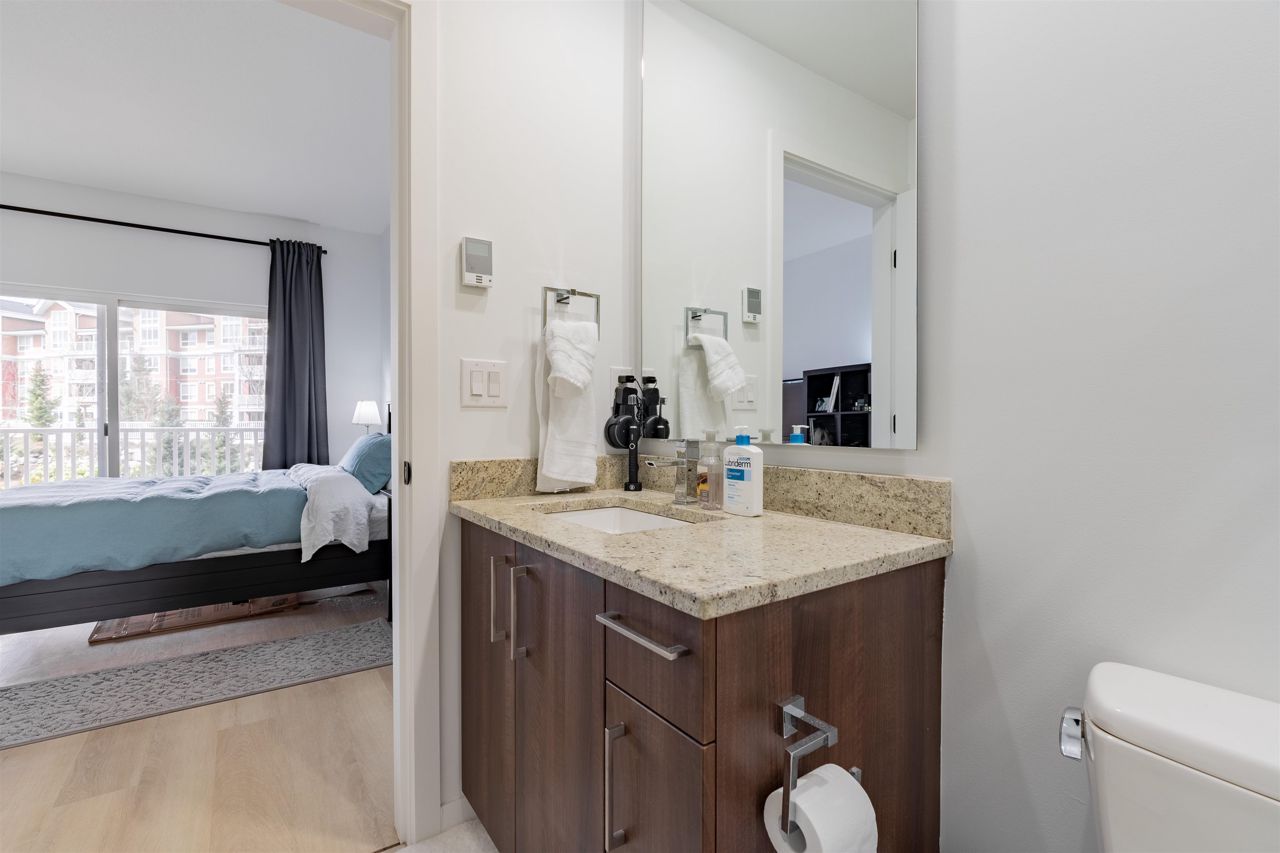 Welcome home to your bright West facing, updated 2 bed 2 bath condo in desirable Waterstone. This ideal layout features a large open living area dividing each bedroom. Updated kitchen cabinets, brand new flooring, newer washer and dryer, and fresh paint make this move in ready with nothing to do. Waterstone comes complete with one of the best amenity centres including a 17 seat theatre, indoor pool, dry & steam saunas, fully equipped fitness centre, chef's kitchen, fireside lounges, fire pit, games room & more! Centrally located within walking distance of grocery stores, restaurants, pubs, breweries, Hwys 1 & 10 and future Skytrain. Open House CANCELLED