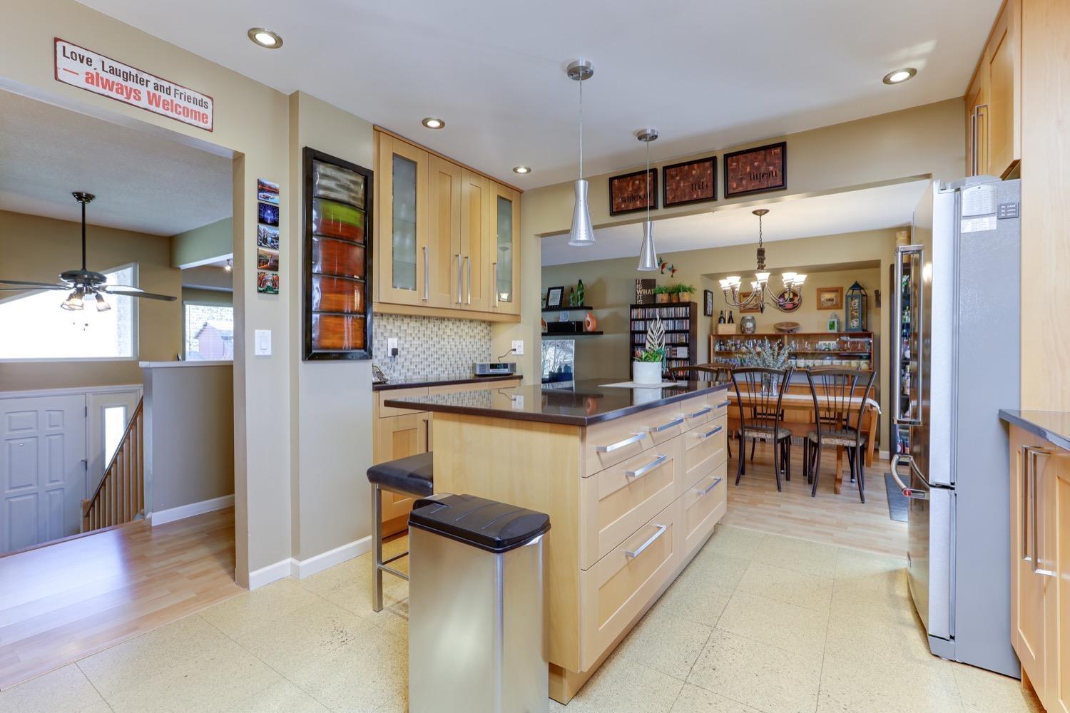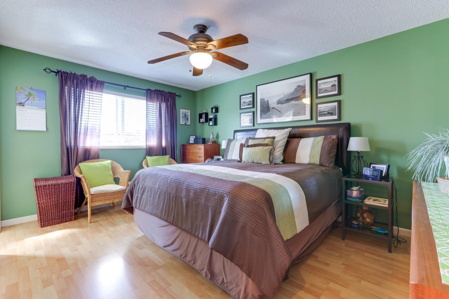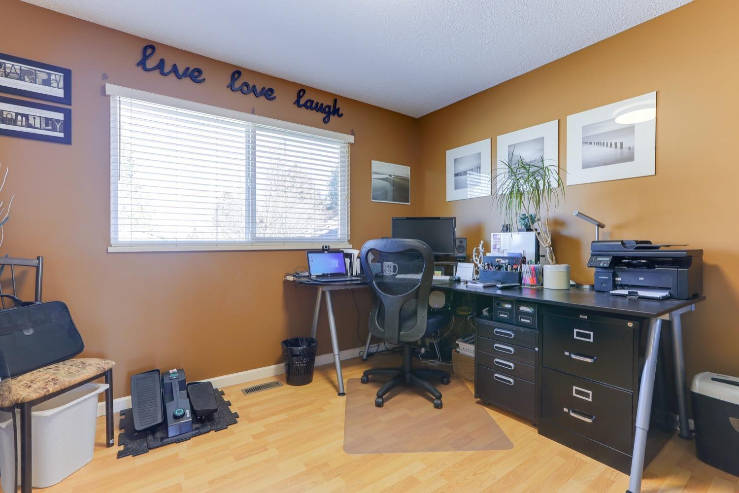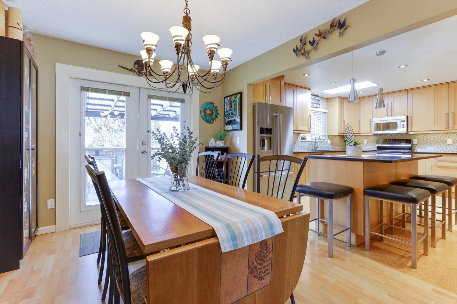 Designed with love for families! Original owners have beautifully maintained this warm, comfortable family home. Loving touches include updated kitchen with quartz topped large island, cork floor for comfort, skylight for added brightness. Family size diningroom offers direct access to covered, tiered deck with hot tub, party size livingroom features centre gas fireplace. Primary BR includes 3 pce ensuite, double closets, remaining bedrooms great for kids or guests. Lower floor includes family/rec room with centre gas fireplace, built in desk ideal for home office or studies, 4th BR, 3 pce bath with double shower, laundry area, storage, direct access to garage and gorgeous fenced yard offers fruit trees, huge patio, more storage, pergola. Bonus! 100 foot swale at back guarantees privacy! (id:22211)