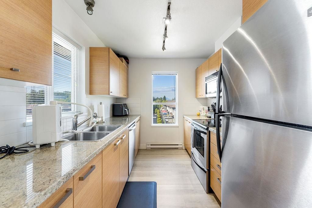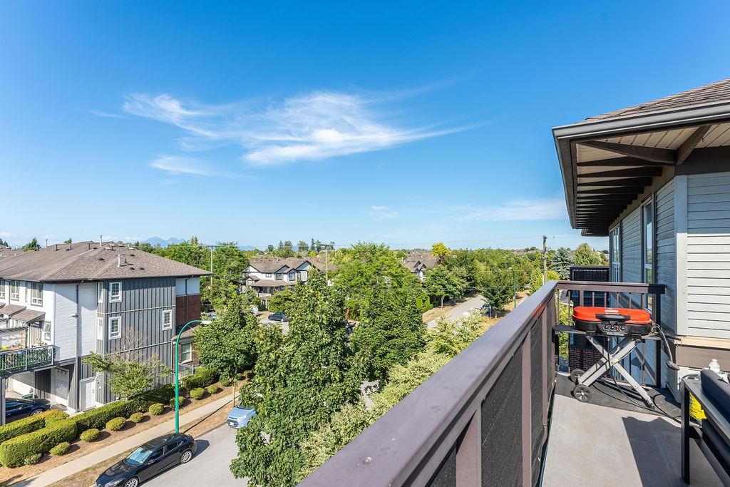 THE COMPASS in CLAYTON HEIGHTS! This unit is the whole package! TOP FLOOR, END UNIT with BEAUTIFUL 270 DEGREE MOUNTAIN/GREENBELT VIEWS from the SPACIOUS DECK! Immaculately kept with new laminate flooring new paint and updated washrooms, 11" ceilings, kitchen windows with mountain views and Master bedroom with walk in closet and black out blinds. 2 PARKING STALLS and secure visitor parking. Grassy courtyard great for kids and clubhouse! Fabulous location with grocery stores, restaurants, Starbucks, Shoppers, and a ton of other amenities right at your fingertips! Rentals allowed and pet-friendly strata. Very well-run and well-built building. One street over from future sky train line.