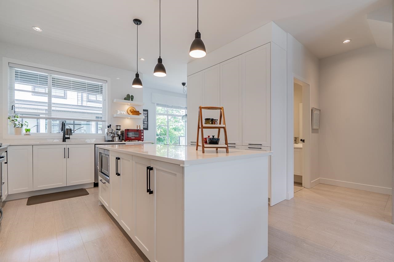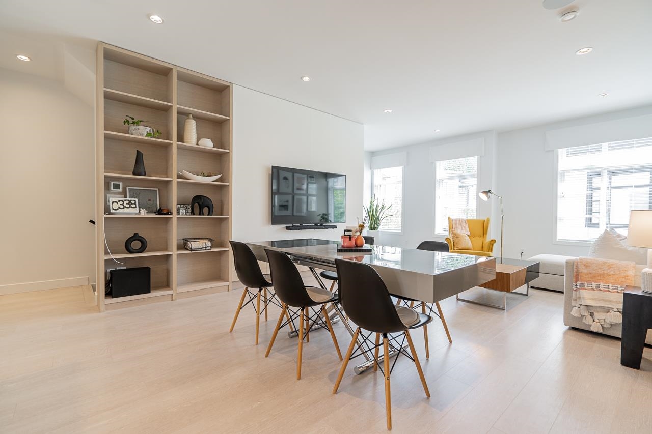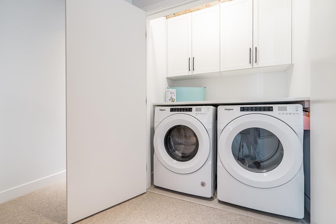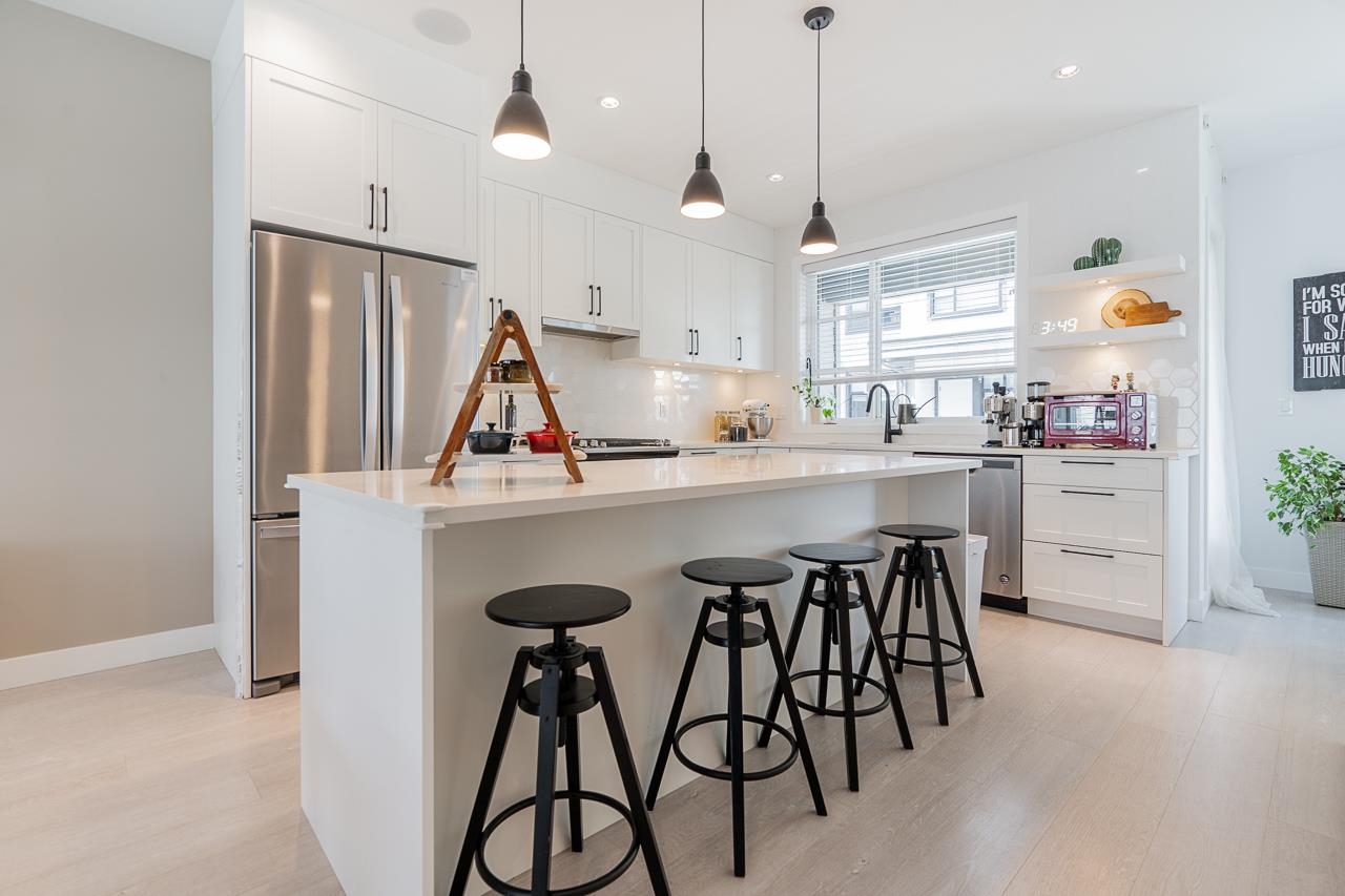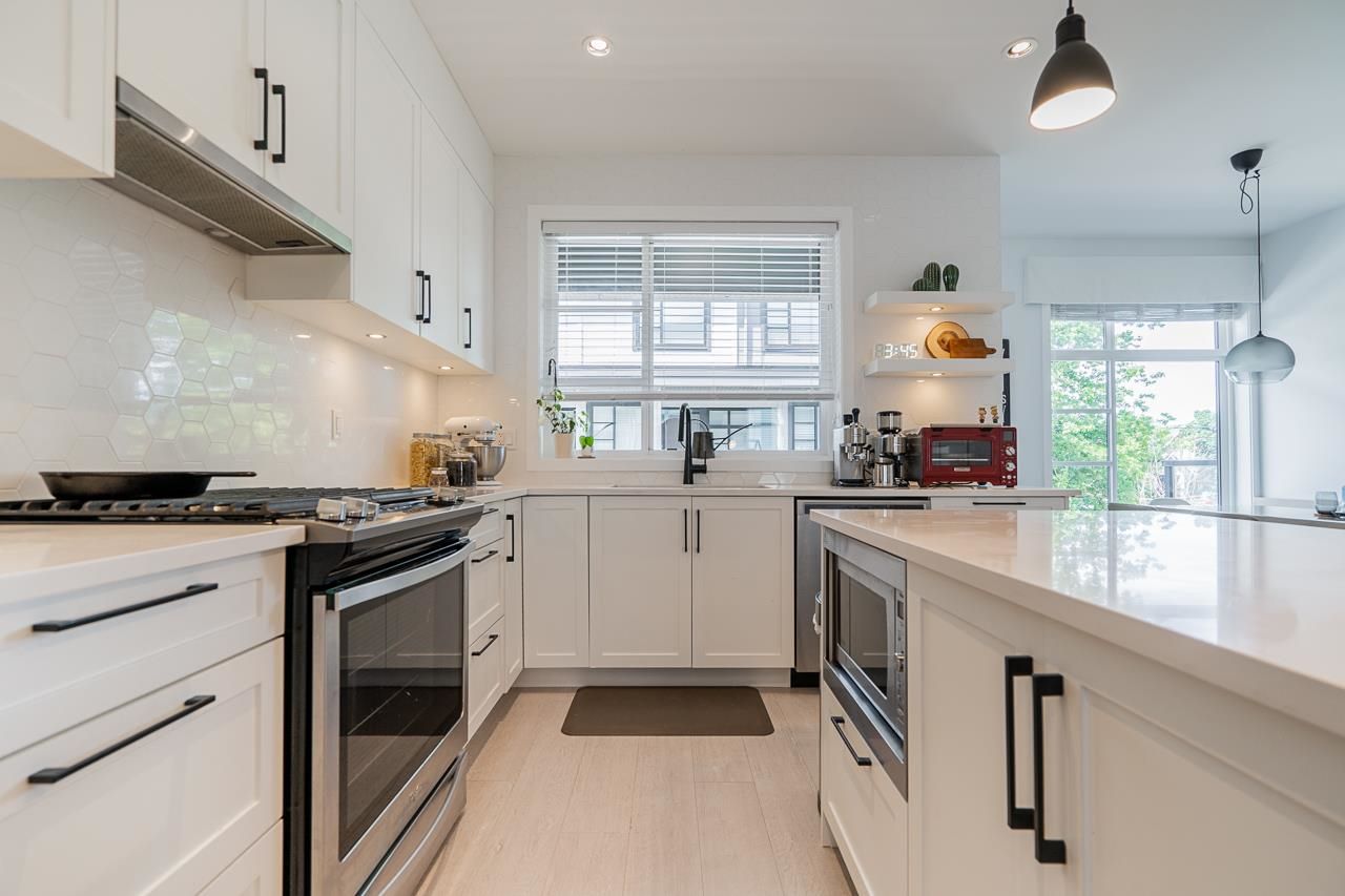 Welcome to Elston ,Green Gold Certified complex. This was previously a showhome with all the bells and whistles including bonus shelves, organizers and custom millwork. This townhouse features a very functional and large open concept plan offering 1943 sqft of living space, Central A/C, bright south-facing private patio, 9' ceiling on main and upper level bringing lots of natural lights. Not to mention a balcony on the main floor by the kitchen, a beautiful chef-inspired kitchen with premium appliances, quartz countertops with island, pantry and durable German engineered laminate floor on main level. Double Side by side Garage with 240V rough-in for EV and hot water on demand.