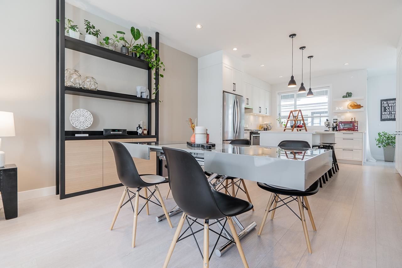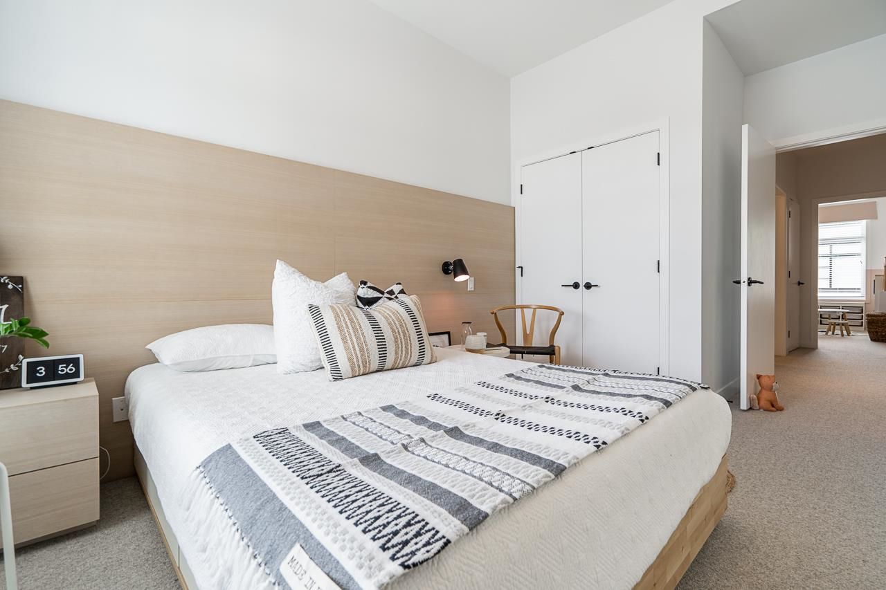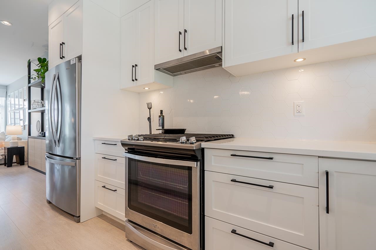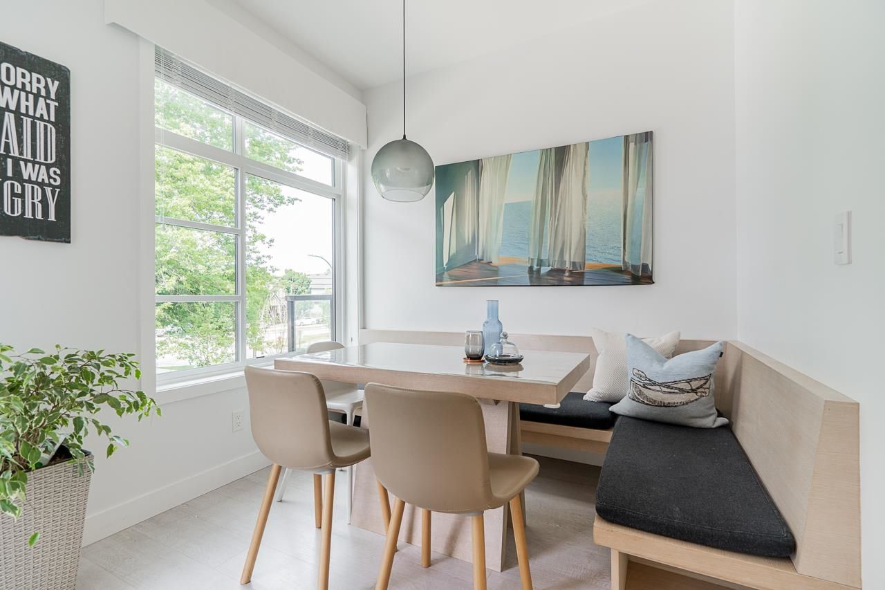 Welcome to Elston ,Green Gold Certified complex. This was previously a showhome with all the bells and whistles including bonus shelves, organizers and custom millwork. This townhouse features a very functional and large open concept plan offering 1943 sqft of living space, Central A/C, bright south-facing private patio, 9' ceiling on main and upper level bringing lots of natural lights. Not to mention a balcony on the main floor by the kitchen, a beautiful chef-inspired kitchen with premium appliances, quartz countertops with island, pantry and durable German engineered laminate floor on main level. Double Side by side Garage with 240V rough-in for EV and hot water on demand.