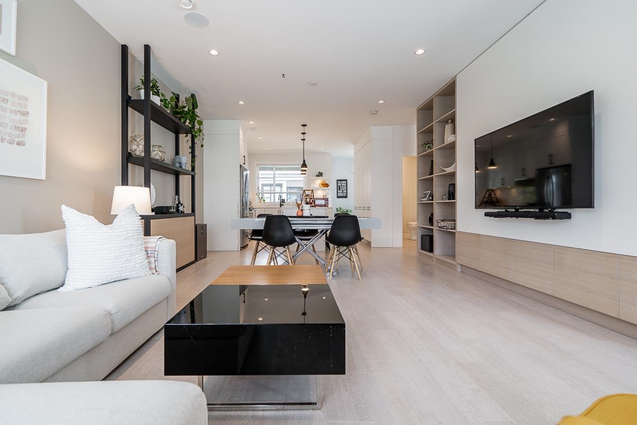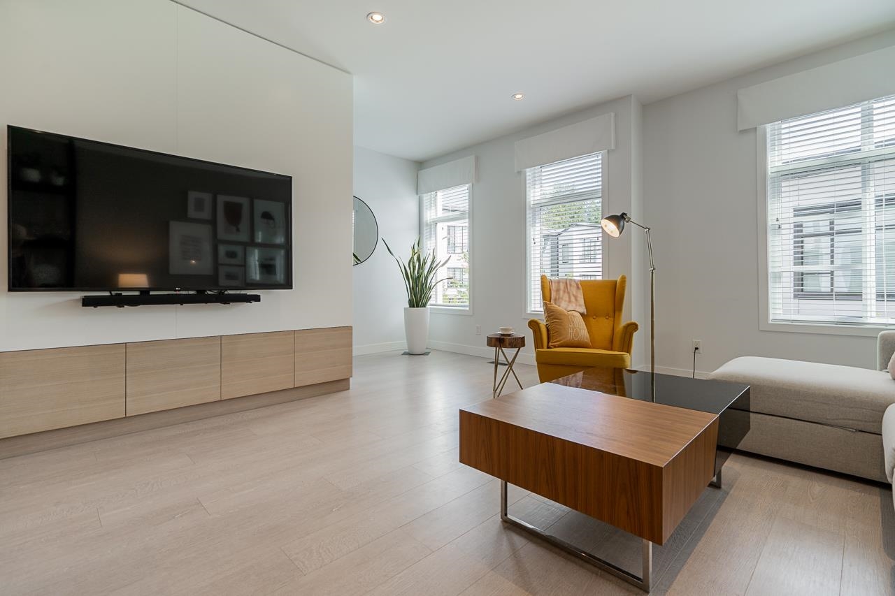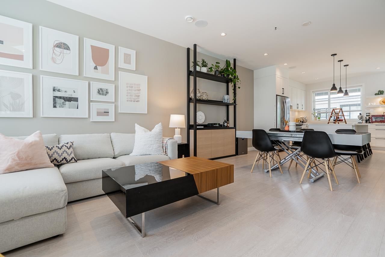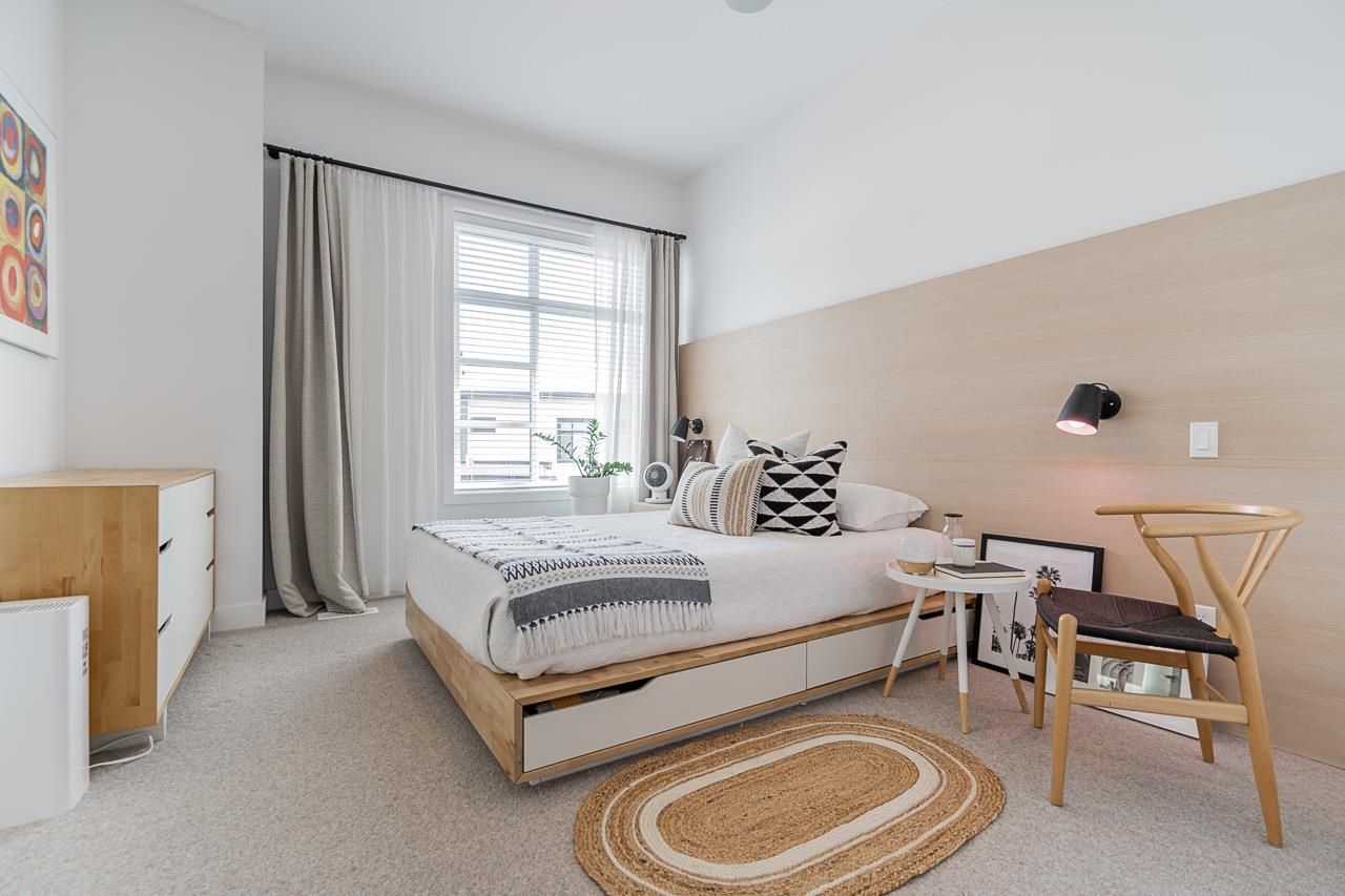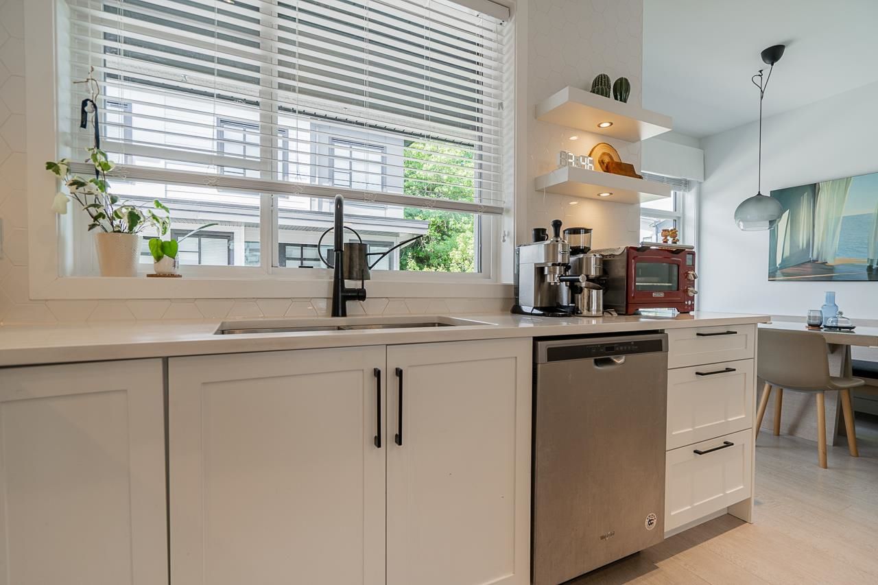 Welcome to Elston ,Green Gold Certified complex. This was previously a showhome with all the bells and whistles including bonus shelves, organizers and custom millwork. This townhouse features a very functional and large open concept plan offering 1943 sqft of living space, Central A/C, bright south-facing private patio, 9' ceiling on main and upper level bringing lots of natural lights. Not to mention a balcony on the main floor by the kitchen, a beautiful chef-inspired kitchen with premium appliances, quartz countertops with island, pantry and durable German engineered laminate floor on main level. Double Side by side Garage with 240V rough-in for EV and hot water on demand.