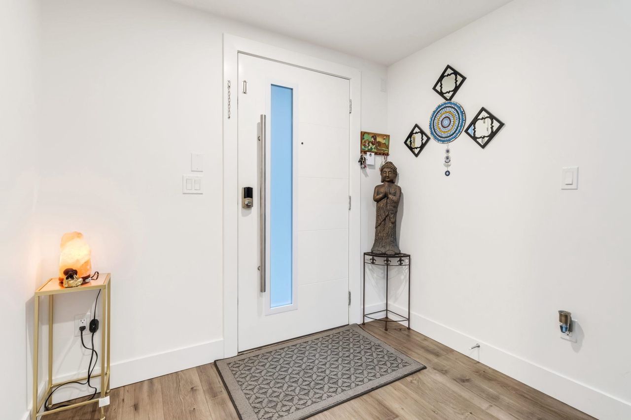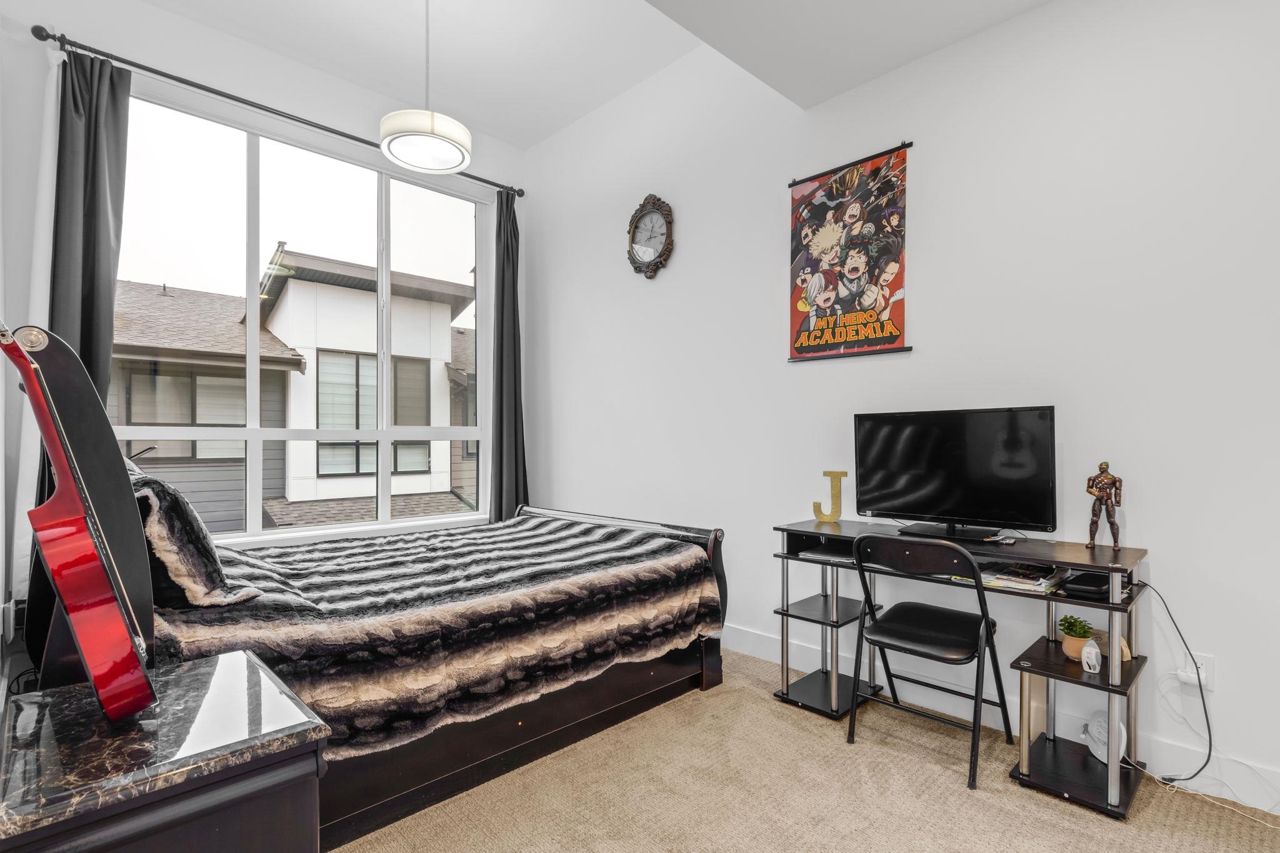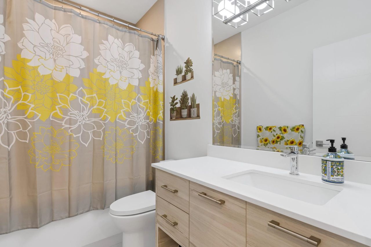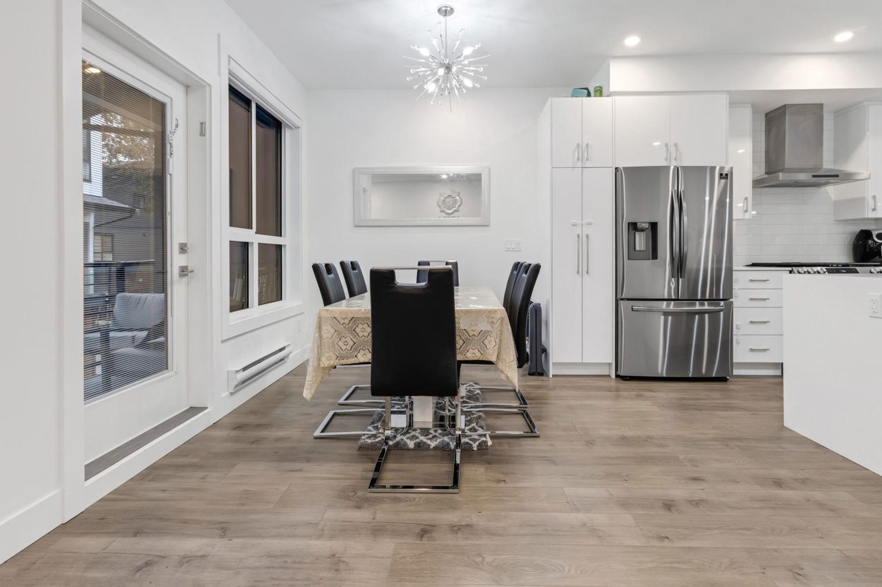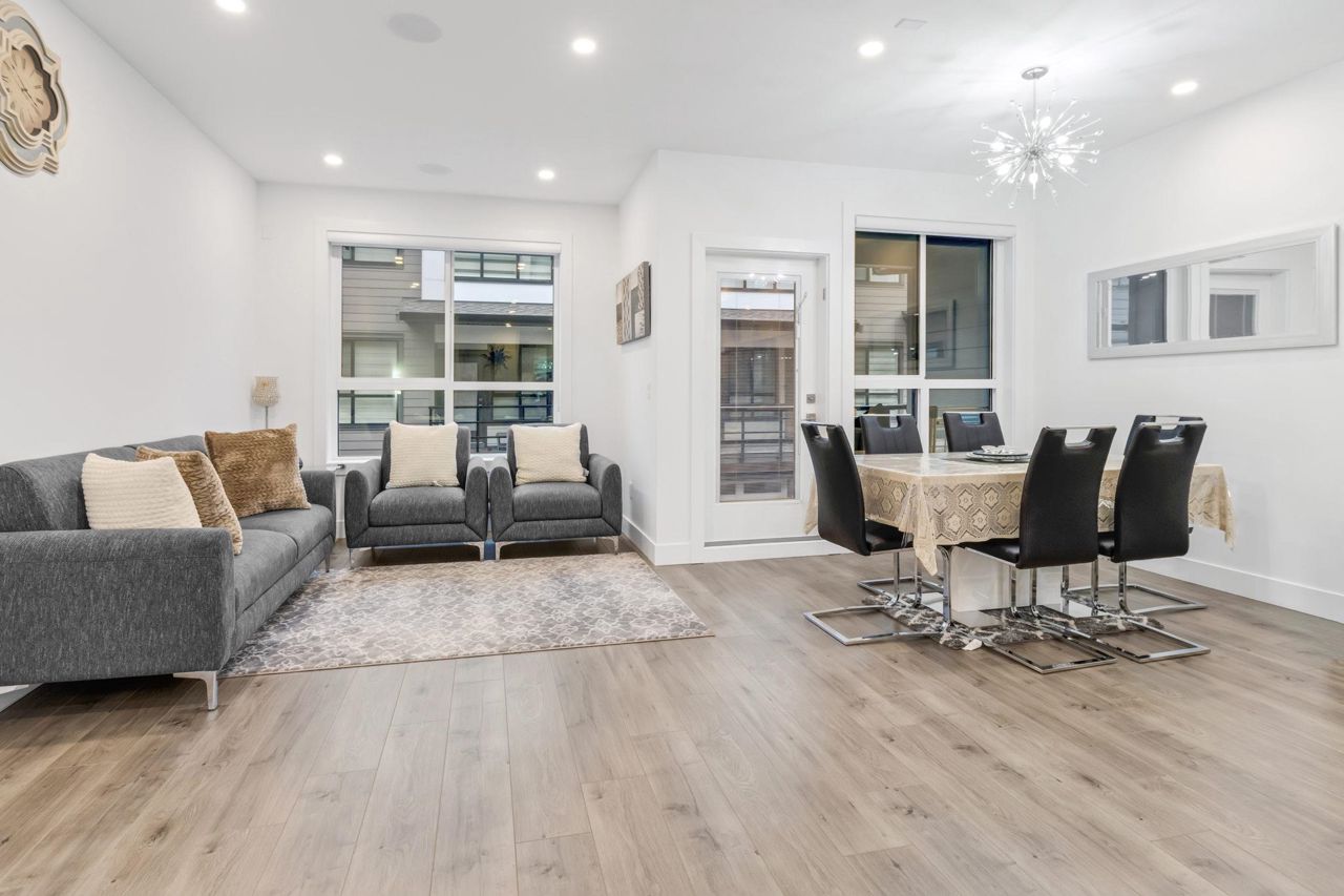 Welcome Home to beautiful Spacious 4 Bed + 4 Bath Unit !! Ground level has spacious Bedroom with ensuite and Extra wide side by side garage. Bright and Spacious Main level comes with Kitchen, Dinning, powder w/r and 2 living areas with modern entertainment unit,upgraded shelves and cozy upgraded fireplace. Built in speakers throughout.open concept kitchen with quality appliances, pull out drawers in Pantry with extra upgraded pantry too,Gas Stove,built in hutch and work station. Covered balcony with gas hookup for BBQ. Upper level has 3 spacious bedrooms with oversized windows, Side by side laundry with custom shelving. Huge Master bedroom comes with 11 ft vaulted ceiling, ensuite washroom and 3 separate closets. Close proximity to schools, recreation and transit.