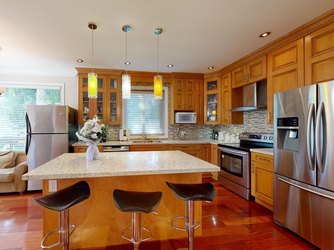 You cannot beat the location of this home in such a beautiful Neighborhood within a charming quiet street. 3 level home about 4000 sq ft on almost 6000 sq ft western exposure lot close to elementary school. Features newer roof, nice kitchen cabinets with granite counters, stainless appliances. Real hardwood floors on entire upstairs and main level. Good layout 4 bedrooms up with a massive Primary bedroom & den downstairs with closet so can be an actual bedroom. The main floor powder room has a shower. 3 Bed suite 2 bath in basement currently rented. Double garage & 6-8 car parking.
