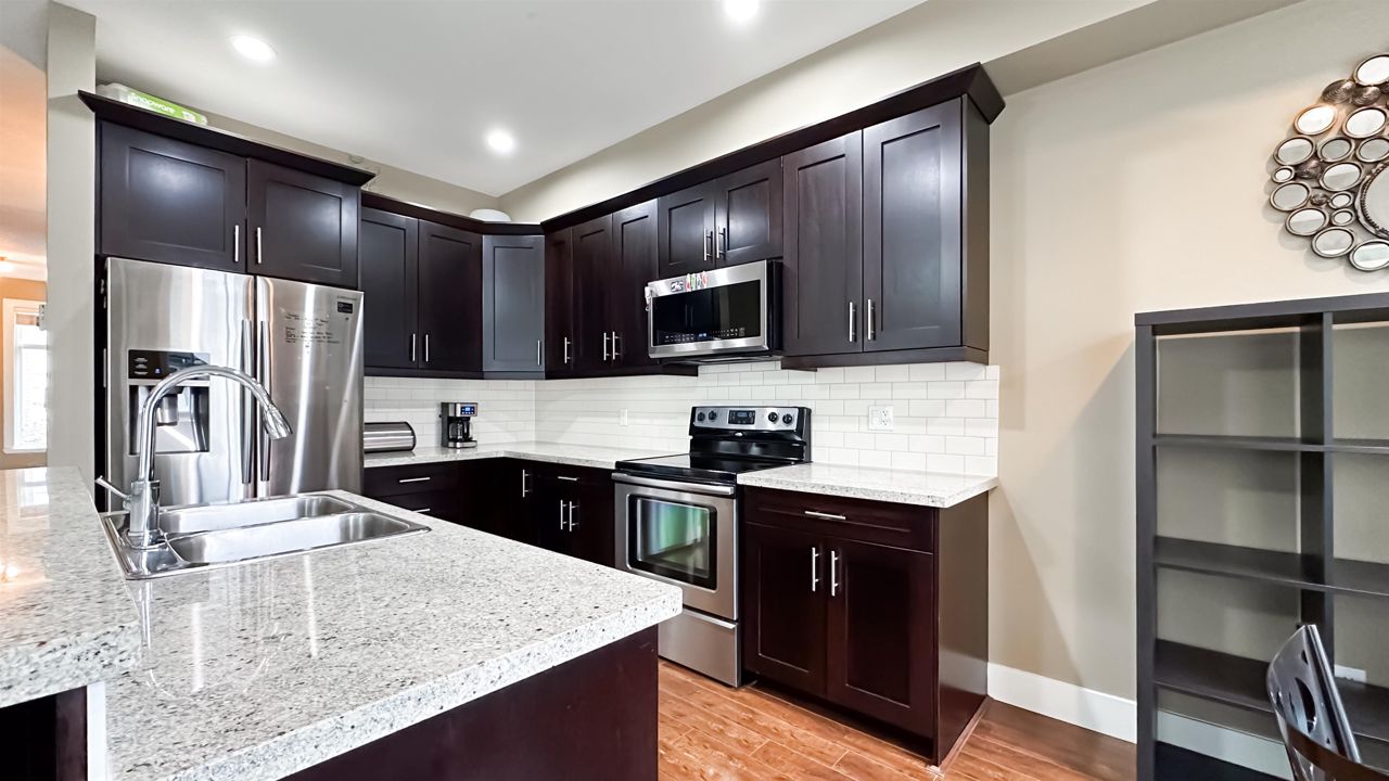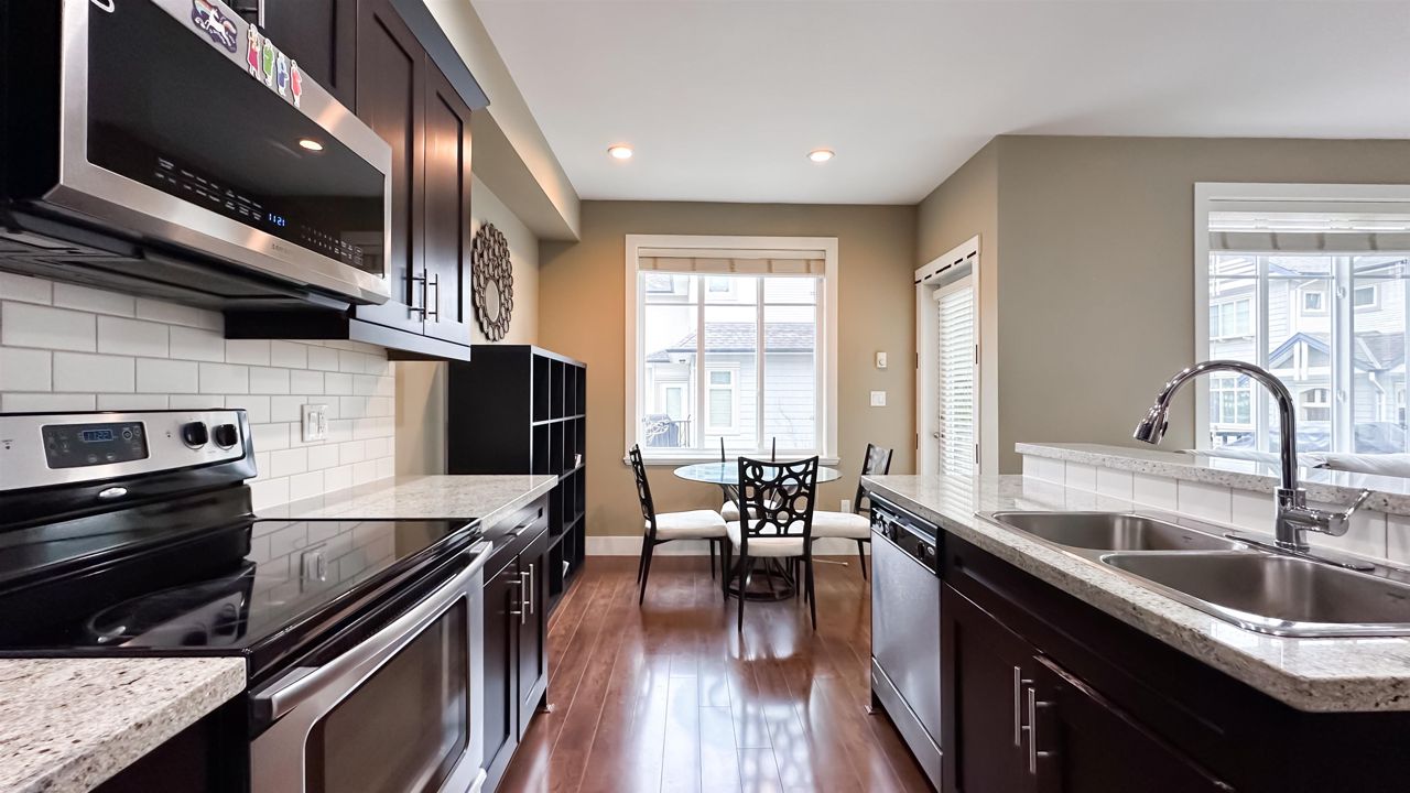 Welcome to "Maple on 84th" in Fleetwood! This spacious 4 bed & 3.5 baths end unit is one of the biggest units in the complex! Comes with a double side-by-side garage with ample storage plus extra parking on the driveway. This well-maintained unit features 9' ceilings on the main, laminate flooring, granite countertops and S/S appliances. Bright upper level has 3 Bedrooms, Master bedroom features an ensuite with a separate shower, tub & walk in closet. 4th Bedroom with full bath on street level offers additional space for a growing family! Central Location in Fleetwood, footsteps away from all amenities, shopping, future skytrain and highway.