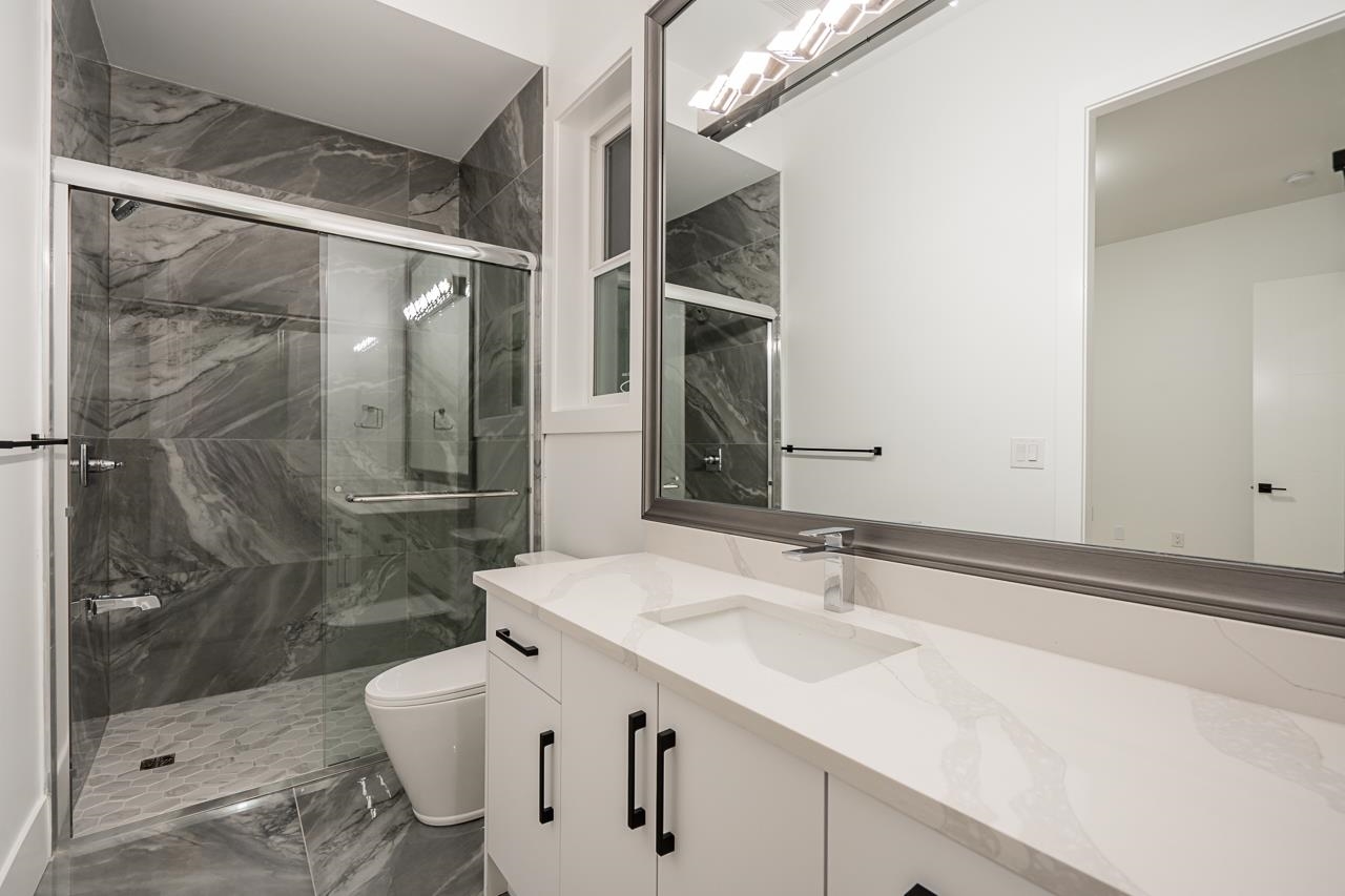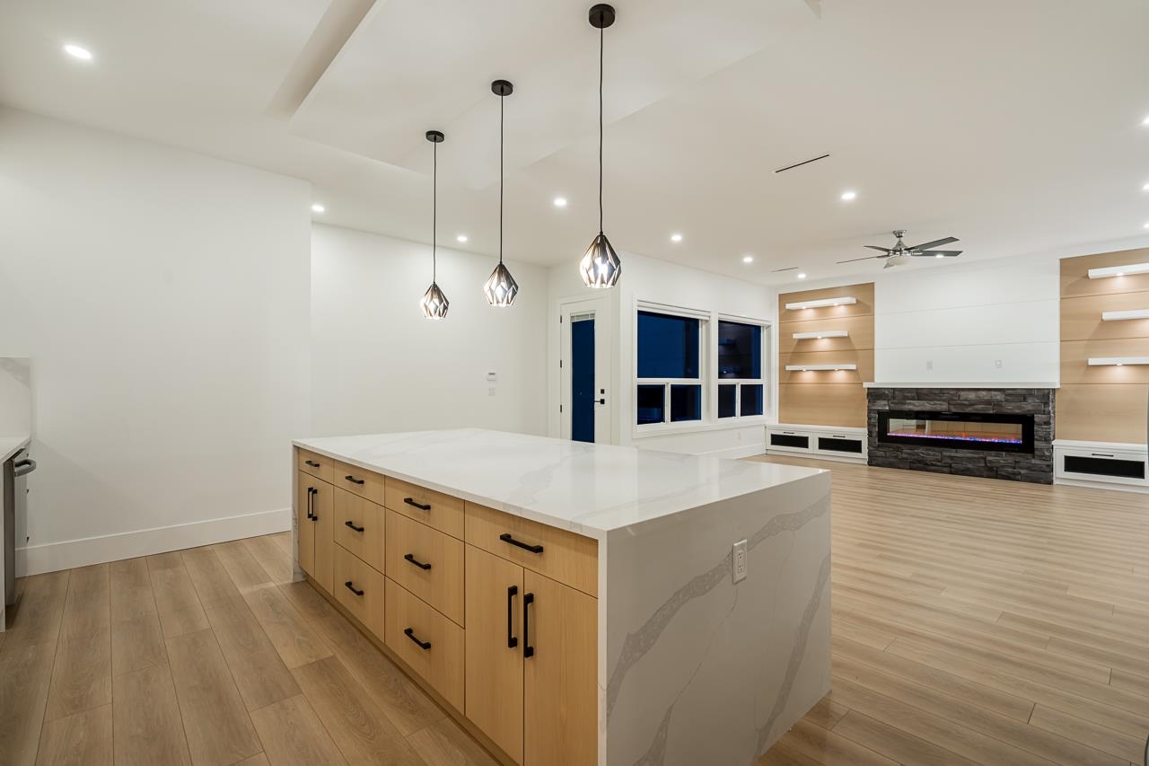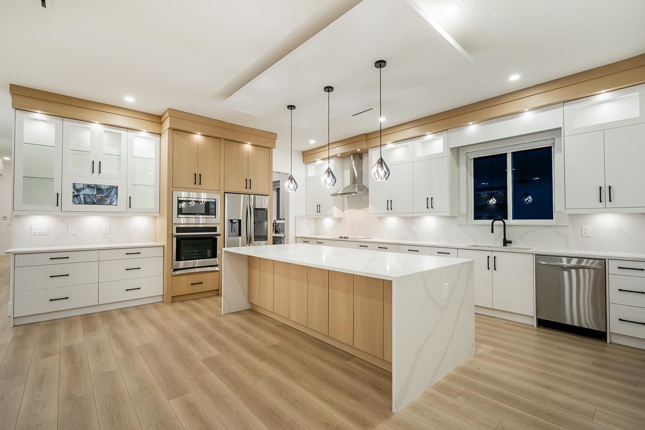 Located in the desirable neighbourhood of Fleetwood, this luxury home has high-end finishings throughout and is modernly designed. House contains 4 bedrooms and 3 washrooms on the top floor. the main has a master bedroom with ensuite, a office and a den. the basement has TWO double bedrooms suites, as well the option to turn the theatre room into a full 1 bedroom suite for that extra mortgage helper. Enjoy this 5600 sqft home situated ona 7000 sq ft which is minutes away from all major highways, shopping malls and recreation centers.