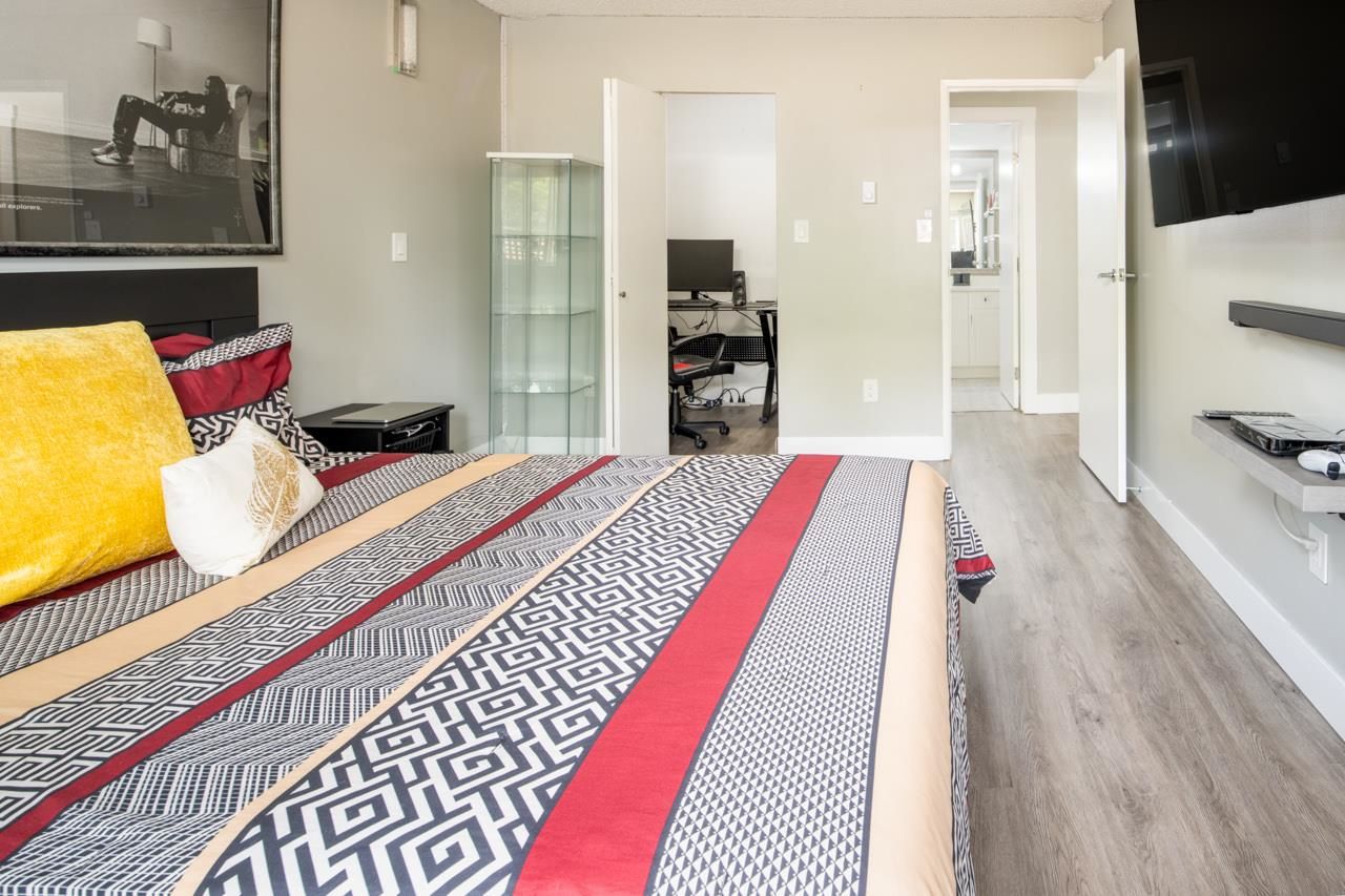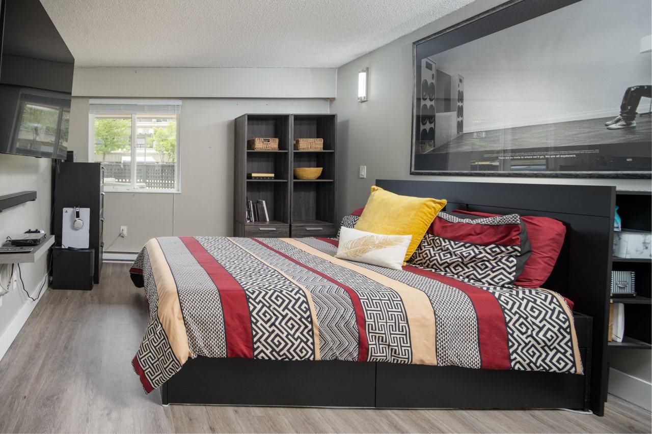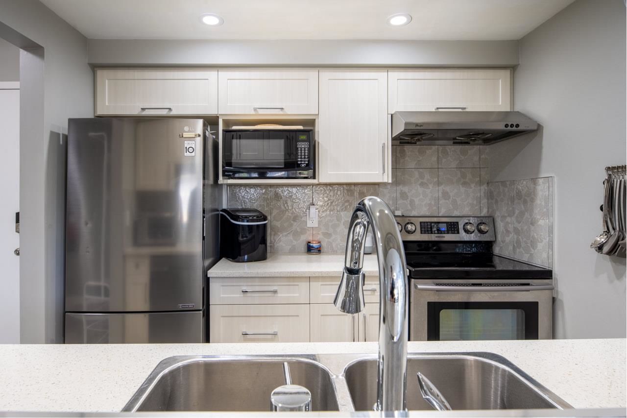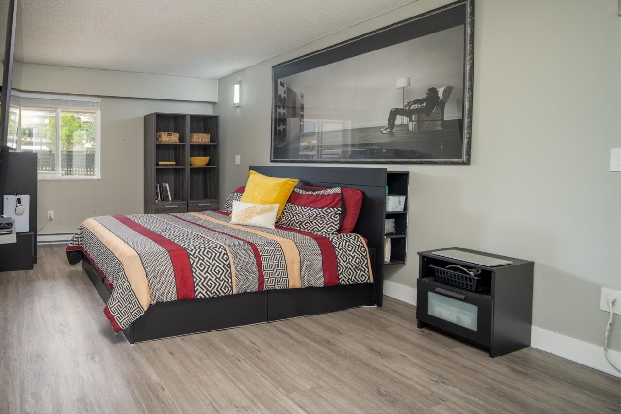 Welcome to Chandlers Hill in North Surrey. This garden level CORNER UNIT gives you over 260 sqft of PRIVATE PATIO & outdoor space, 2 bedrooms, 1 bathroom, and over 1000 sqft of living space (not including the patio). This fully renovated suite features all updated appliance and is large enough for “house sized” furnishings, the bedrooms can easily fit a king-sized beds and you also have an IN-SUITE LAUNDRY and storage room. The entire suite has updated laminate floors (no carpet). Enjoy the summer months BBQing or sipping coffee in the morning sun on your partially covered WEST FACING patio. 1 secured underground parking stall included, extra parking for rent for $15 per month, storage lockers for rent (currently waitlisted). 2 PETS welcome (dogs/cats).