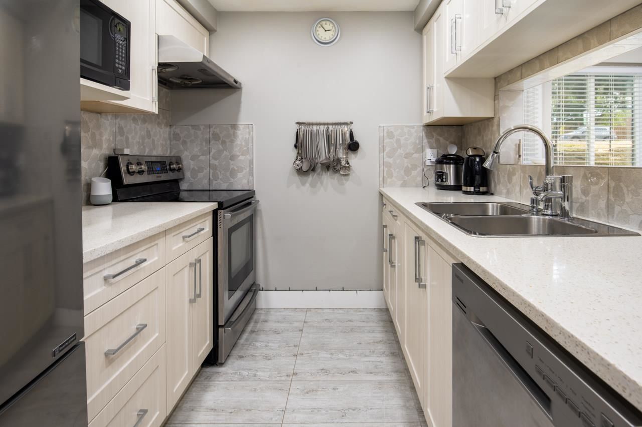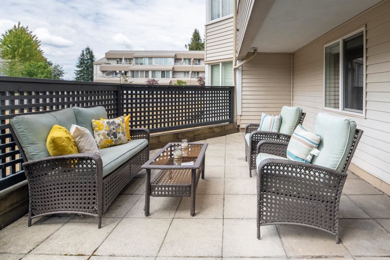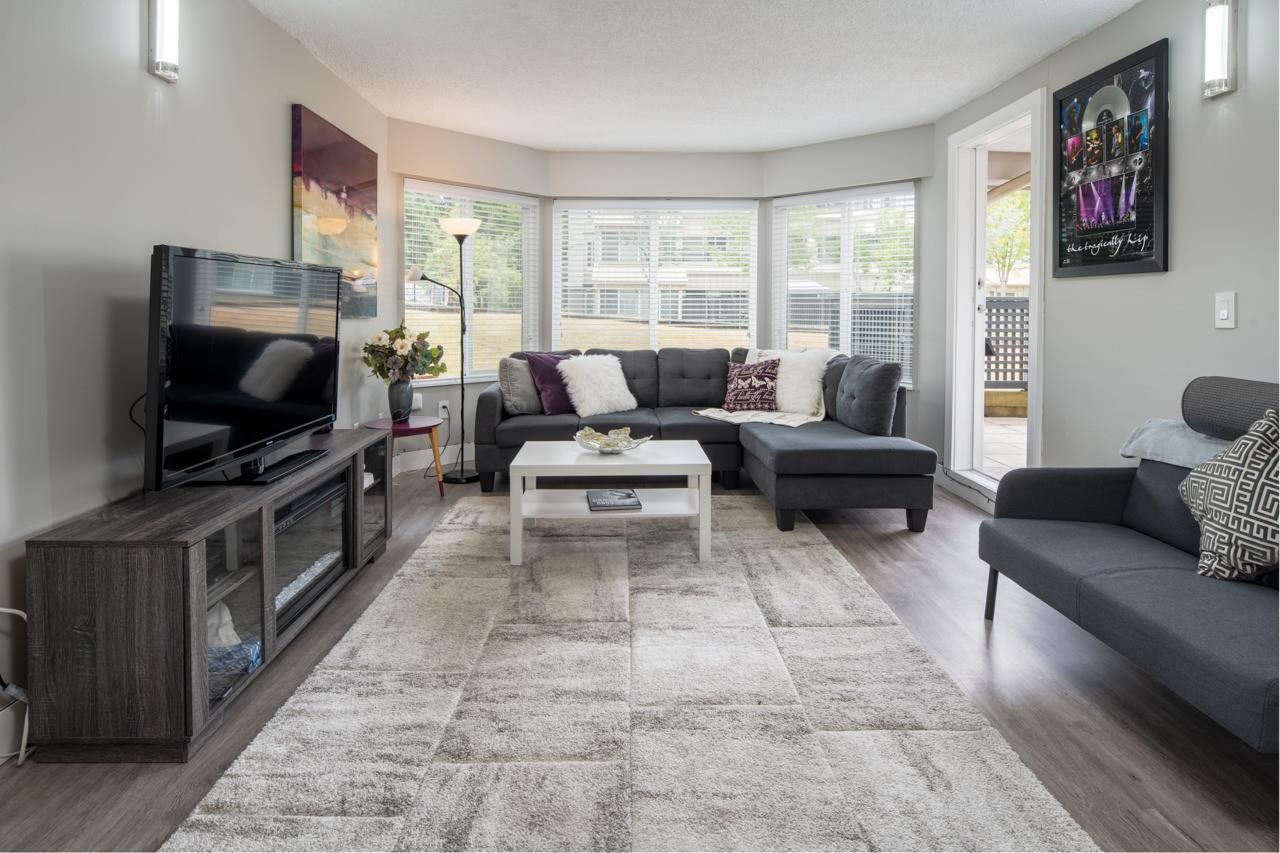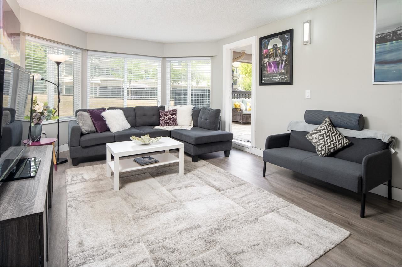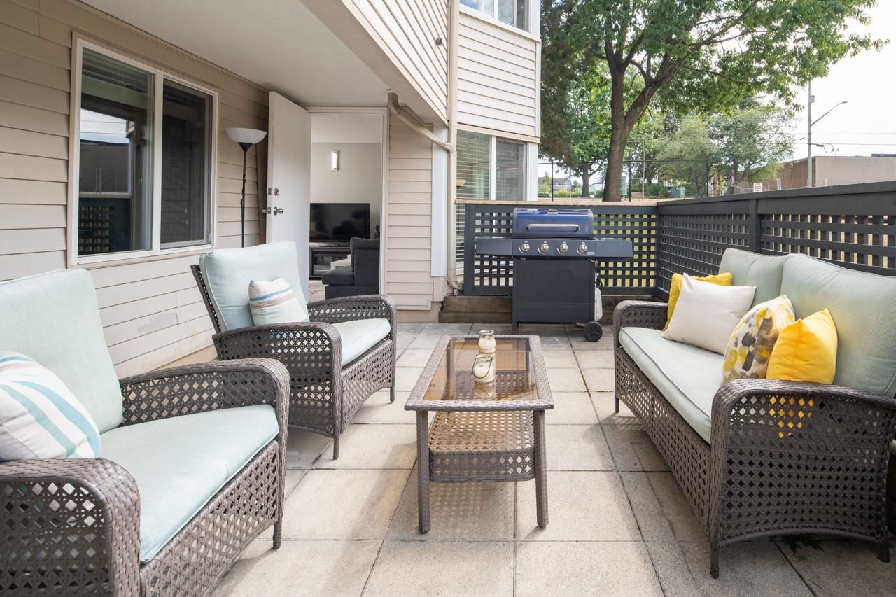 Welcome to Chandlers Hill in North Surrey. This garden level CORNER UNIT gives you over 260 sqft of PRIVATE PATIO & outdoor space, 2 bedrooms, 1 bathroom, and over 1000 sqft of living space (not including the patio). This fully renovated suite features all updated appliance and is large enough for “house sized” furnishings, the bedrooms can easily fit a king-sized beds and you also have an IN-SUITE LAUNDRY and storage room. The entire suite has updated laminate floors (no carpet). Enjoy the summer months BBQing or sipping coffee in the morning sun on your partially covered WEST FACING patio. 1 secured underground parking stall included, extra parking for rent for $15 per month, storage lockers for rent (currently waitlisted). 2 PETS welcome (dogs/cats).