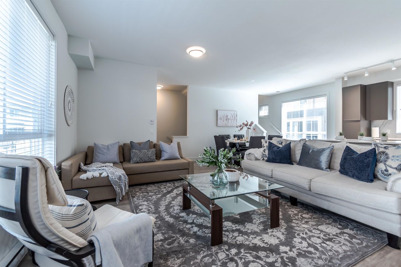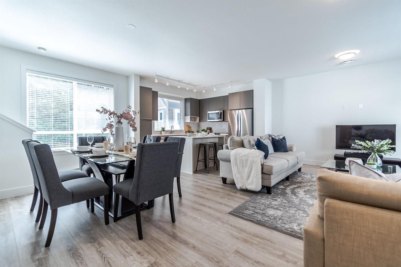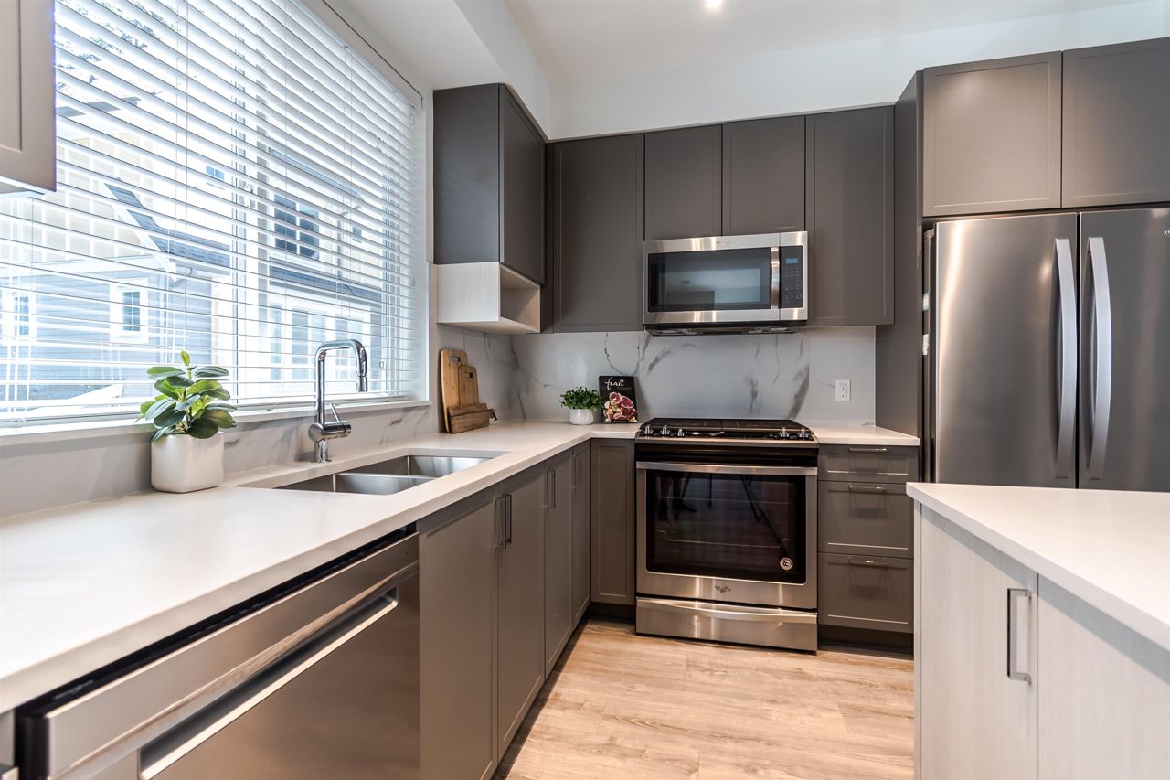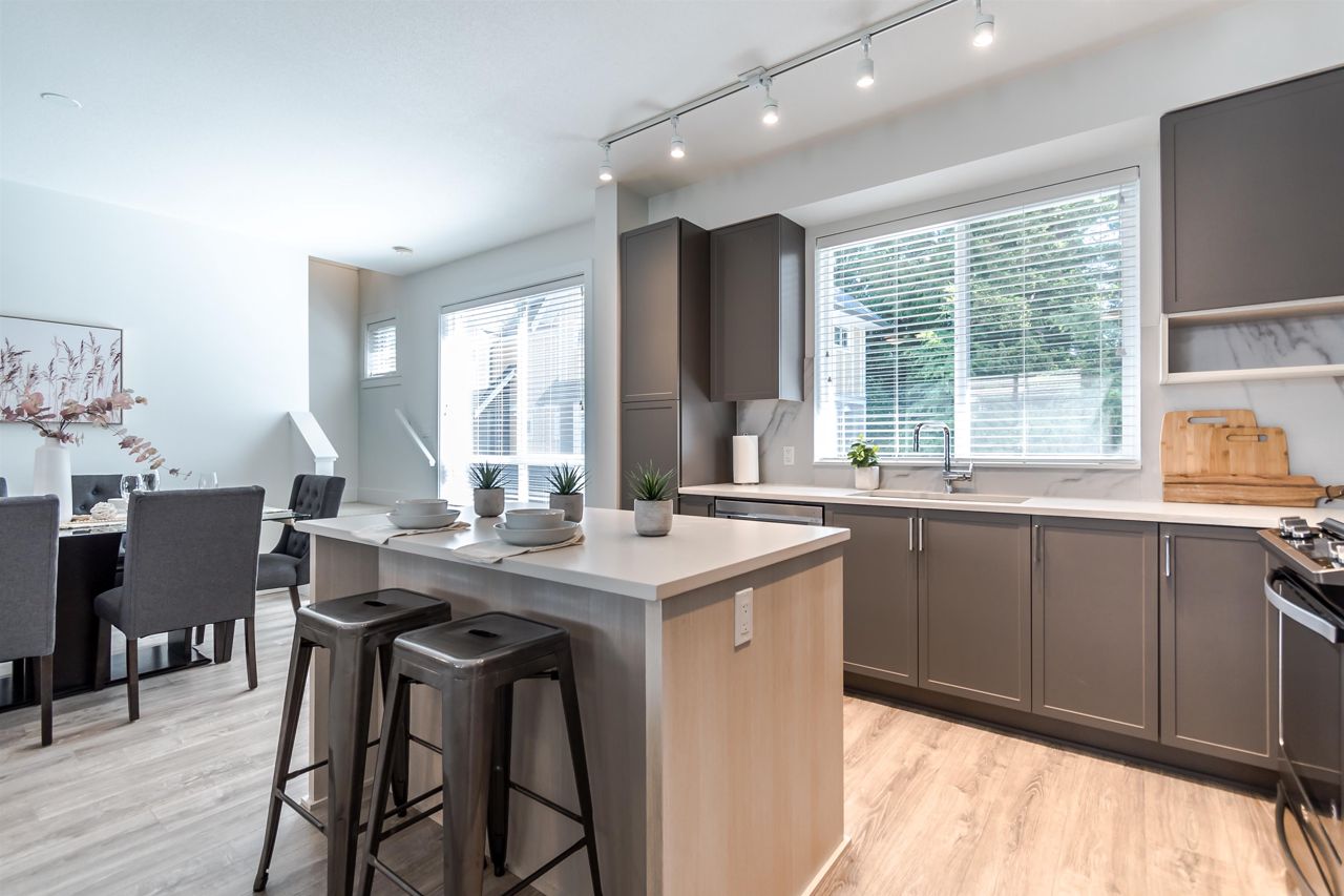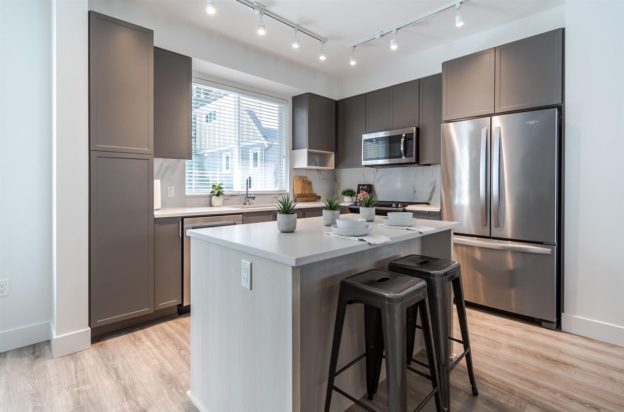 Welcome home to Canopy at Tynehead. This stunning three bedroom, three bathroom home boasts a modern open concept floorplan with 10 foot ceilings on the main floor. The gourmet kitchen features, quartz countertops, large tile backsplash, and gas range. Primary bedroom features beautiful ensuite with fully tiled shower Upstairs also includes two spacious size bedrooms with beautiful, bright windows. Pets and kids welcome. Double side by side garage. It's fabulous location is at the entrance of Tynehead regional park. Canopy is surrounded by 260 hectors of Parkland with walking trails, dog parks, easy freeway access and only minutes away from Guildford town Centre shopping & sky train. Hurry this one won’t last!