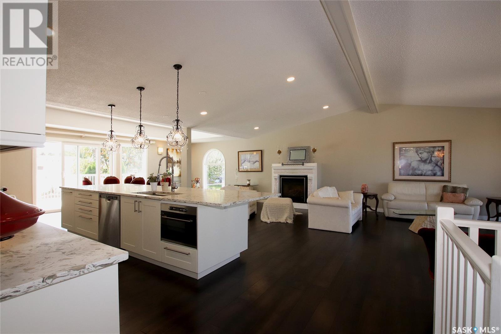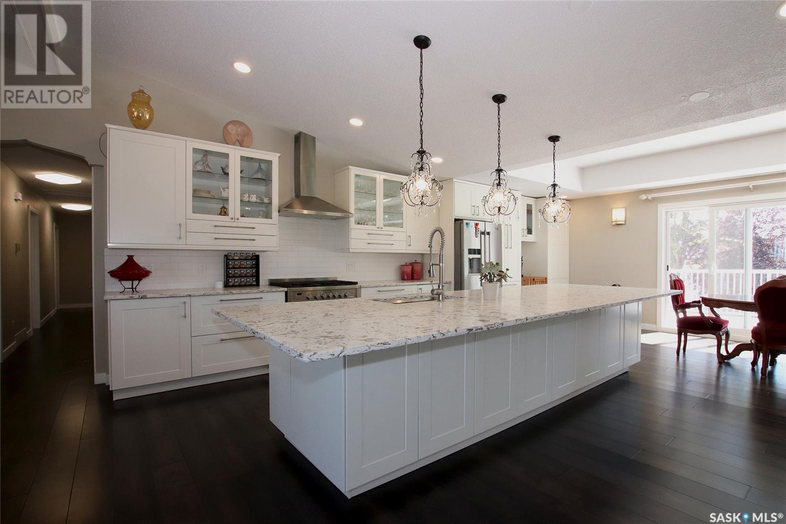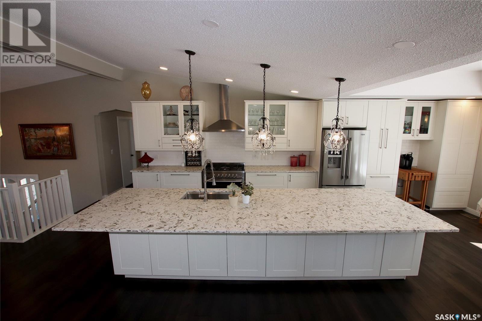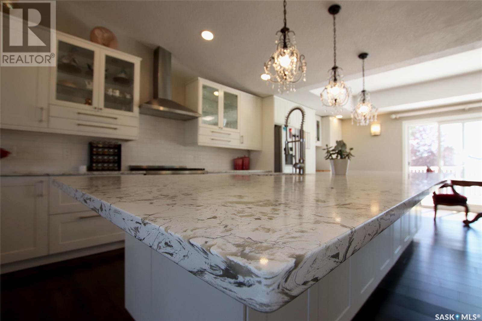 Discover your dream home in the highly coveted Trail subdivision! This spacious bi-level gem boasts a generous 2,349 sqft of living space on an expansive 9,870 sqft lot. From the moment you arrive, the fantastic curb appeal will captivate you. Step inside to an inviting open-concept haven boasting 5 + 1 bedrooms and 3 baths. The centerpiece of this home is the radiant gourmet kitchen, adorned with modern white cabinets, sumptuous quartz countertops, and top-tier stainless steel appliances, including a 6-burner gas range. The pièce de résistance? An enormous 12’ island, tailor-made for hosting & entertaining! The main floor living space is bathed in natural light, courtesy of large north-facing windows and a triple patio door to the south. Revel in cozy evenings by the gas fireplace in the capacious living room, featuring a vaulted ceiling. The adjacent dining room offers serene views of the maintenance-free, mature backyard, complete with a built-in BBQ area. Further enhancing the main floor, discover rich hardwood floors and plush, newer carpeting across all 5 bedrooms. The primary suite indulges with its 2-piece en-suite, corner soaker tub, and a generous walk-in closet. The expansive south-facing deck (31.6’ x 12) is off the dining areaThe fully finished lower level is an additional sanctuary, featuring a commodious family room with a wood-burning fireplace, abundant windows, another 4-piece bath, a convenient laundry room, an extra bedroom, and a hot tub area with an adjoining shower. Parking includes a double garage, with the east bay offering extra length for your vehicles or cherished toys. The professionally designed front yard is both low-maintenance and offers a plethora of parking space for all your needs. Recent updates include a new water softener in November 2021. The remarkable location and sweeping views make this family home a must-see. (id:22211)