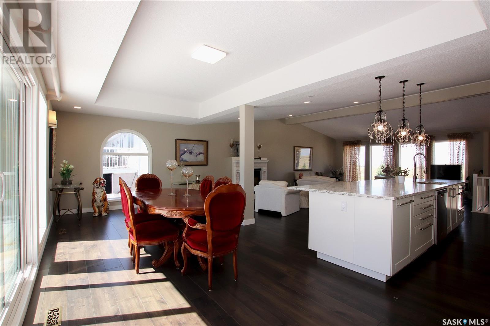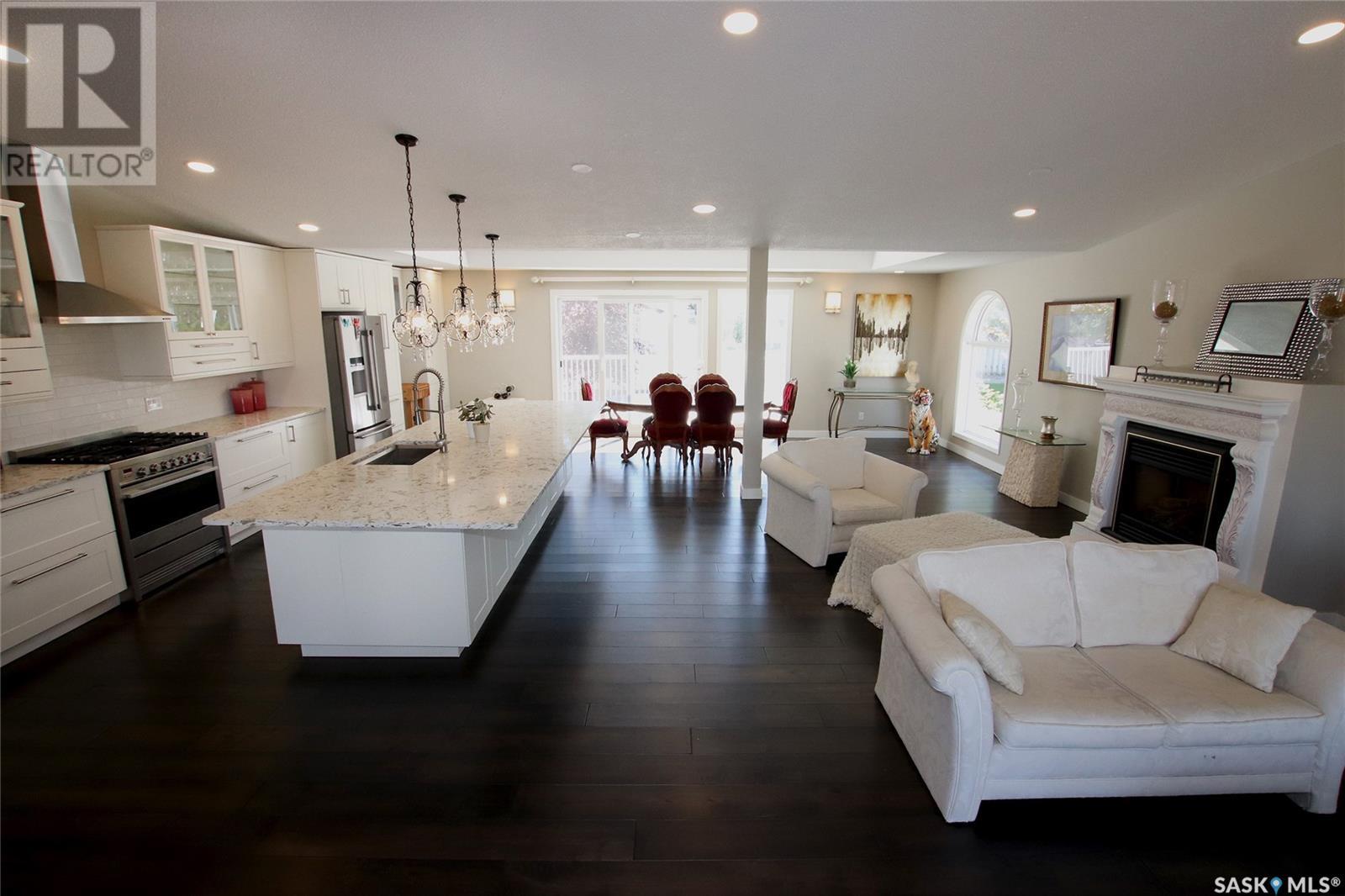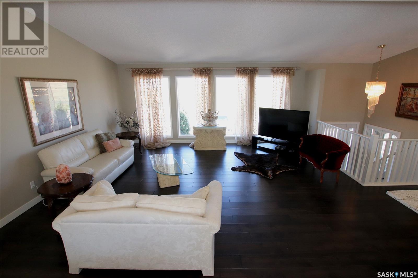 Discover your dream home in the highly coveted Trail subdivision! This spacious bi-level gem boasts a generous 2,349 sqft of living space on an expansive 9,870 sqft lot. From the moment you arrive, the fantastic curb appeal will captivate you. Step inside to an inviting open-concept haven boasting 5 + 1 bedrooms and 3 baths. The centerpiece of this home is the radiant gourmet kitchen, adorned with modern white cabinets, sumptuous quartz countertops, and top-tier stainless steel appliances, including a 6-burner gas range. The pièce de résistance? An enormous 12’ island, tailor-made for hosting & entertaining! The main floor living space is bathed in natural light, courtesy of large north-facing windows and a triple patio door to the south. Revel in cozy evenings by the gas fireplace in the capacious living room, featuring a vaulted ceiling. The adjacent dining room offers serene views of the maintenance-free, mature backyard, complete with a built-in BBQ area. Further enhancing the main floor, discover rich hardwood floors and plush, newer carpeting across all 5 bedrooms. The primary suite indulges with its 2-piece en-suite, corner soaker tub, and a generous walk-in closet. The expansive south-facing deck (31.6’ x 12) is off the dining areaThe fully finished lower level is an additional sanctuary, featuring a commodious family room with a wood-burning fireplace, abundant windows, another 4-piece bath, a convenient laundry room, an extra bedroom, and a hot tub area with an adjoining shower. Parking includes a double garage, with the east bay offering extra length for your vehicles or cherished toys. The professionally designed front yard is both low-maintenance and offers a plethora of parking space for all your needs. Recent updates include a new water softener in November 2021. The remarkable location and sweeping views make this family home a must-see. (id:22211)