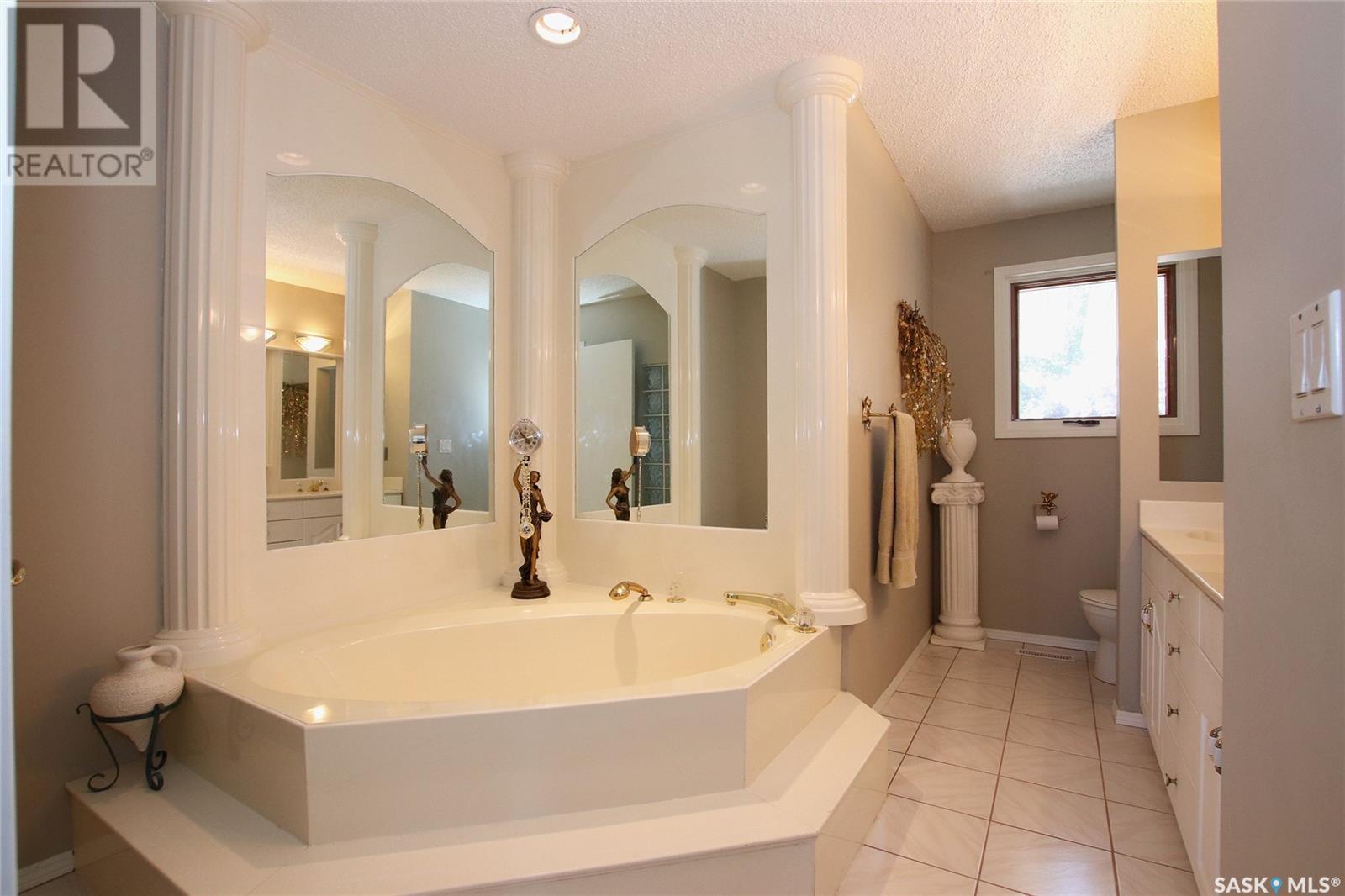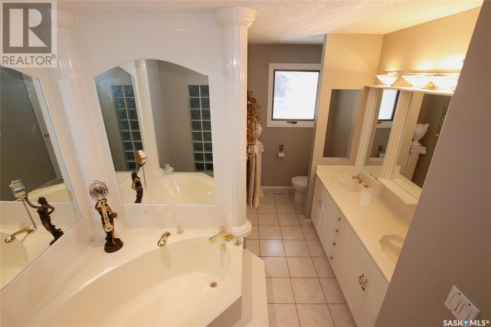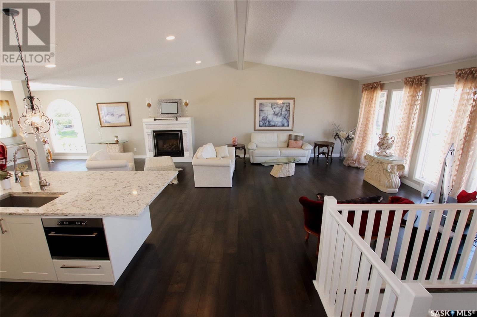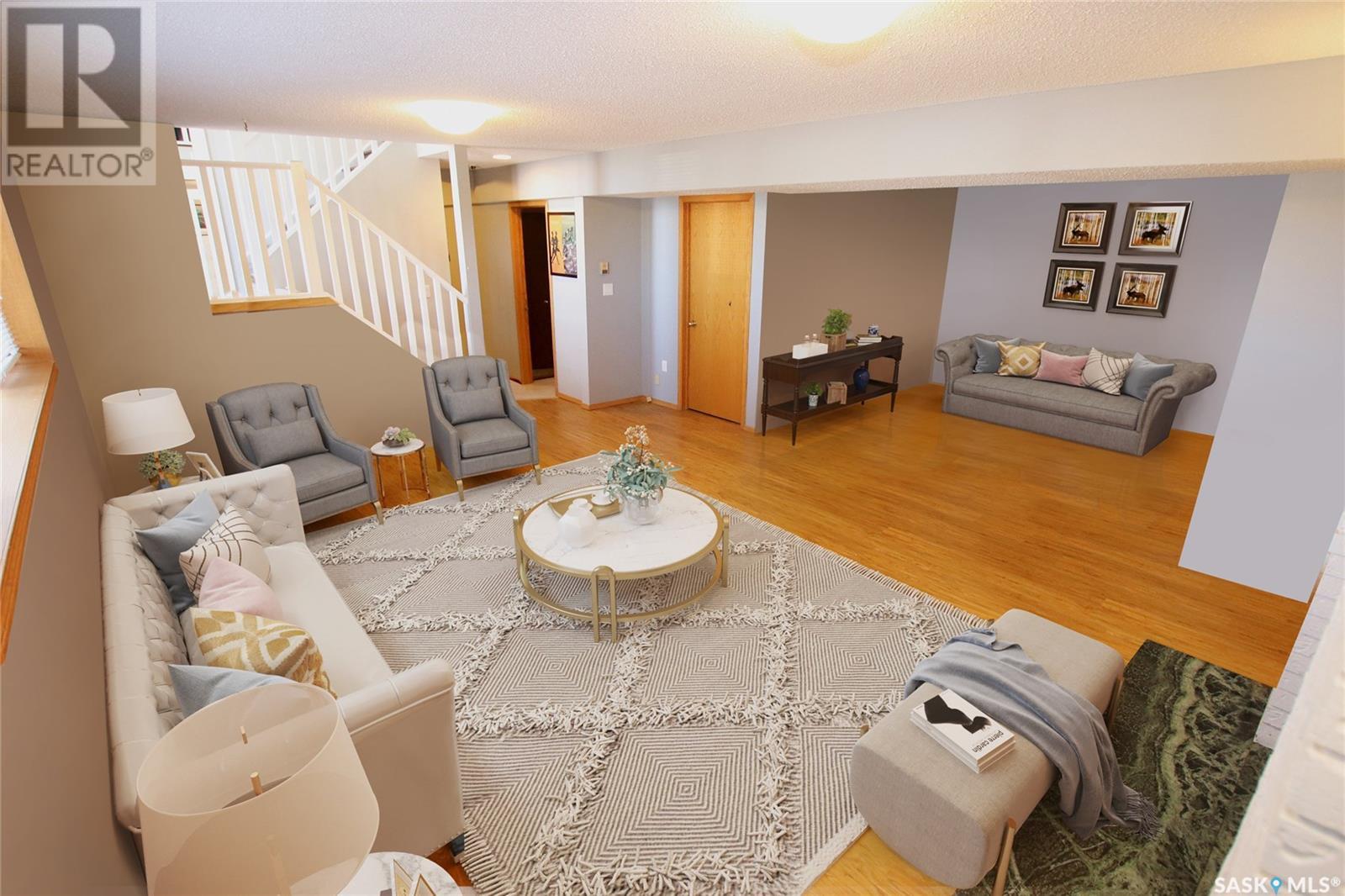 Discover your dream home in the highly coveted Trail subdivision! This spacious bi-level gem boasts a generous 2,349 sqft of living space on an expansive 9,870 sqft lot. From the moment you arrive, the fantastic curb appeal will captivate you. Step inside to an inviting open-concept haven boasting 5 + 1 bedrooms and 3 baths. The centerpiece of this home is the radiant gourmet kitchen, adorned with modern white cabinets, sumptuous quartz countertops, and top-tier stainless steel appliances, including a 6-burner gas range. The pièce de résistance? An enormous 12’ island, tailor-made for hosting & entertaining! The main floor living space is bathed in natural light, courtesy of large north-facing windows and a triple patio door to the south. Revel in cozy evenings by the gas fireplace in the capacious living room, featuring a vaulted ceiling. The adjacent dining room offers serene views of the maintenance-free, mature backyard, complete with a built-in BBQ area. Further enhancing the main floor, discover rich hardwood floors and plush, newer carpeting across all 5 bedrooms. The primary suite indulges with its 2-piece en-suite, corner soaker tub, and a generous walk-in closet. The expansive south-facing deck (31.6’ x 12) is off the dining areaThe fully finished lower level is an additional sanctuary, featuring a commodious family room with a wood-burning fireplace, abundant windows, another 4-piece bath, a convenient laundry room, an extra bedroom, and a hot tub area with an adjoining shower. Parking includes a double garage, with the east bay offering extra length for your vehicles or cherished toys. The professionally designed front yard is both low-maintenance and offers a plethora of parking space for all your needs. Recent updates include a new water softener in November 2021. The remarkable location and sweeping views make this family home a must-see. (id:22211)