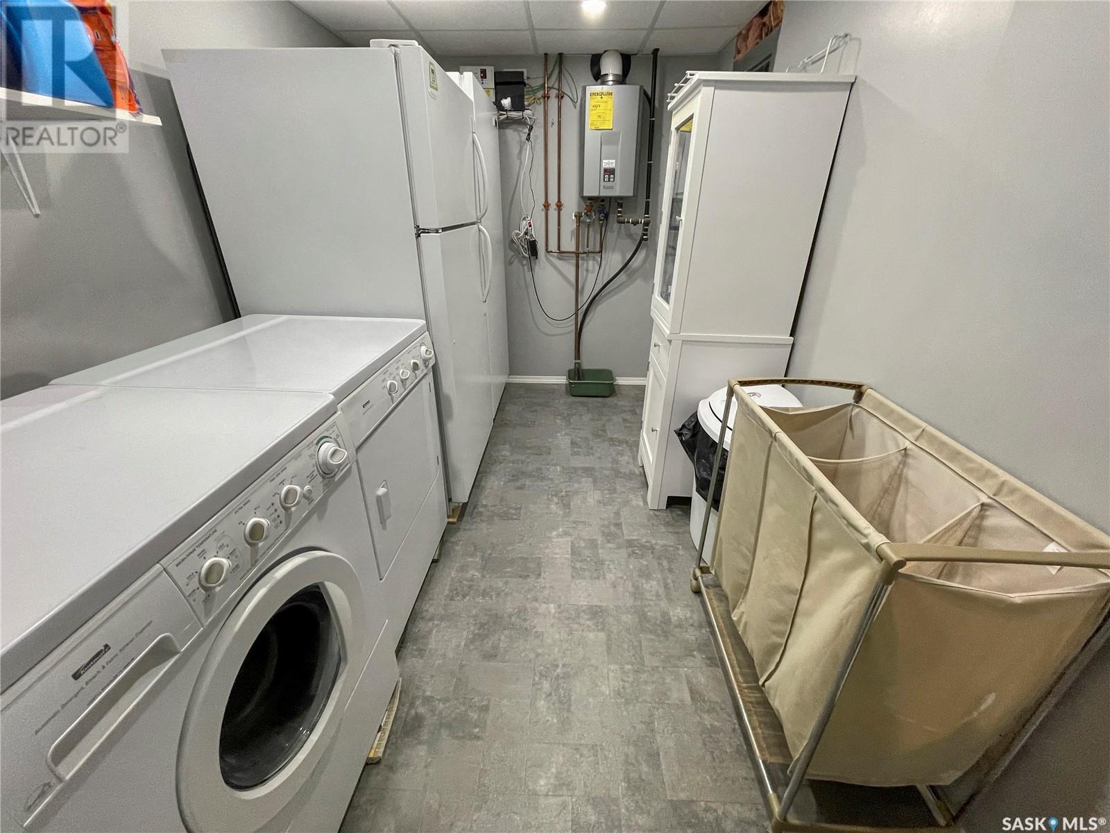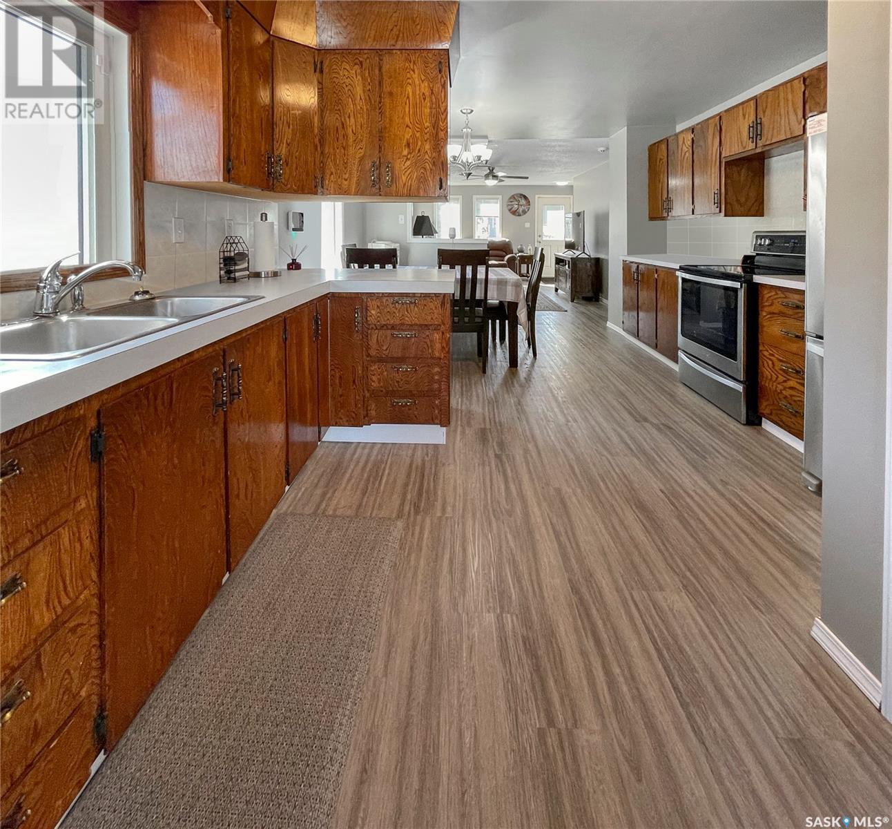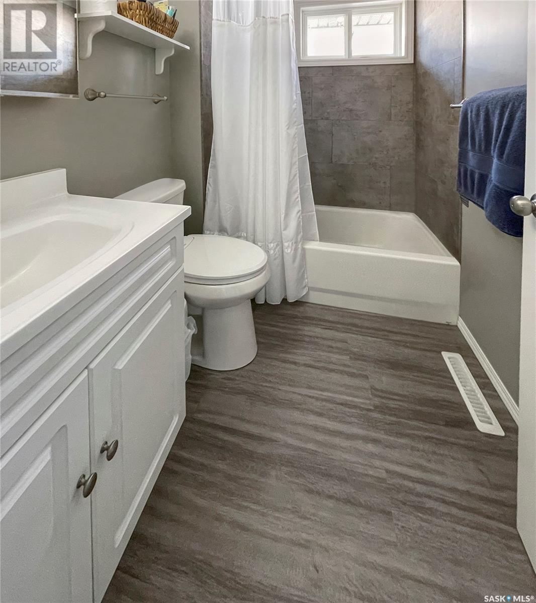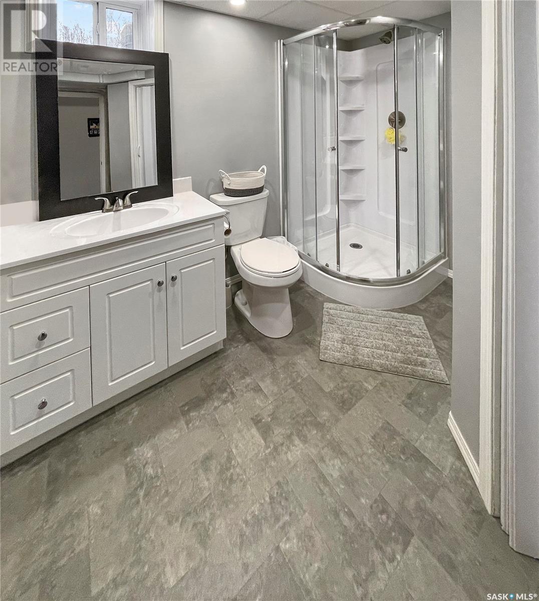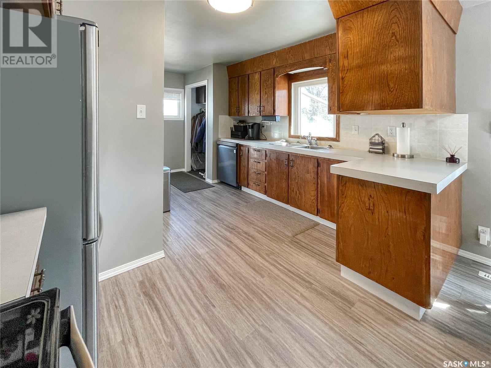 If you’ve been searching for a move in ready home with a glorious 26x30 heated/insulated 2 car garage the man of the house will fall in LOVE with…well you may have just found it! Situated on an oversized 50x130 lot only blocks from the park enjoy a large fenced yard with a total of 8 off street parking spaces. Inside the home has been tastefully renovated with vinyl plank lining the floors, fresh trim and doors, modern grey paint, updated light fixtures, PVC windows and renovated washrooms. 2 spacious bedrooms can be found on the main floor with the principal spanning 11’10 x 13’5 along with the modern 4-piece washroom. The open concept living space houses a sunny front living room with a dedicated dining space separating it from the substantial kitchen. An abundance of cabinetry can be found here including a peninsula and an extra bank flowing across the dining room wall. Stainless steel appliances, a large pantry and a window looking out into the yard complete this space. The lower level has also been fully renovated featuring new carpet, baseboards and paint. Here you’ll find a sizeable cold storage room along with a finished laundry room, 2 bedrooms, a gorgeous 3 piece washroom and a cozy family room. Countless updates have been completed in this pristine home including extra attention to ensure maximum energy efficiency. R40 insulation in the attic, extra insulation installed around the perimeter underneath the vinyl siding, and an energy efficient furnace. Other functional updates include a tankless hot water heater, updated exterior doors and in the garage hot water in floor heat, a 220 amp plug as well as extra plugs for ultimate convenience. Down the street from the Co-op grocery store, the creek, park, walking paths, tennis courts, golf course and more you will not want to miss this listing! Call today to book your personal viewing. (id:22211)