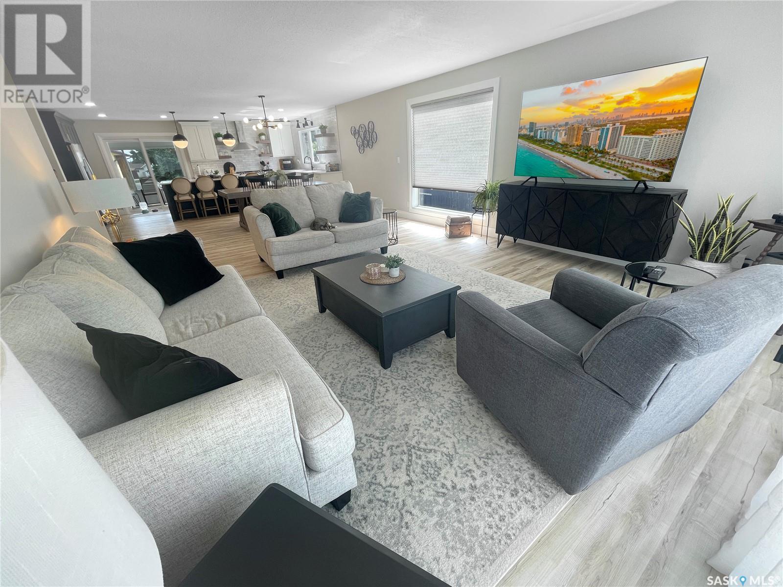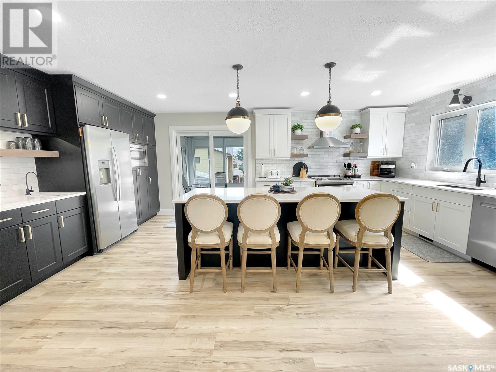 Your dream Home has officially arrived…Nested into a quiet crescent in the highly sought after Trail Subdivision offering parks galore, walking paths guiding the way between, 2 bus stops on the block to facilitate all of the families with one directly in front of the home and privy to the Ecole Centennial School Division. Step inside this 6 bedroom home to find the “designer” finishes you’ve been waiting for; professionally installed vinyl plank flooring, new trim, dark accent doors and large PVC windows flooding the entire main floor with natural light. The kitchen is a Show Stopper, FULLY remodelled including a built in wall pantry, coffee bar, custom floating shelves, endless dark cabinetry with timeless gold pulls, white quartz countertops, a sit up island, NEW SS appliances and access to the enclosed sunroom! This wide open room affords plenty of space for entertaining with an attached dining room and living area overlooking the front yard. Down the hall find a remodelled 4-piece washroom, 3 Large bedrooms one of which is the enormous 211 sf principal bedroom with its own renovated 3-piece ensuite bath. The lower level offers an additional almost 1700 sf of living space! Large windows light up the level compliments of its bilevel style build. There is updated carpet, pot lights, drywall, trim, paint and a BRAND new laundry room. A 4-piece washroom, THREE additional bedrooms (one being used for storage but could be used as a bedroom/bonus room), utility room and another storage room complete this floor. Other updates include Bluetooth speakers in main floor bathroom fans, a top of the line Napoleon HE furnace (w/sensi smart wifi thermostat) & A/C unit, a Navien on-demand tankless water heater and the air exchanger tied in to the furnace in 2020. The home has recently been painted, with fresh shingles, soffit, fascia, along with updated eavestroughs & downspouts and a NEW rubber driveway. For more info or to book your personal viewing. (id:22211)