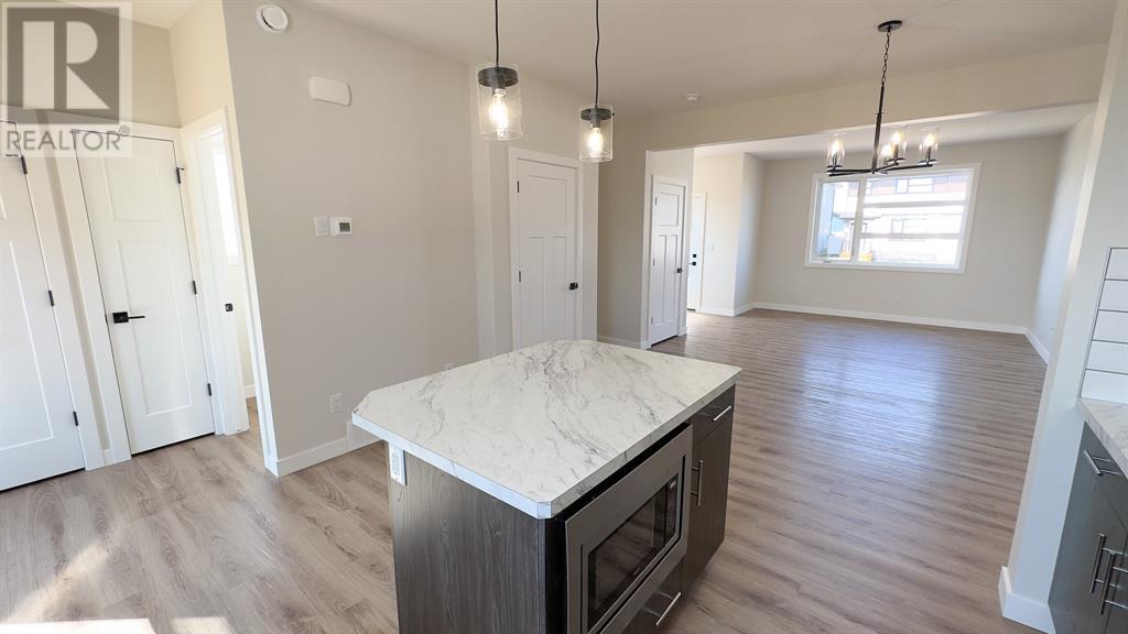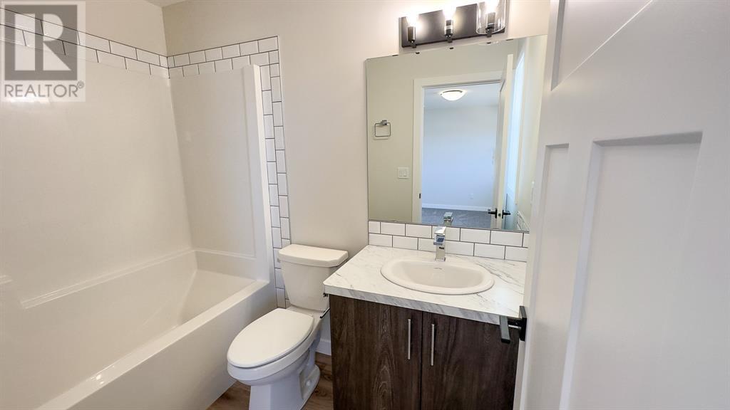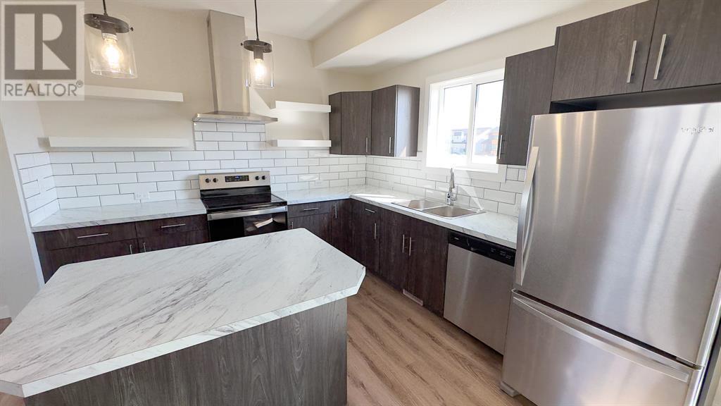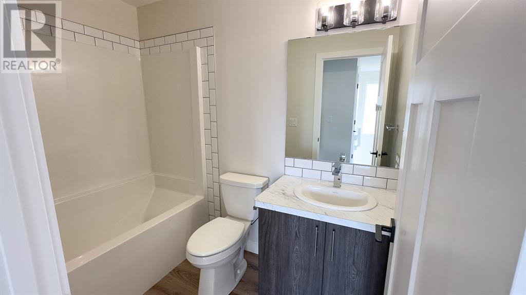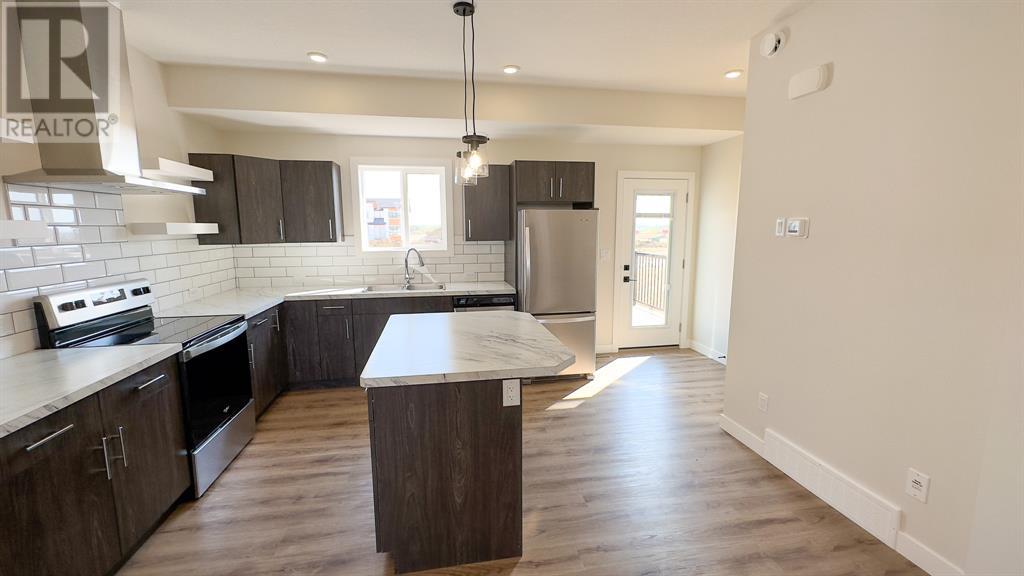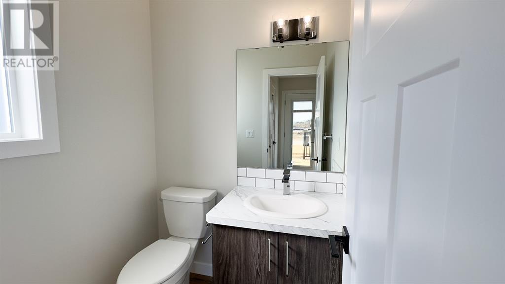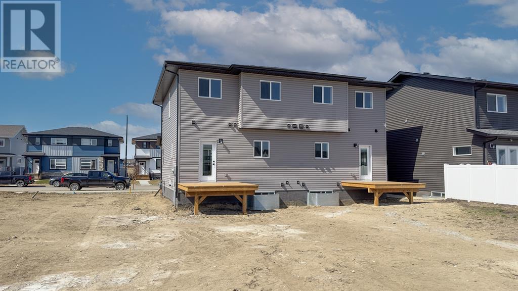 IMMEDIATE POSSESSION IS AVAILABE. Brand new stylish 3 bedroom 3 bathroom 1/2 duplex located in new and exciting Iron Gate subdivision. Great location with easy highway access and close proximity to all amenities including a brand new 7-11/liquor store/Burger Parlour and Dominos pizza just a short walk. The main floor has a great open kitchen/living room/dining room layout all finished in vinyl plank flooring. The kitchen has a centre island, pantry and comes with stainless steel stove, fridge, dishwasher, microwave, hood fan .The rear deck and 2 piece bathroom are conveniently located near the rear entry off the kitchen. Upstairs you will find a good size master bedroom with a 4 piece ensuite and a large walk in closet with built in MDF shelving. The balance of the upper floor consists on an additional two bedrooms, a 4 piece bathroom and an essential upper floor laundry (complete with washer/dryer). Roughed in central vac also included. Enjoy the piece of mind when you buy brand new and the benefits of this energy efficient home with 10 year new home warranty. The seller will develop the basement if you desire for $25,000 to make this a 4 bedroom 4 bathroom home (see photos for plan). PLENTY OF ROOM TO BUILD A GARAGE IN THE REAR. GST is included in the price with rebate to the builder. "NEW HOME ADVANTAGE"-10 YEAR NEW HOME WARRANTY, ENERGY EFFICIENT HOME WITH HRV AND SPRAY FOAM INSULATION, HIGH EFFICIENCY APPLIANCES, ZERO MAINTENACE EXTERIOR-NEW SAVES MONEY! (id:22211)