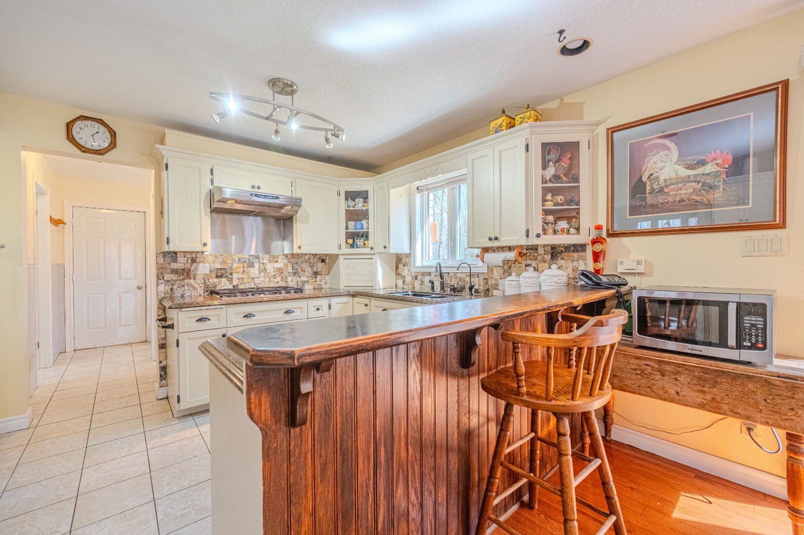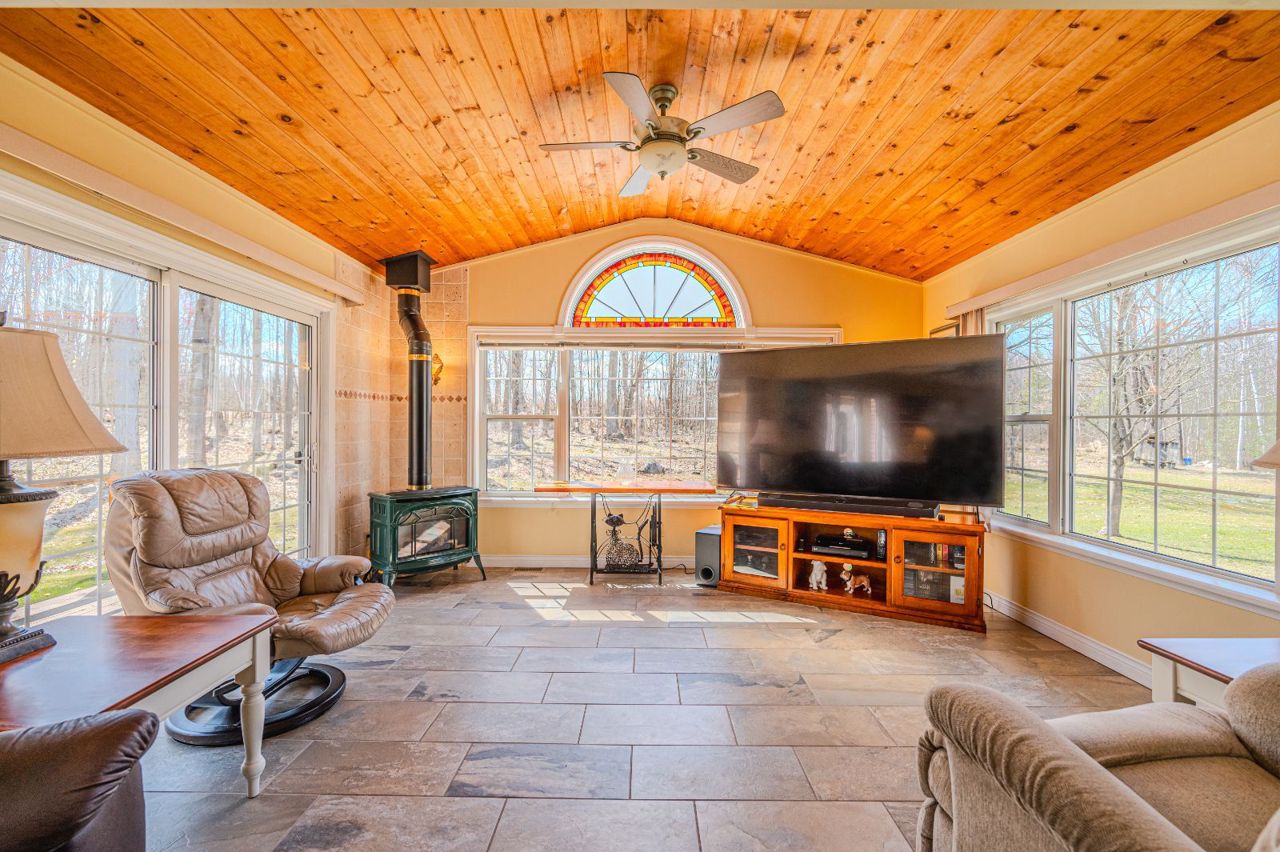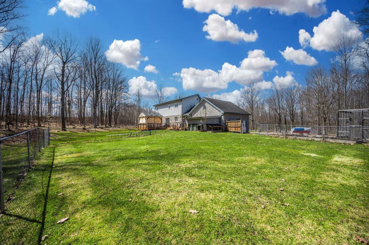 DISCOVER YOUR OWN PRIVATE 33-ACRE RETREAT AT THIS IMMACULATE 2-STOREY HOME! Welcome to 14808 Highway 12 in Victoria Harbour. This property is a secluded oasis nestled on 33 acres of natural beauty just off Highway 12. Surrounded by majestic trees, it offers unparalleled privacy while being conveniently close to Midland's amenities. The location ensures peaceful seclusion, with the Tay Trail across the street for leisurely strolls and nearby marinas and snowmobile trails for outdoor adventures. The property features cross-country trails, 4 serene ponds utilized for irrigation, and gorgeous perennial blooms, creating a nature lover's paradise. Multi-use zoning for rural and environmental protection ensures versatility. The home boasts a spacious driveway, heated double-car garage, covered front porch with pot lights, and sun-filled interior with picturesque views and hardwood and porcelain tile floors throughout. The kitchen has quartz counters and stainless steel appliances with a walkout to the deck, which features a screened-in 11 x 12 pavilion with hydro, a new roof, an overhead ceiling fan & TV outlet, perfect for al fresco dining, while the open-concept living spaces offer relaxation and entertainment. The family room exudes charm with its picturesque views, beautiful vaulted wood ceiling, cozy gas fireplace, and walk out to the backyard. Upstairs, three bedrooms await, including the primary retreat with an ensuite bathroom with a Jacuzzi tub. A new heating and cooling system installed in 2024 further enhances the home's efficiency and comfort with a Generac 18KW home standby generator providing added peace of mind. This meticulously maintained #HomeToStay must be seen to be truly appreciated!