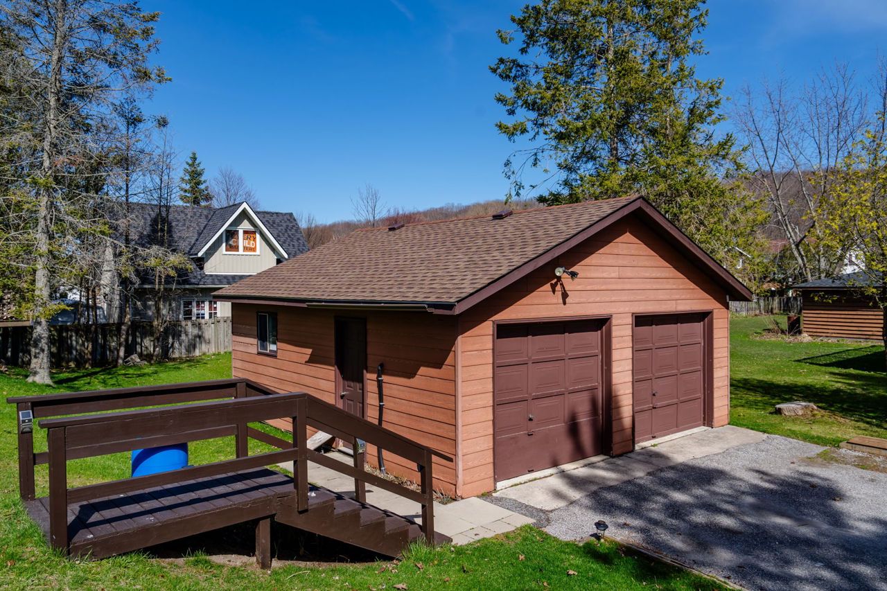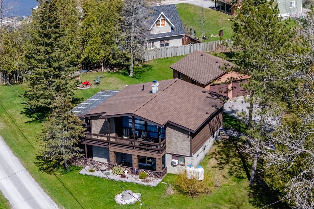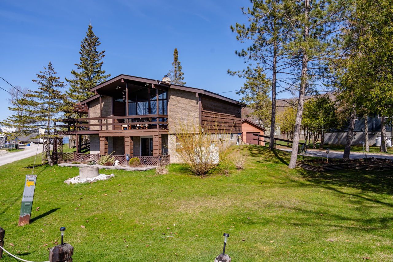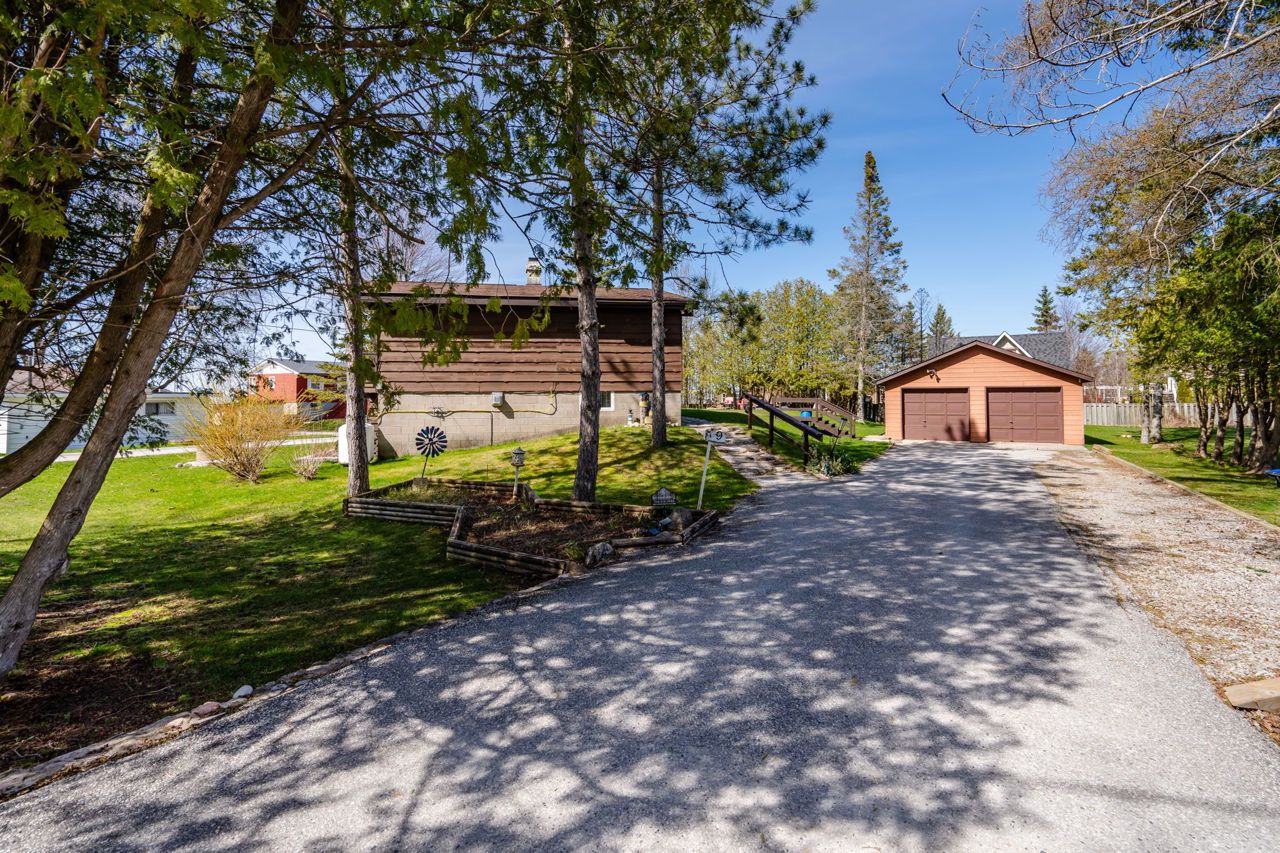 Enjoy deeded access to Georgian Bay just steps from your front door in this well cared for home. Whether you are looking for a year round home or cottage getaway, this charming raised bungalow is sure to please. The upstairs living room has a tall vaulted ceiling and large windows to view the nightly sunset as you gaze out over the bay, or enjoy the same view from the covered wrap around porch. Downstairs we find a large rec-room and bedroom as well as a full second bath. Perfect for entertaining, or perhaps for modifying into a second suite. Outside the almost 1/3 of an acre lot, detached double car garage and long driveway gives you plenty of space to run and play and store whatever boats, trailers or other toys you want to bring with you. Or go for a stroll or bike ride on the Tay Shore Trail, part of the Trans Canada Trail network just moments up the road. No matter what you love, this home is ready to deliver it to you. The privacy of the large lot combined with the private association road means that despite the short drive to all big city amenities, you will always find peace and quiet at home.