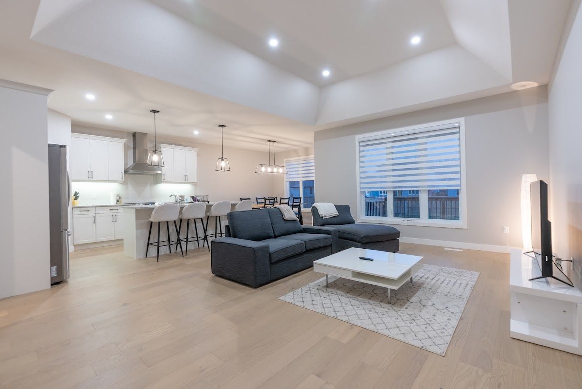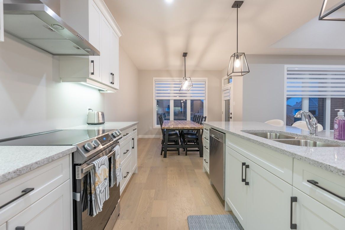 This Beautiful Bungalow Features A Spacious Open-Concept Layout With High-End Finishes Throughout, Including Beautiful Hardwood Flooring And Stylish Lighting Fixtures. The main floor boasts an open concept design, 9 ft ceilings, a functional kitchen with stainless steel appliances, and hardwood flooring throughout, with A Double Car Garage And Fenced Yard (1 side is missing since they are building the next home ), Beautiful Deck Fully finished Basement.