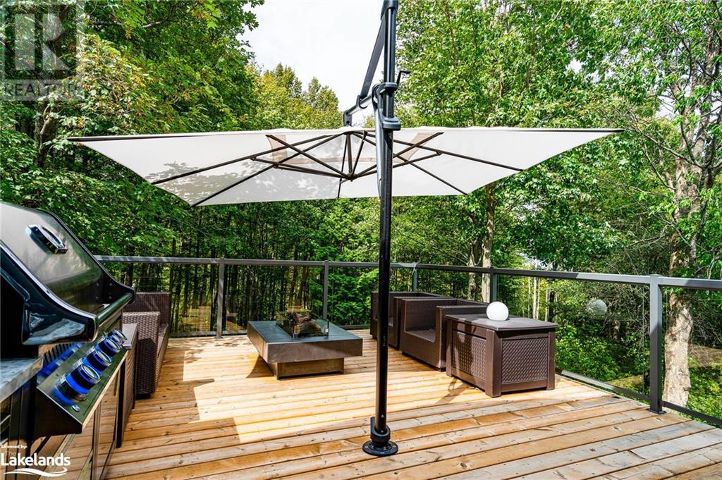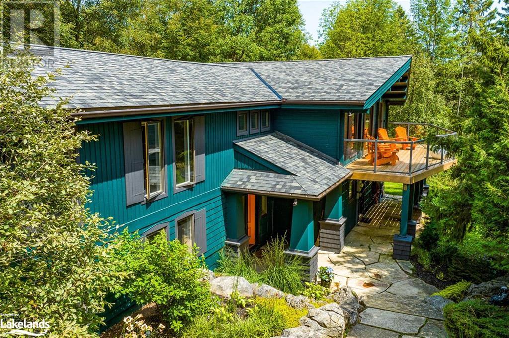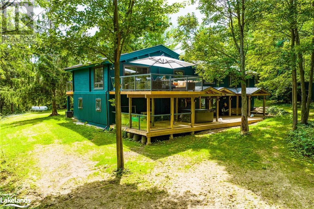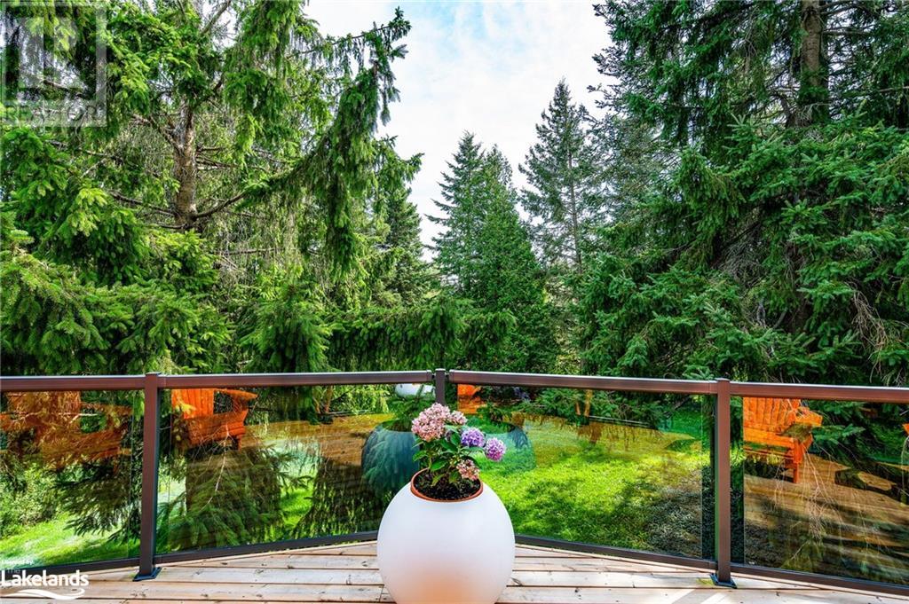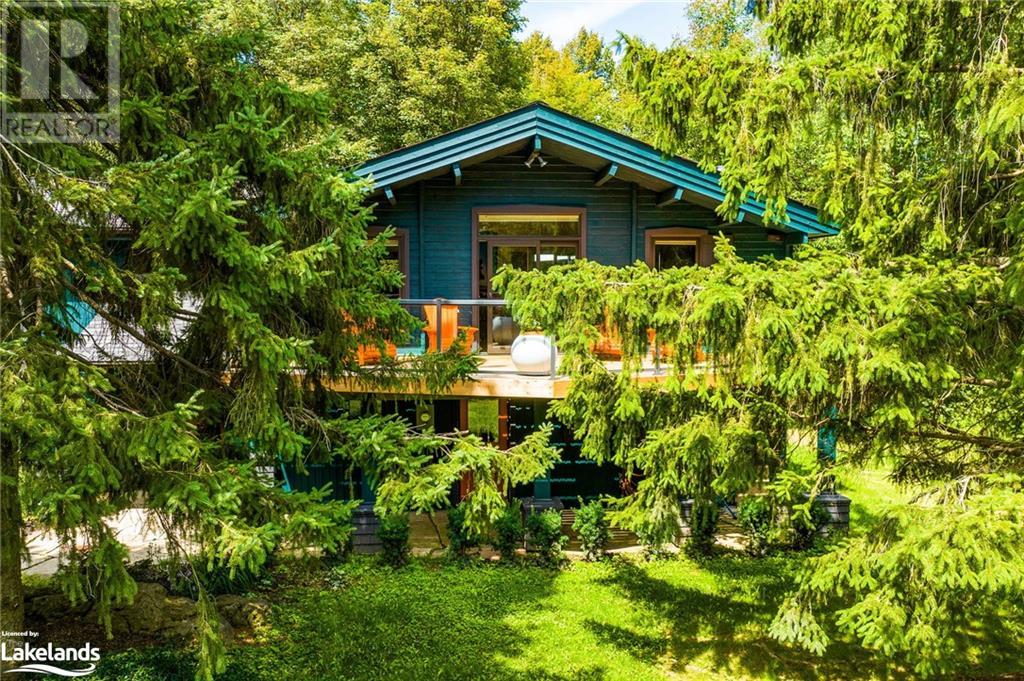 Welcome to the Castle Glen hideaway, a rare opportunity to own a private mountain retreat. Nestled among the trees, in the exclusive Castle Glen estates, this home is so breathtaking, it was featured in the Autumn 2022 edition of Escarpment Magazine. Sitting on just under 1.5 acres of forested land that backs onto a river, this is the ultimate sanctuary. A private trail entrance leads to a spring fed lake and the Bruce Trail, allowing you to enjoy swimming, paddle boarding, hiking, cross country skiing, and snowshoeing right out your back door. Offering two floors of open living space, a sprawling principal with gorgeous ensuite, chef's kitchen with Wolf ovens and Subzero fridge, amazing secondary living space on main floor, two fireplaces, three additional bedrooms, two second level walk out decks with patio seating, oversized umbrella, built-in bbq, and gas fireplace. A main level covered outdoor lounge area with hot-tub completes your year round oasis. Drive mere minutes to Olser Bluff Ski Club, Craiglieth, and the top of Blue Mountain. A short drive to downtown Collingwood, Thornbury, or Kimberly for amazing schools, shopping and dining. Whether you are full or part time, this jaw dropper has it all! (id:22211)