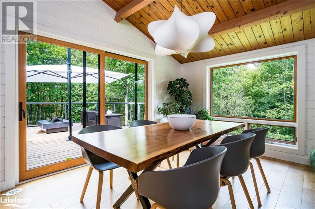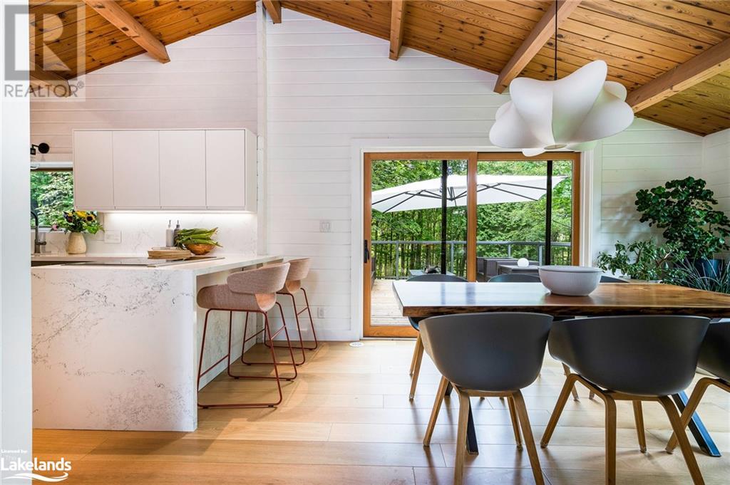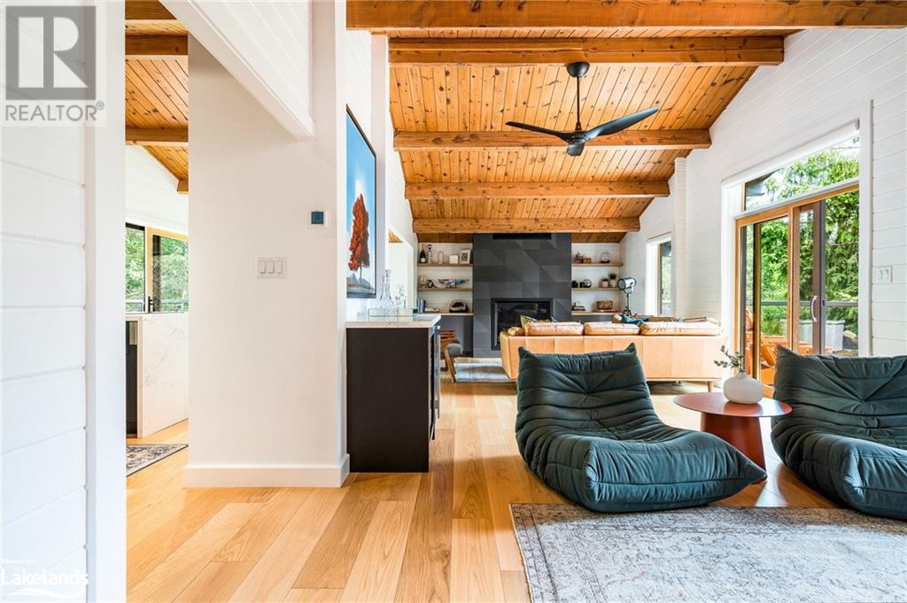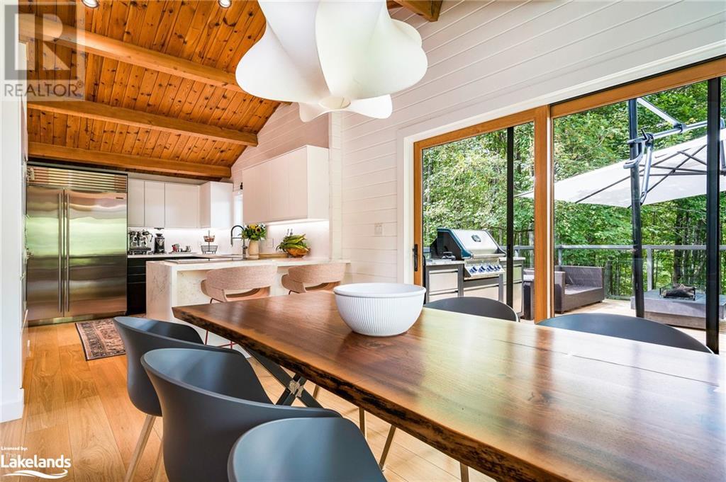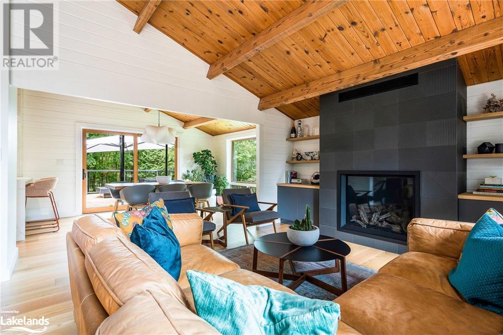 Welcome to the Castle Glen hideaway, a rare opportunity to own a private mountain retreat. Nestled among the trees, in the exclusive Castle Glen estates, this home is so breathtaking, it was featured in the Autumn 2022 edition of Escarpment Magazine. Sitting on just under 1.5 acres of forested land that backs onto a river, this is the ultimate sanctuary. A private trail entrance leads to a spring fed lake and the Bruce Trail, allowing you to enjoy swimming, paddle boarding, hiking, cross country skiing, and snowshoeing right out your back door. Offering two floors of open living space, a sprawling principal with gorgeous ensuite, chef's kitchen with Wolf ovens and Subzero fridge, amazing secondary living space on main floor, two fireplaces, three additional bedrooms, two second level walk out decks with patio seating, oversized umbrella, built-in bbq, and gas fireplace. A main level covered outdoor lounge area with hot-tub completes your year round oasis. Drive mere minutes to Olser Bluff Ski Club, Craiglieth, and the top of Blue Mountain. A short drive to downtown Collingwood, Thornbury, or Kimberly for amazing schools, shopping and dining. Whether you are full or part time, this jaw dropper has it all! (id:22211)