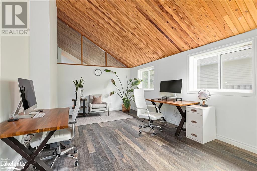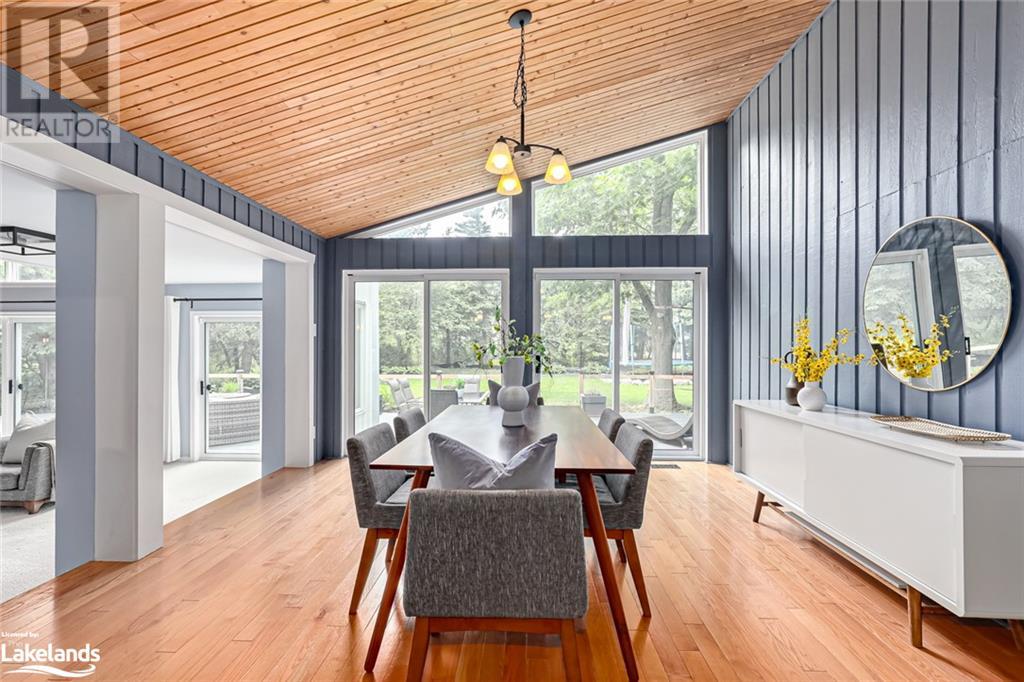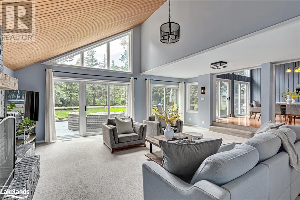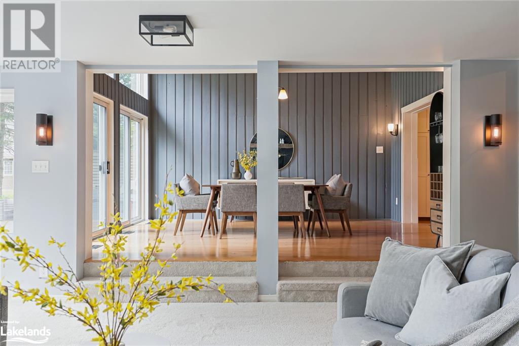 This remarkable chalet sits on an 83 by 190 foot lot, steps to the North Chair at Blue and the Toronto Ski club, minutes to the Village, private ski clubs and Northwinds Beach. Over 4,500 SF of total living space with six bedrooms, entertainer's kitchen, large family and formal dining rooms with walkouts to deck and lush yard. Along with the spacious kitchen, dining and living areas, the main floor also includes two multi-purpose rooms, currently used as a large office and a spinning studio. Some other notable highlights of this property include: 450 SF main floor primary with en suite, gas fireplace and walkout to deck; 400 SF main floor in-law suite with a separate entrance, gas fireplace and 3-piece bath; total of 4 fireplaces (2 gas and 2 wood); paved drive with room for 8+ cars; attached garage with Tesla charging station; landscaped grounds with irrigation system; huge amounts of storage; rec-room in the basement; a floor plan that can handle entertaining a crowd while providing ample space for separate activities. A great property to call home or be your getaway in Ontario's premier 4-season vacation destination. BONUS: this property has potential to be operated as a Bed and Breakfast. (id:22211)