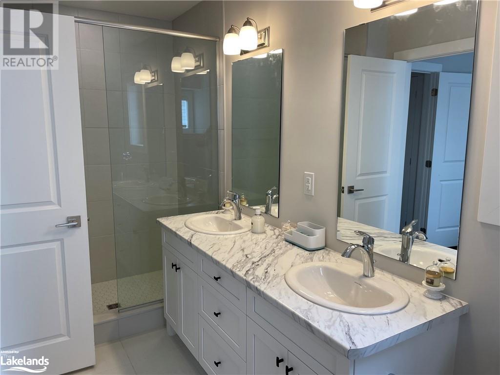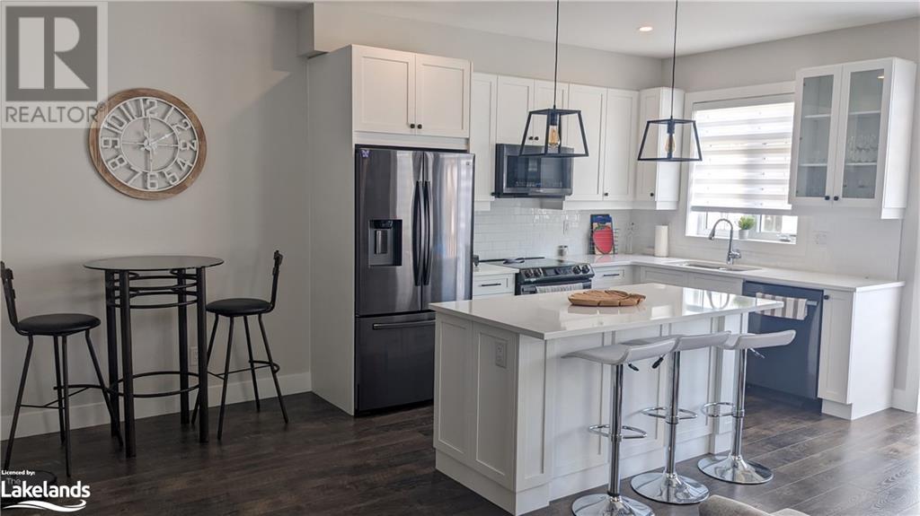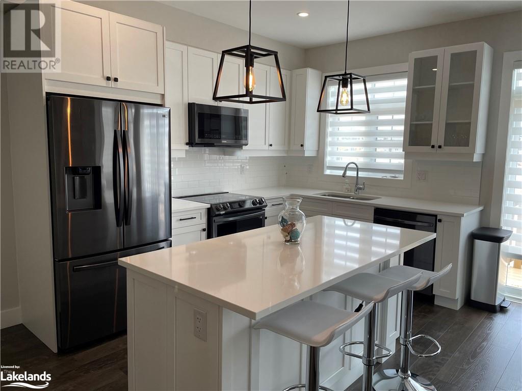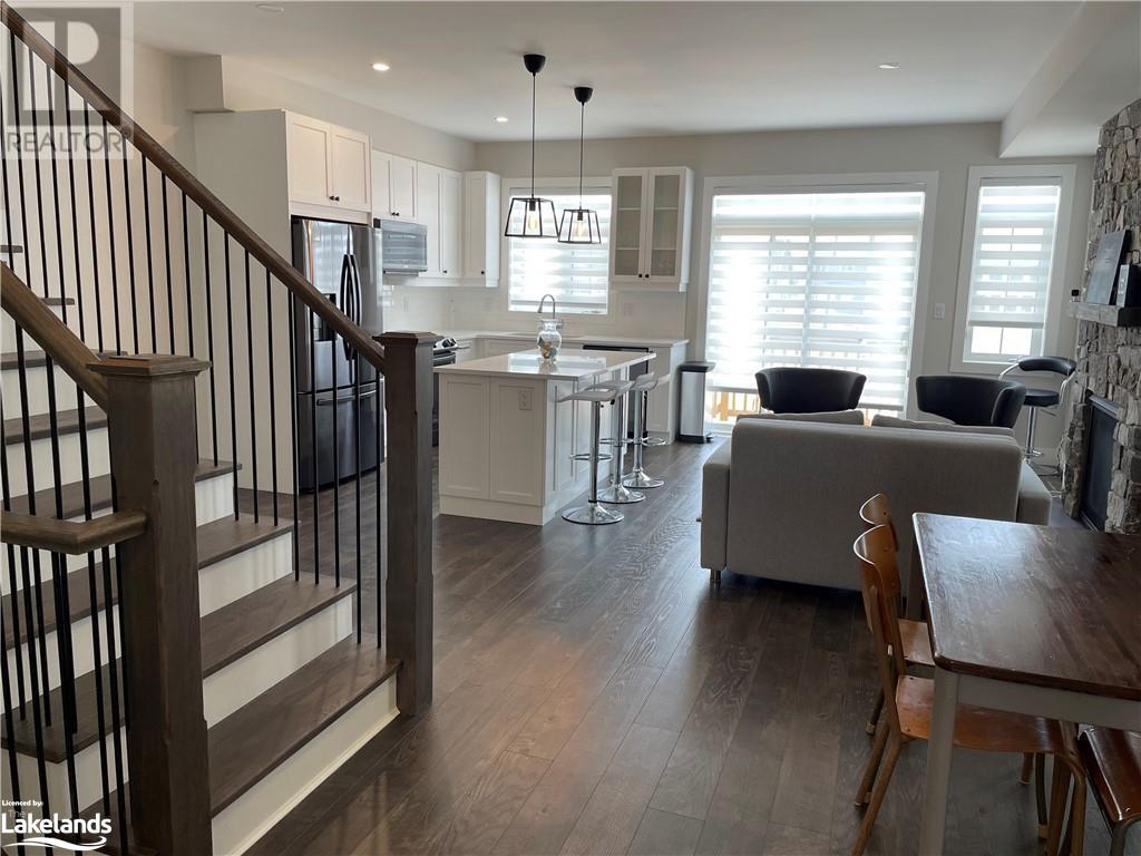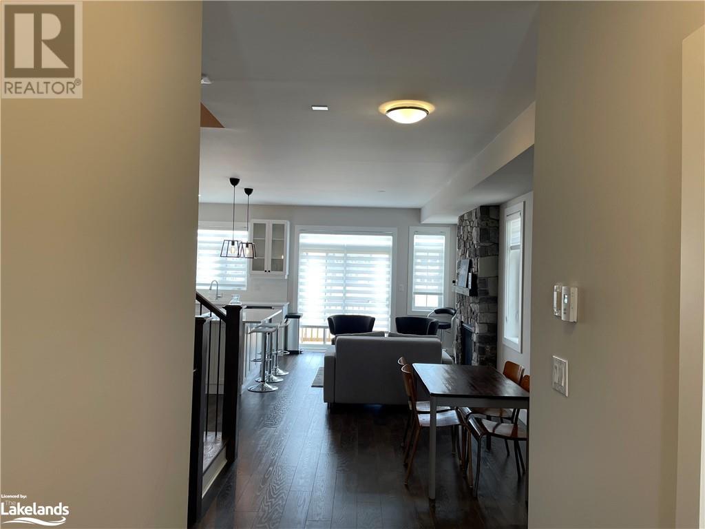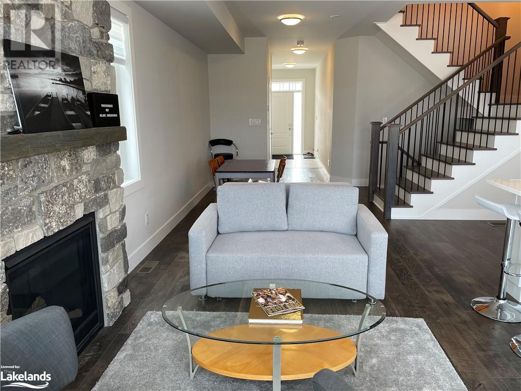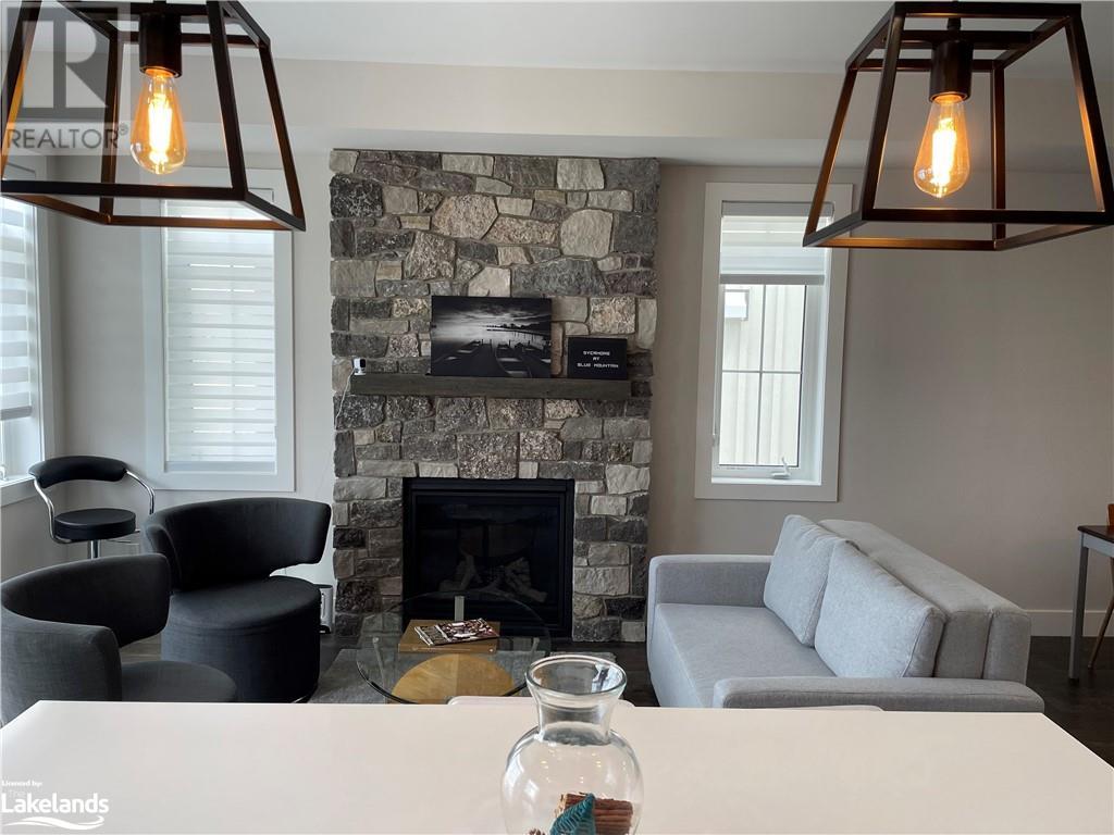 WINDFALL WINTER SEASONAL RENTAL: 3 bedroom, 3.5 bathrooms, fully finished basement for family winter fun! Upgraded Crawford model with stone fireplace, engineered hardwood throughout. Brand new with over 1600 sq ft; tasteful finishes and décor await you and your family for the ski season. Ski Hill views, walk to the chair at Blue Mountain or ten minute drive to other area clubs. Imagine soaking in the pools at the Shed after a long day on the slopes, or relaxing in front of the fire. The attached garage means no brushing off the car in the morning after a snowfall. Queen bed in two of the bedrooms with a single over double bunk/trundle bed in the third bedroom, all upstairs. The cabinet bed in the basement along with a pullout loveseat in the living room means lots of room for family sleepovers. Work from your winter home with high speed internet and a desk in the primary bedroom. The laundry room complete with a sink is also upstairs. The main floor is open concept kitchen/dining/living, and also has a powder room. The finished basement has an additional TV for the kids to have their own space, along with another bathroom. Enjoy everything that the Village at Blue has to offer from nightlife, to retail, kids activities and more! New dining table that seats 10 will be in place by Fall. Flexible dates for a 4 month lease (December to April). Listed price is for winter; Fall available at different pricing. (id:22211)