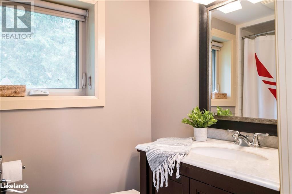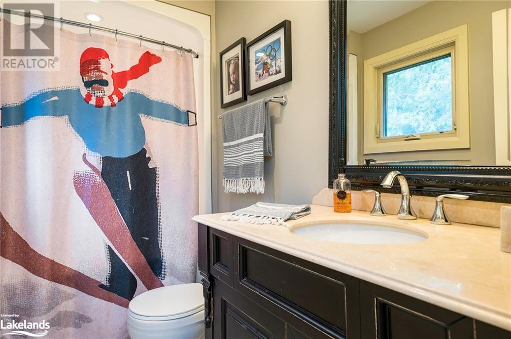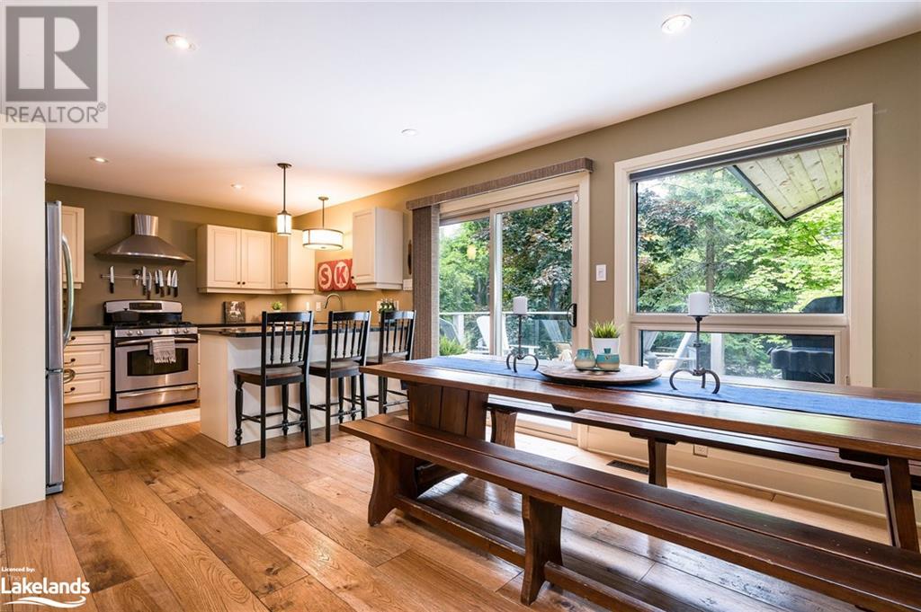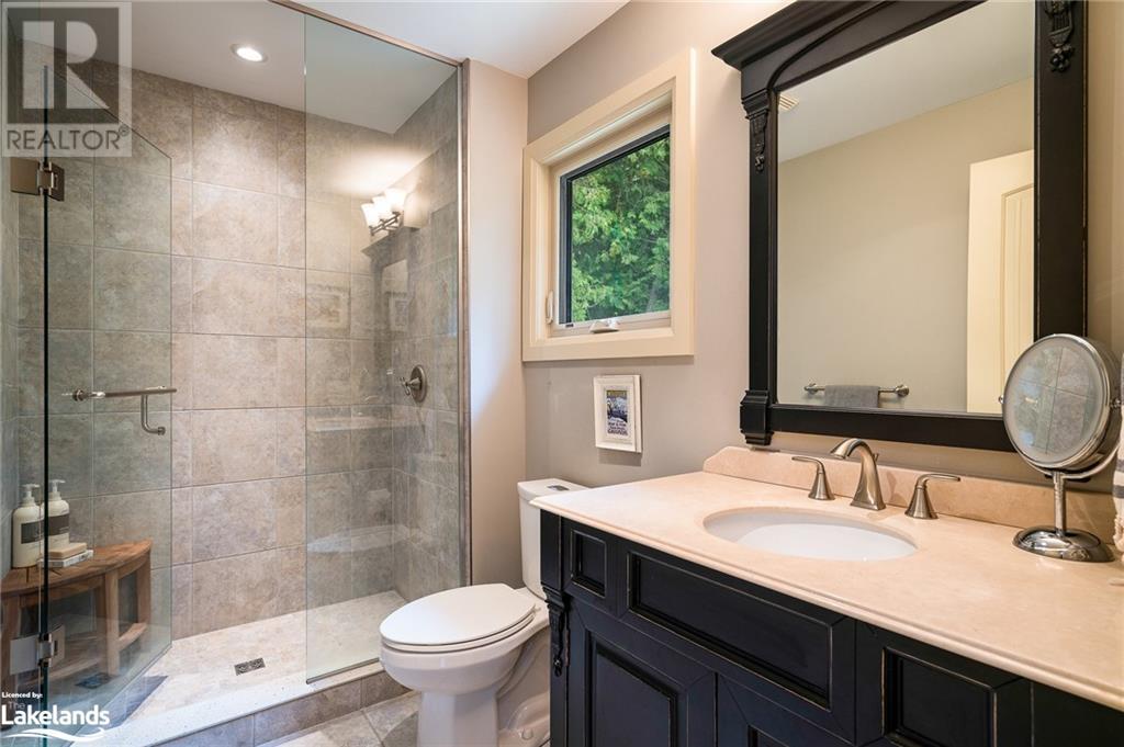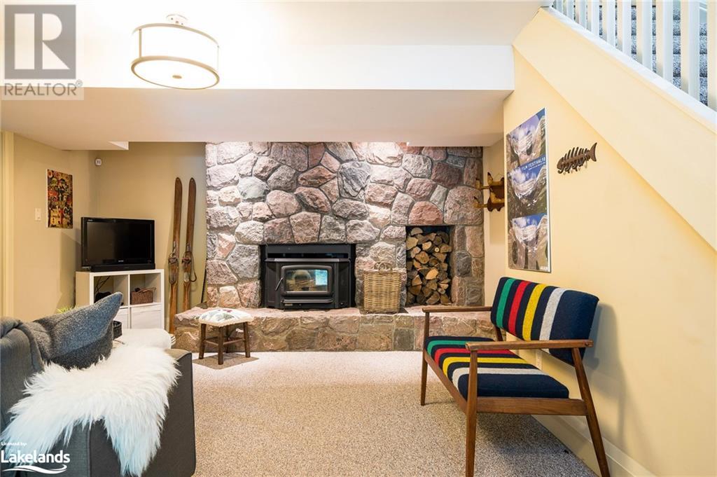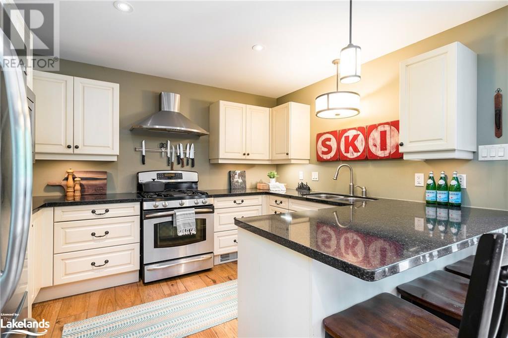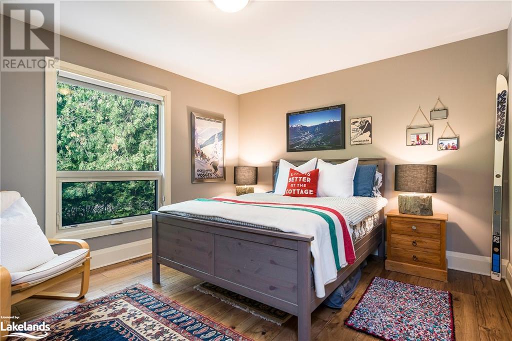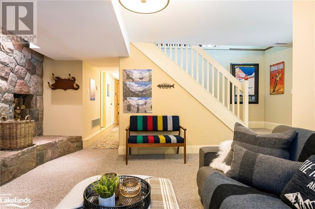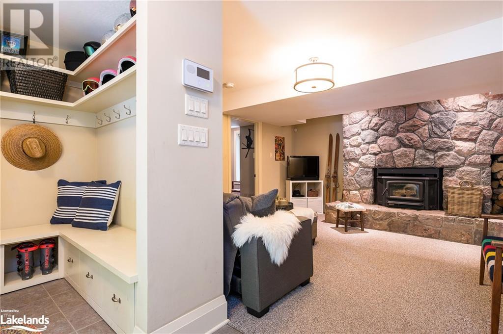 Shore Acres-Enjoy this exclusive 5 bedroom/3 bath chalet year round with access to the private beach and conveniently located minutes to Georgian Peaks, Georgian Bay Club and downtown Thornbury plus direct access to the Georgian Trail just across the street. Completely renovated down to the studs and upgraded from the original chalet. This property features two floor to ceiling wood burning fireplaces constructed with locally sourced stone. The upper level offers custom gourmet kitchen, dining room, impressive living room with vaulted ceiling, primary bedroom with ensuite, plus an additional 4 piece bathroom and laundry. Wide plank hardwood flooring throughout the main level. Just off the dining room is the main deck with a covered dining area and open lounge space surrounded by glass railings. The ground level features a family room with wood burning fireplace, mudroom, 4 bedrooms, 6 person sauna and a 4 piece bathroom. In addition, the backyard offers additional space for enjoying the outdoors including the fire pit and a fully fenced cedar chip lined dog run. Not to forget the fully insulated ski tuning shed. (id:22211)