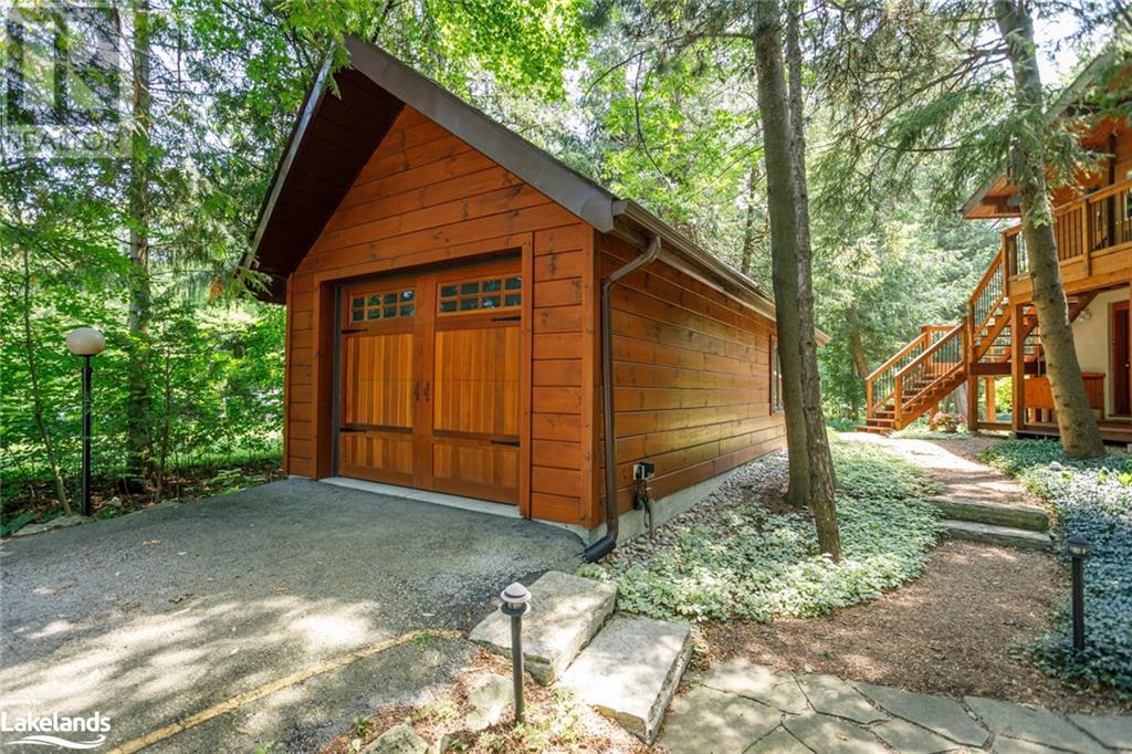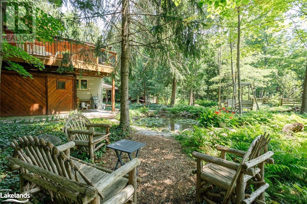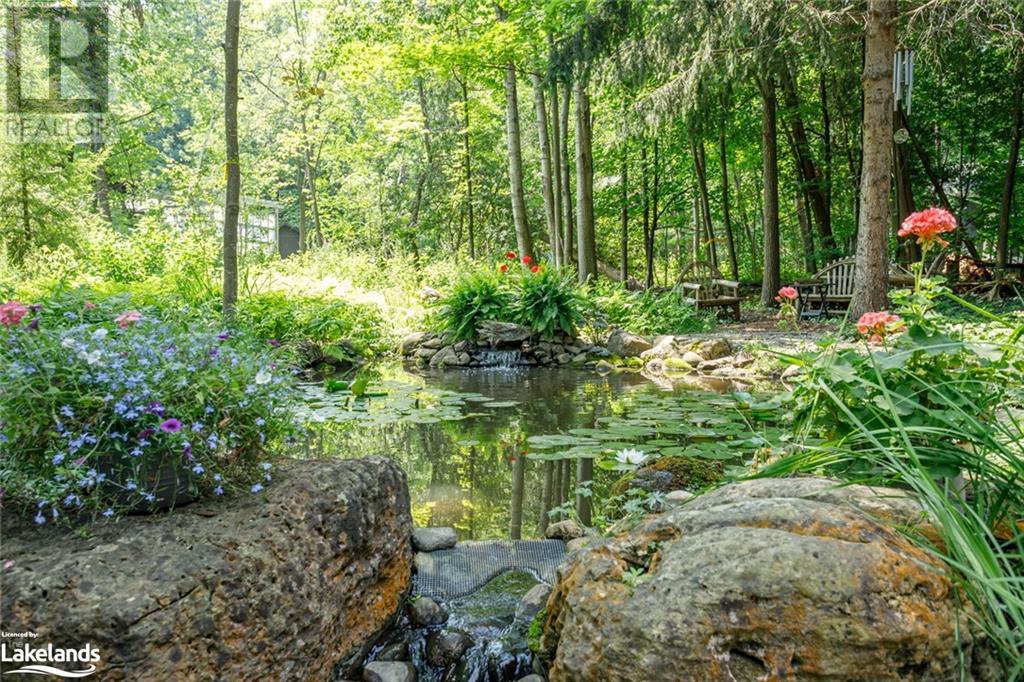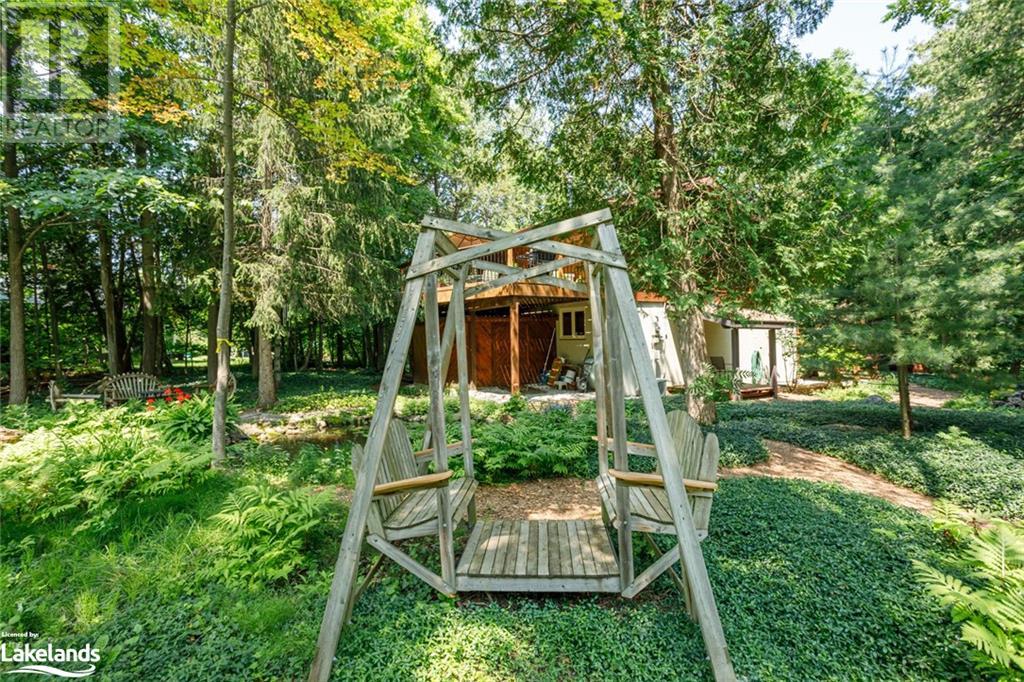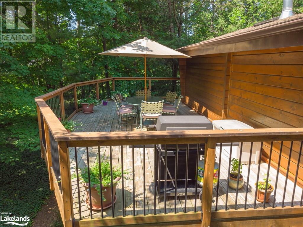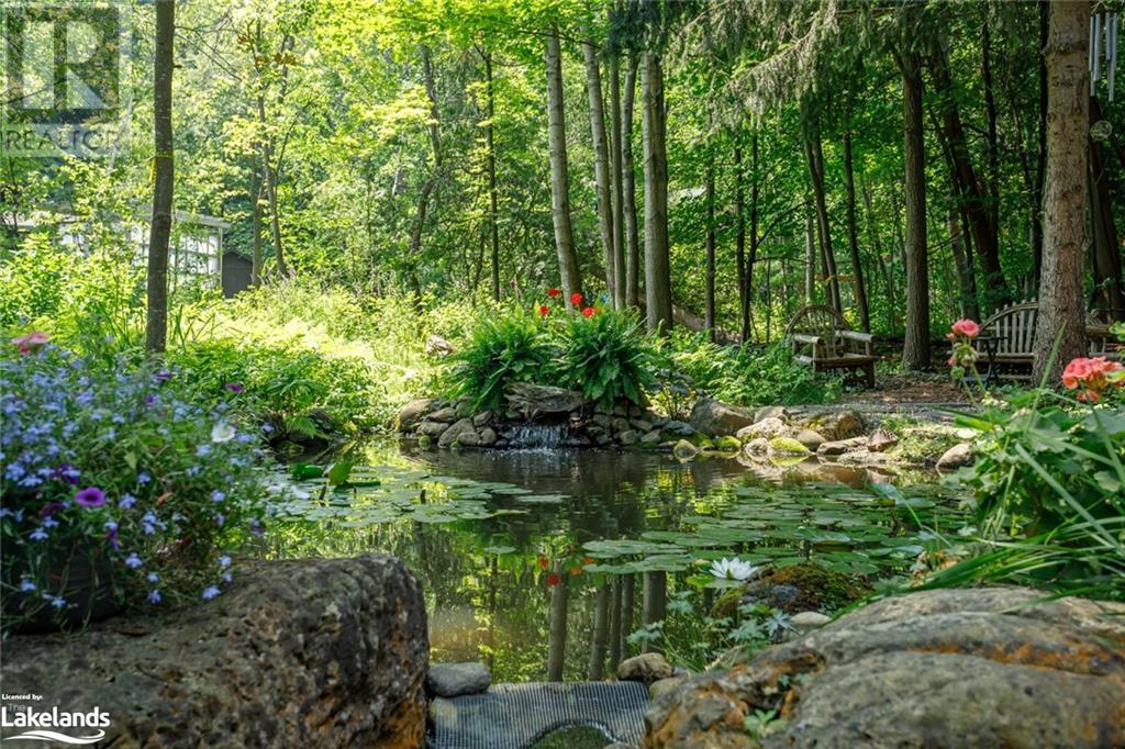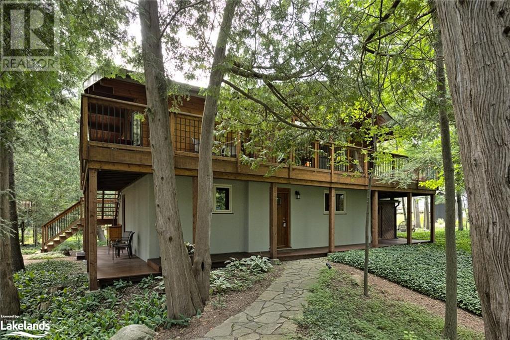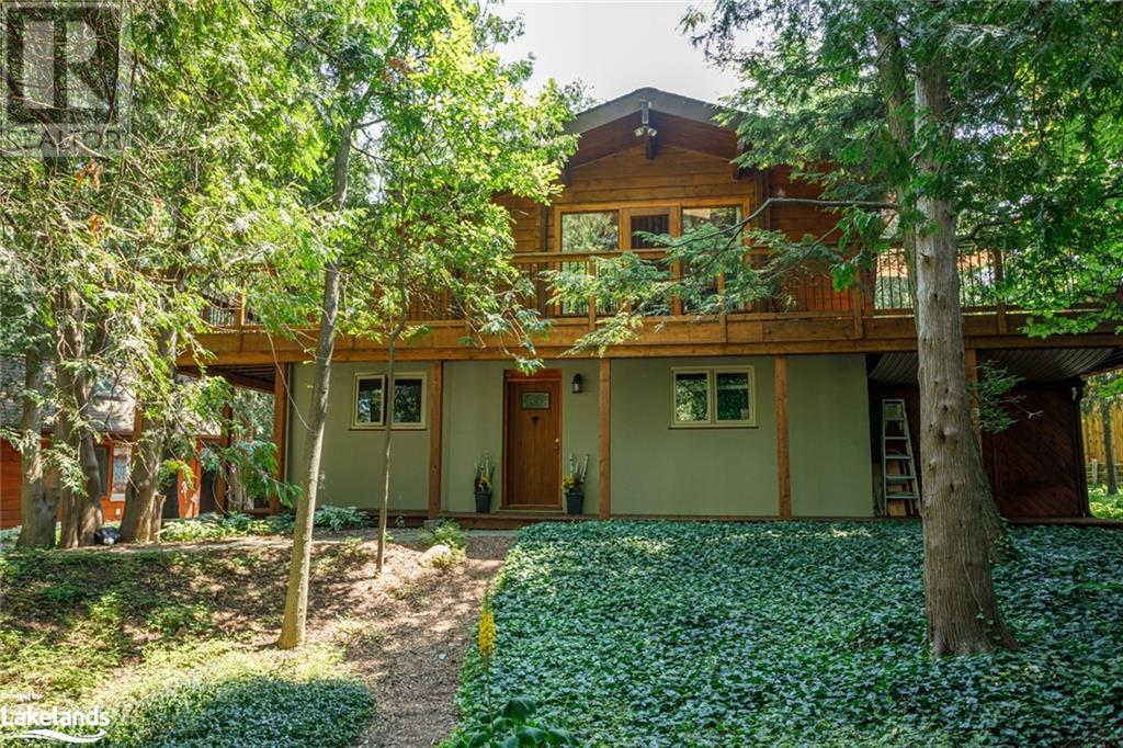 Georgian Woodlands is an established treed neighbourhood in the heart of Ski Country, but for your year round enjoyment, this gorgeous property is walking distance to Northwinds Beach, a quick drive to numerous Golf courses, and on the edge of the famous Georgian Trail for cyclists, hikers, groomed in winter by the Town for cross country skiers & snowshoers. This Four Seasons Log home has been meticulously maintained over the years with a Zen-like backyard oasis of tree canopies and pond. The ground floor is cool and quiet with 3 bedrooms and a 4-piece bath, plus a mud-room/laundry room with entry near the garage, ideal for arrival with your ski boots and gear. The top floor has an open dining room/living room with gleaming pine floors and a new skylight, and a gas fireplace for cozy evenings entertaining friends or just curled up to enjoy your book or movie. An efficient kitchen with stainless appliances is just off the dining room, and at the opposite end is the primary bedroom and a 3-piece bath. A walk-around deck completes the special character of this home with a larger expanse at the west end for outdoor dining and entertaining. The single car garage is also large enough for bikes and other toys plus offers a 137 SF winterized bonus room to use as a home office, music / art studio or home gym. Gas & Hydro cost for 2022, with full time use - $2577 or about $214/mth. An August 2023 Brickhouse Home Inspection Report is available to serious Buyers. (id:22211)