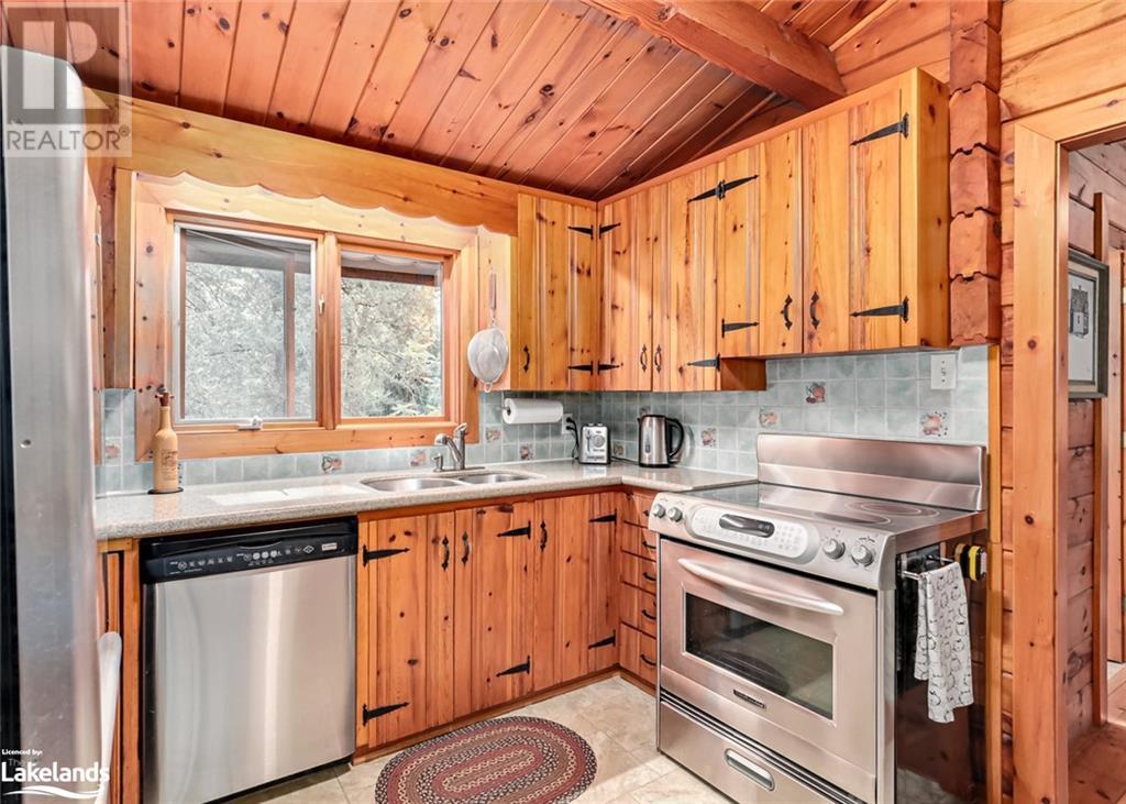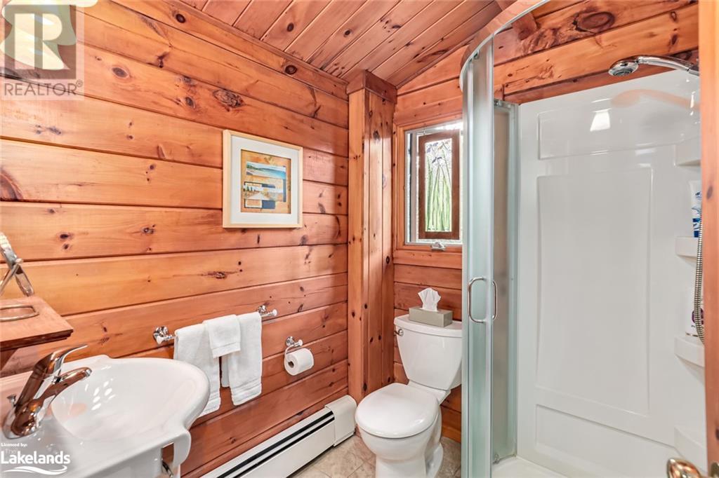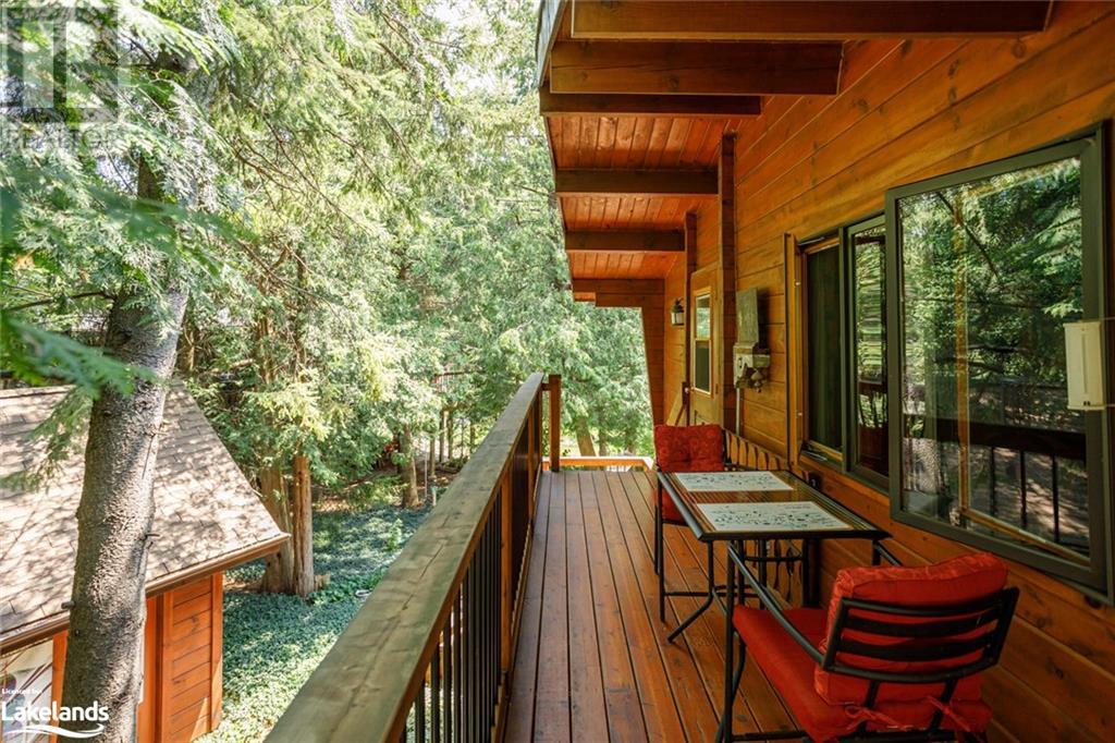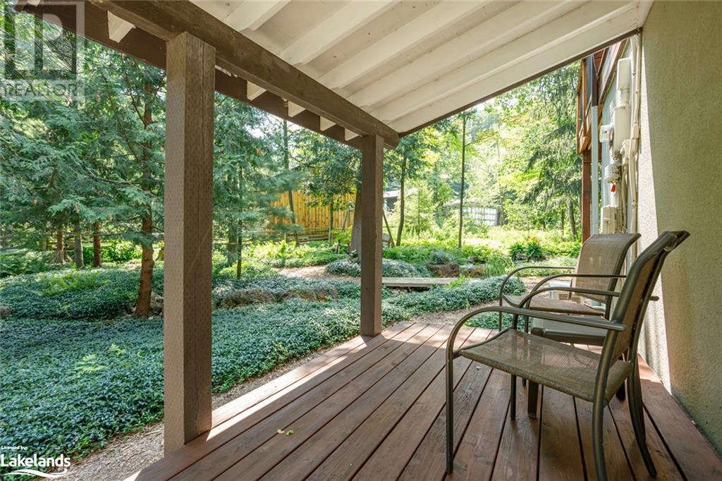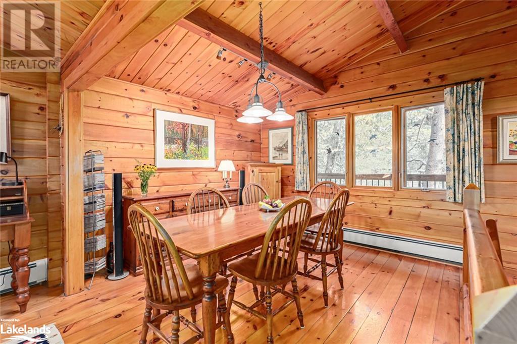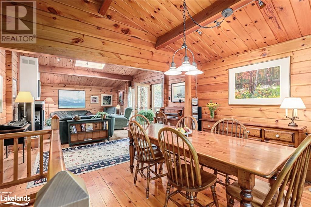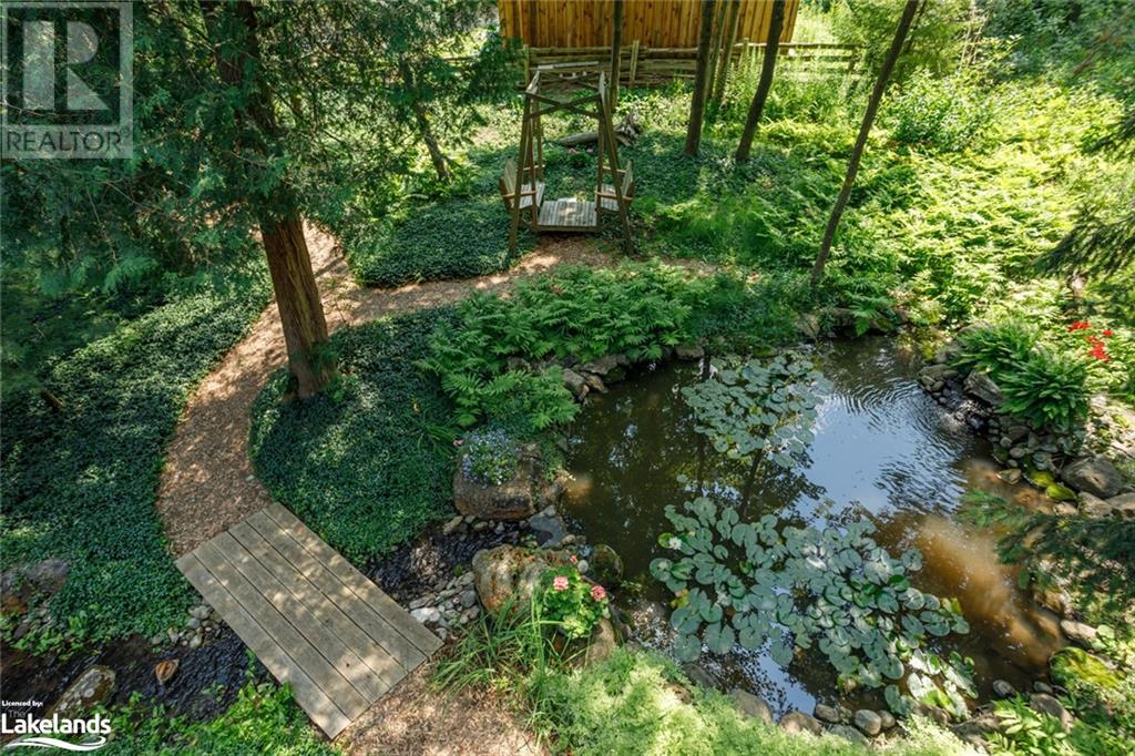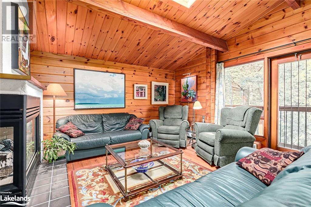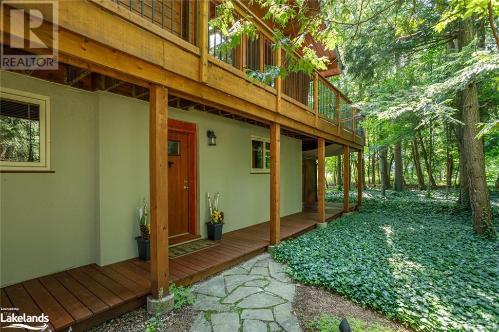 Georgian Woodlands is an established treed neighbourhood in the heart of Ski Country, but for your year round enjoyment, this gorgeous property is walking distance to Northwinds Beach, a quick drive to numerous Golf courses, and on the edge of the famous Georgian Trail for cyclists, hikers, groomed in winter by the Town for cross country skiers & snowshoers. This Four Seasons Log home has been meticulously maintained over the years with a Zen-like backyard oasis of tree canopies and pond. The ground floor is cool and quiet with 3 bedrooms and a 4-piece bath, plus a mud-room/laundry room with entry near the garage, ideal for arrival with your ski boots and gear. The top floor has an open dining room/living room with gleaming pine floors and a new skylight, and a gas fireplace for cozy evenings entertaining friends or just curled up to enjoy your book or movie. An efficient kitchen with stainless appliances is just off the dining room, and at the opposite end is the primary bedroom and a 3-piece bath. A walk-around deck completes the special character of this home with a larger expanse at the west end for outdoor dining and entertaining. The single car garage is also large enough for bikes and other toys plus offers a 137 SF winterized bonus room to use as a home office, music / art studio or home gym. Gas & Hydro cost for 2022, with full time use - $2577 or about $214/mth. An August 2023 Brickhouse Home Inspection Report is available to serious Buyers. (id:22211)