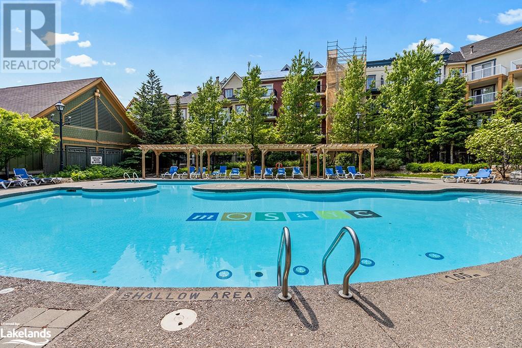 Welcome to Mosaic! A boutique hotel in the heart of the village at Blue Mountain. Great floor plan featuring wedge-shaped design giving plenty of room to enjoy. Completely furnished and in the Blue Mountain Village Rental program which provides revenue when you're not using it. Like a cottage without the work! Mosaic features a year-round heated pool, hot tub, sauna, gym, owners lounge. Owners receive the use of one underground parking spot free of charge as well as a personal ski-locker. Condo fees include utilities. Convenient kitchenette includes cooktop, bar fridge, microwave, dishwasher. Oversized balcony allows you to enjoy the outdoors while relaxing. HST is applicable but can be deferred by obtaining an HST number and enrolling in the rental management program. 2% plus HST one time Blue Mountain Village Association entry to be paid by purchaser. (id:22211)