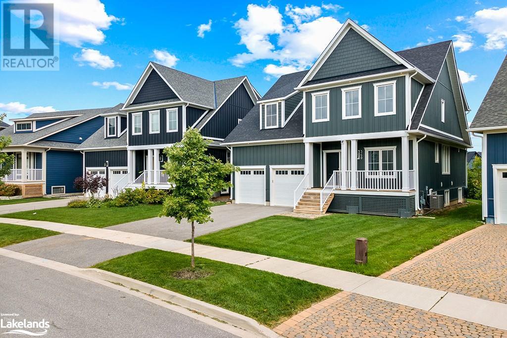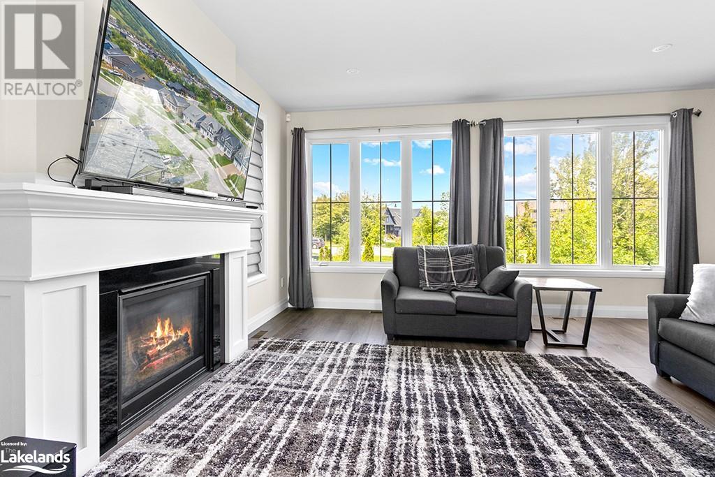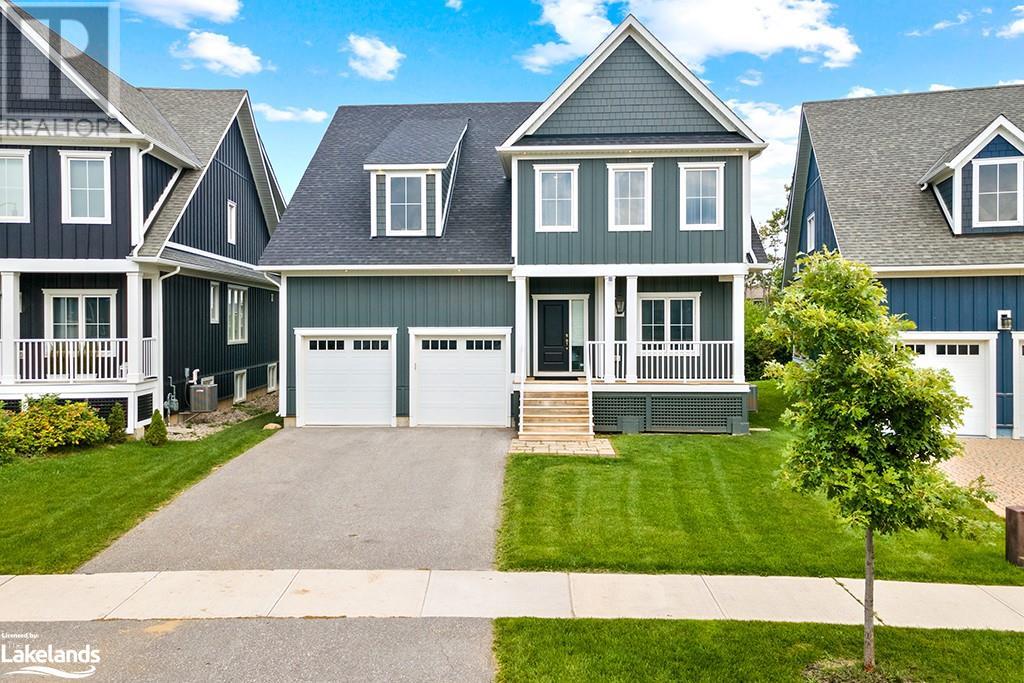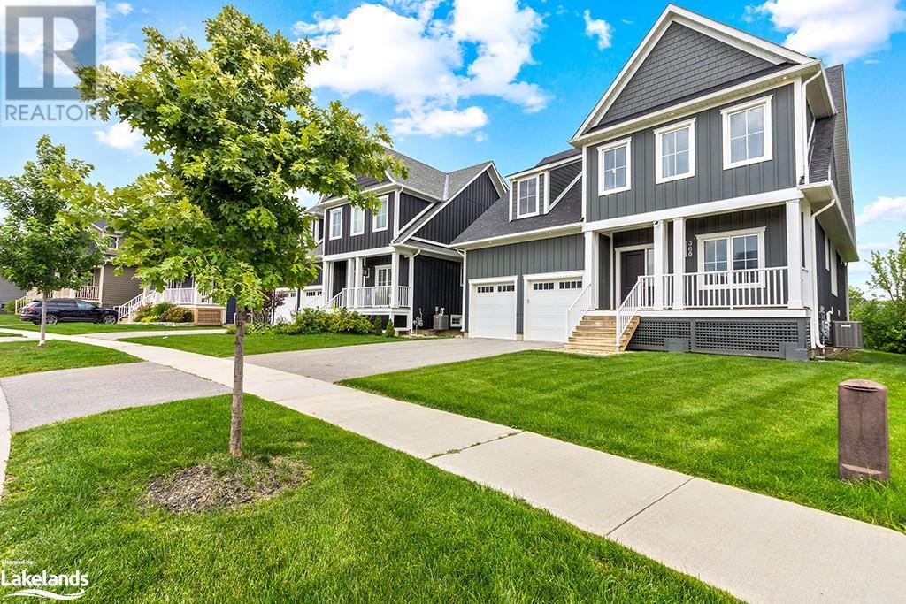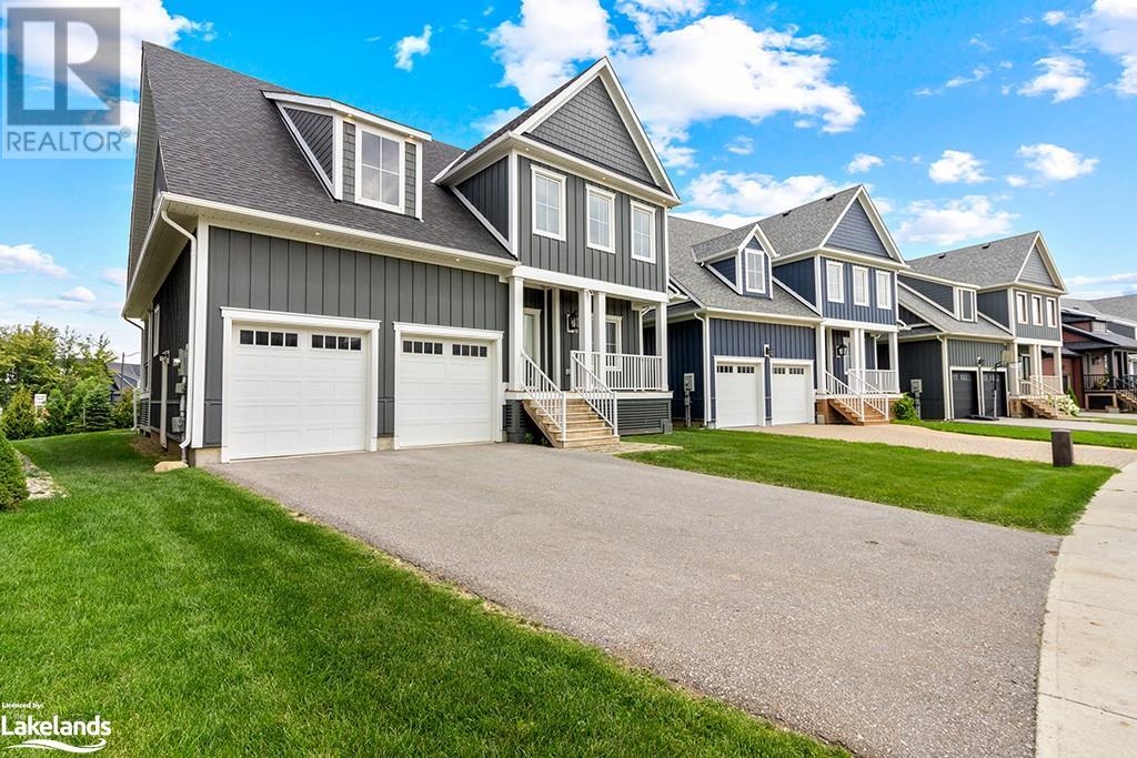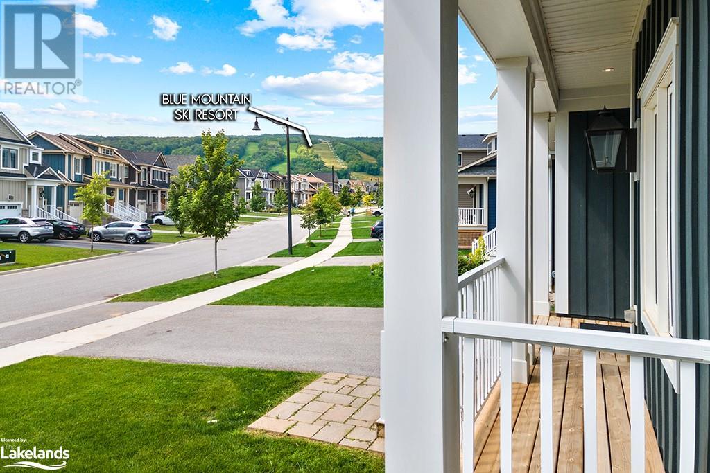FABULOUS FOUR BEDROOM THREE AND A HALF BATHROOM WINDFALL SINGLE FAMILY HOME - Looking for a resort home close the to the ski trails and Blue Mountain Resort? Look no further! This spacious 4 bedroom plus den has a separate large dining room giving families lots of room to enjoy dinner time together. Nine foot ceilings throughout the main level and coffered ceilings upstairs. Lots of natural light coming into the house through the many over-sized windows. This lovely home backs onto one of the many walking trails and green corridor with lots of trees and shrubs helping make your backyard private. Beautiful stone gas fireplace with reclaimed wood timber mantel gives this home a very warm and inviting mountain feel. Two covered porches and generous backyard provide lots of outdoor living space with views of the picturesque mountains. Convenient entry way through the garage into the mudroom/laundry room. Here are some additional features: •Open to below finished staircase •Open concept main floor as the owners paid to remove the wall for the dining area •Back porch door moved to laundry/mud room to create symmetrical windows in living area •Deluxe laminate flooring throughout including the bedrooms •Garage door openers •A/C •Pot lights in the garage •Pot light outside •Planted trees in the back worth $6000 •Paid lawn service e.g. cutting the grass weed control and snow removal Enjoy The Shed, Windfall's four season facility with a year round swimming pool, hot tub, sauna, fitness room and gathering room making it the social hub of the community exclusively for Windfall residents (id:22211)