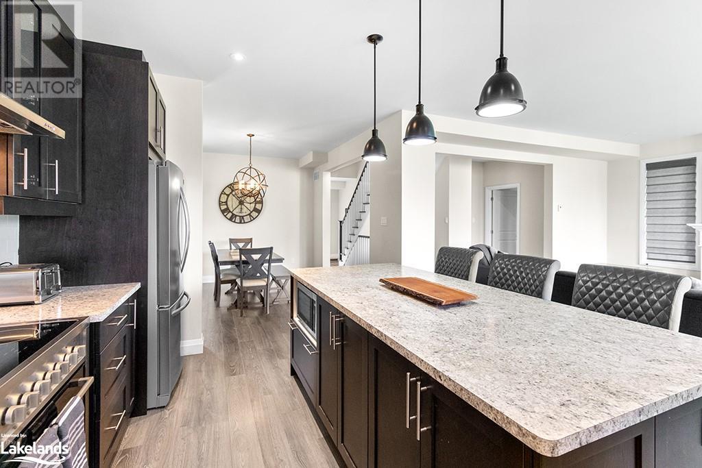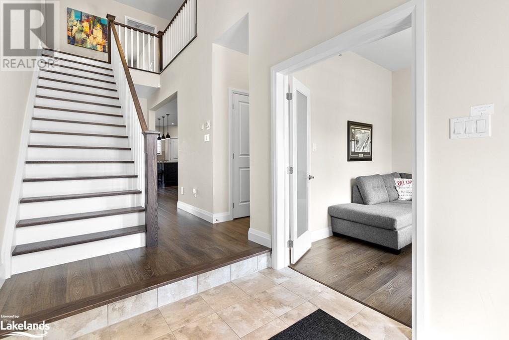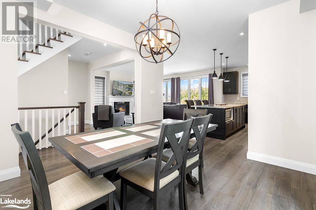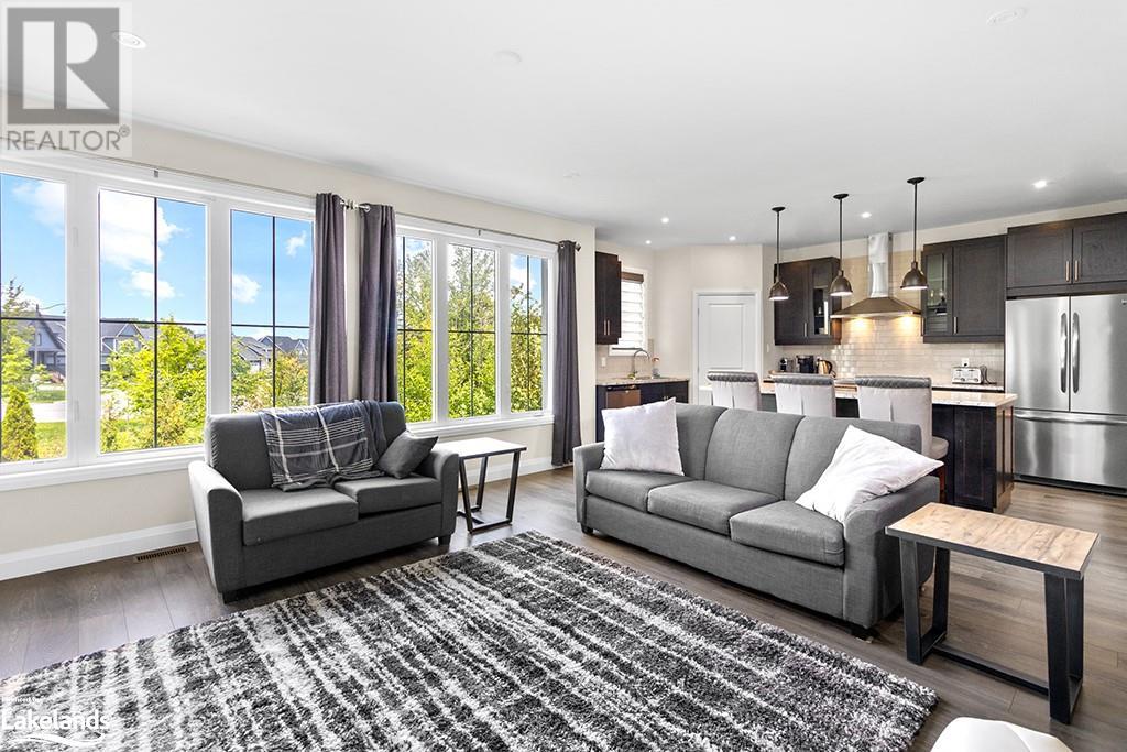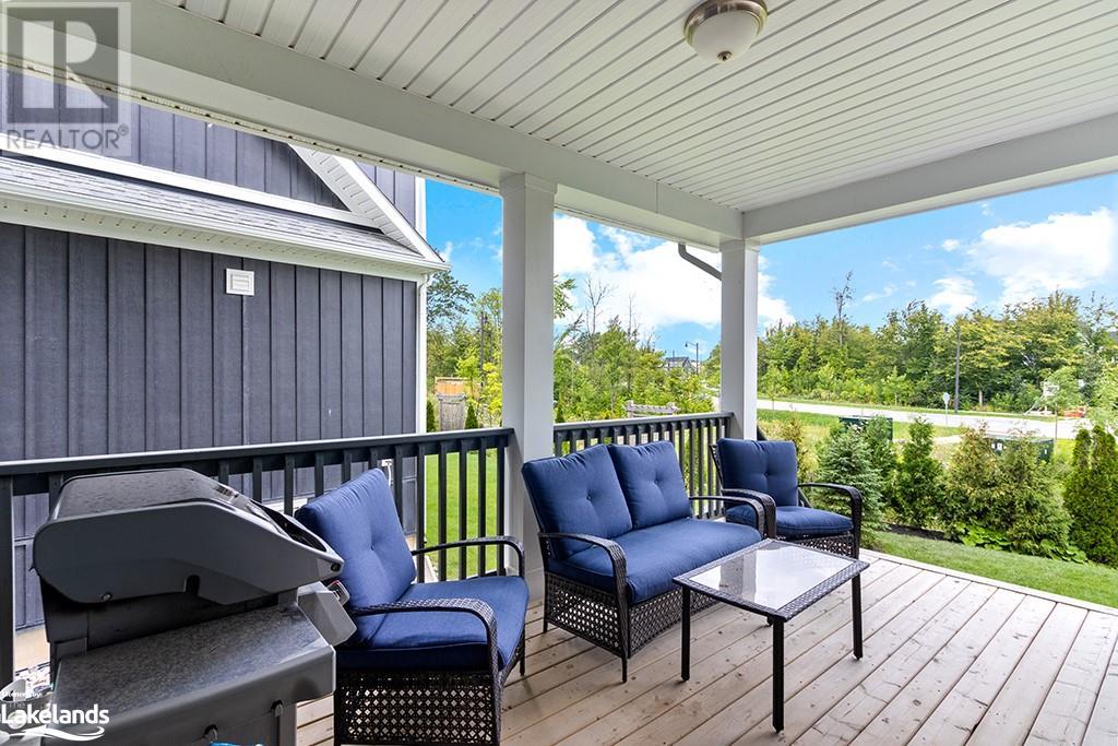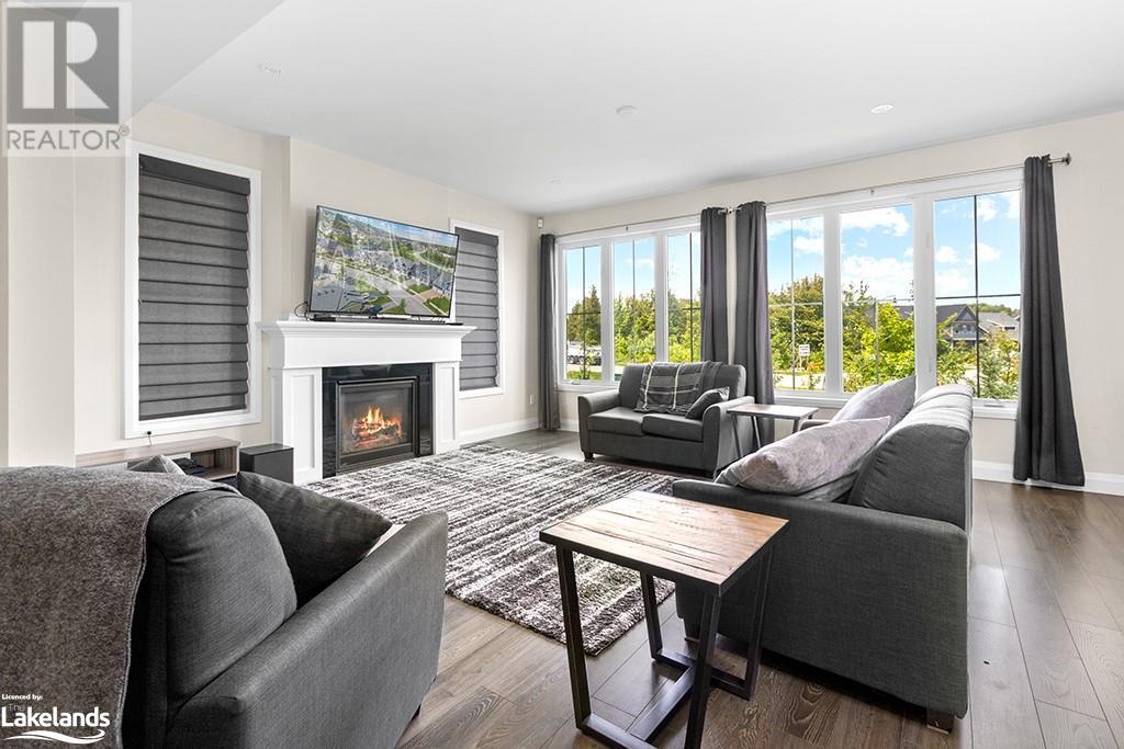 FABULOUS FOUR BEDROOM THREE AND A HALF BATHROOM WINDFALL SINGLE FAMILY HOME - Looking for a resort home close the to the ski trails and Blue Mountain Resort? Look no further! This spacious 4 bedroom plus den has a separate large dining room giving families lots of room to enjoy dinner time together. Nine foot ceilings throughout the main level and coffered ceilings upstairs. Lots of natural light coming into the house through the many over-sized windows. This lovely home backs onto one of the many walking trails and green corridor with lots of trees and shrubs helping make your backyard private. Beautiful stone gas fireplace with reclaimed wood timber mantel gives this home a very warm and inviting mountain feel. Two covered porches and generous backyard provide lots of outdoor living space with views of the picturesque mountains. Convenient entry way through the garage into the mudroom/laundry room. Here are some additional features: •Open to below finished staircase •Open concept main floor as the owners paid to remove the wall for the dining area •Back porch door moved to laundry/mud room to create symmetrical windows in living area •Deluxe laminate flooring throughout including the bedrooms •Garage door openers •A/C •Pot lights in the garage •Pot light outside •Planted trees in the back worth $6000 •Paid lawn service e.g. cutting the grass weed control and snow removal Enjoy The Shed, Windfall's four season facility with a year round swimming pool, hot tub, sauna, fitness room and gathering room making it the social hub of the community exclusively for Windfall residents (id:22211)