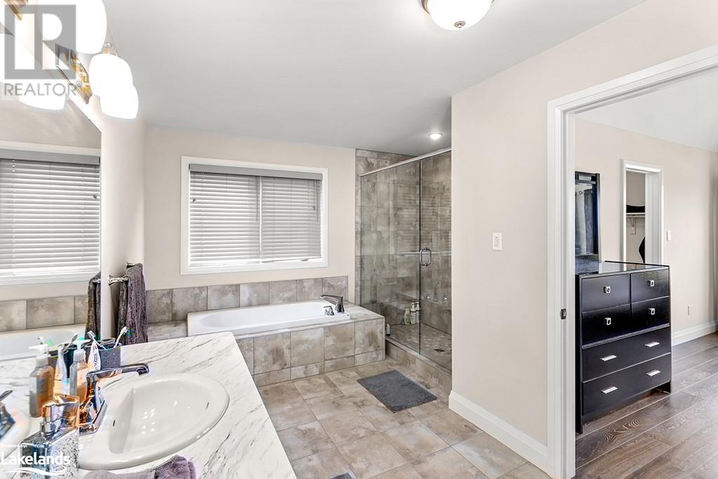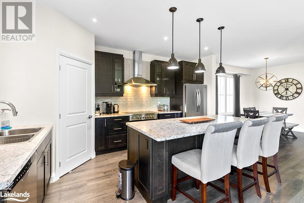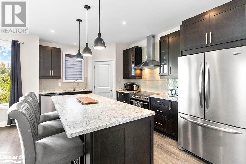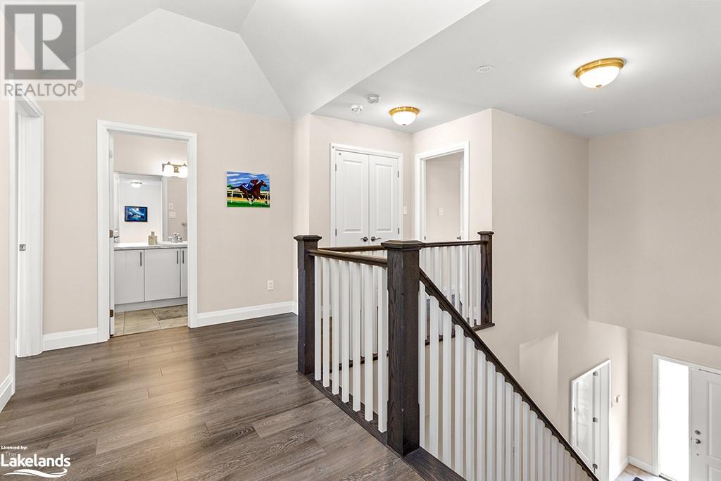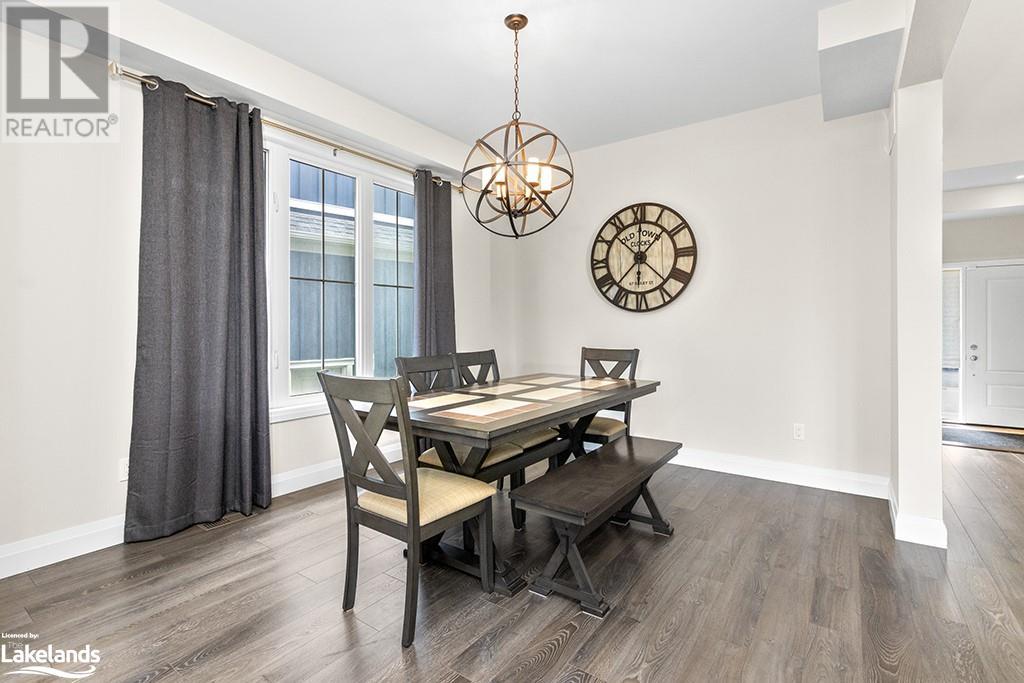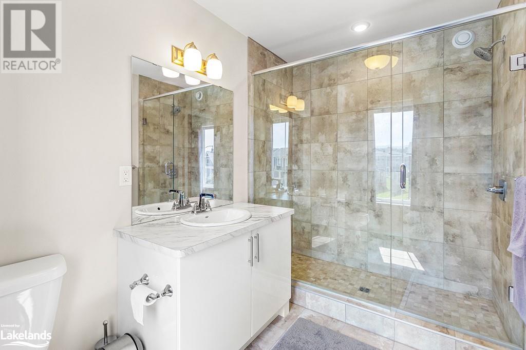 FABULOUS FOUR BEDROOM THREE AND A HALF BATHROOM WINDFALL SINGLE FAMILY HOME - Looking for a resort home close the to the ski trails and Blue Mountain Resort? Look no further! This spacious 4 bedroom plus den has a separate large dining room giving families lots of room to enjoy dinner time together. Nine foot ceilings throughout the main level and coffered ceilings upstairs. Lots of natural light coming into the house through the many over-sized windows. This lovely home backs onto one of the many walking trails and green corridor with lots of trees and shrubs helping make your backyard private. Beautiful stone gas fireplace with reclaimed wood timber mantel gives this home a very warm and inviting mountain feel. Two covered porches and generous backyard provide lots of outdoor living space with views of the picturesque mountains. Convenient entry way through the garage into the mudroom/laundry room. Here are some additional features: •Open to below finished staircase •Open concept main floor as the owners paid to remove the wall for the dining area •Back porch door moved to laundry/mud room to create symmetrical windows in living area •Deluxe laminate flooring throughout including the bedrooms •Garage door openers •A/C •Pot lights in the garage •Pot light outside •Planted trees in the back worth $6000 •Paid lawn service e.g. cutting the grass weed control and snow removal Enjoy The Shed, Windfall's four season facility with a year round swimming pool, hot tub, sauna, fitness room and gathering room making it the social hub of the community exclusively for Windfall residents (id:22211)
