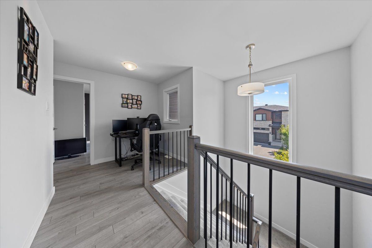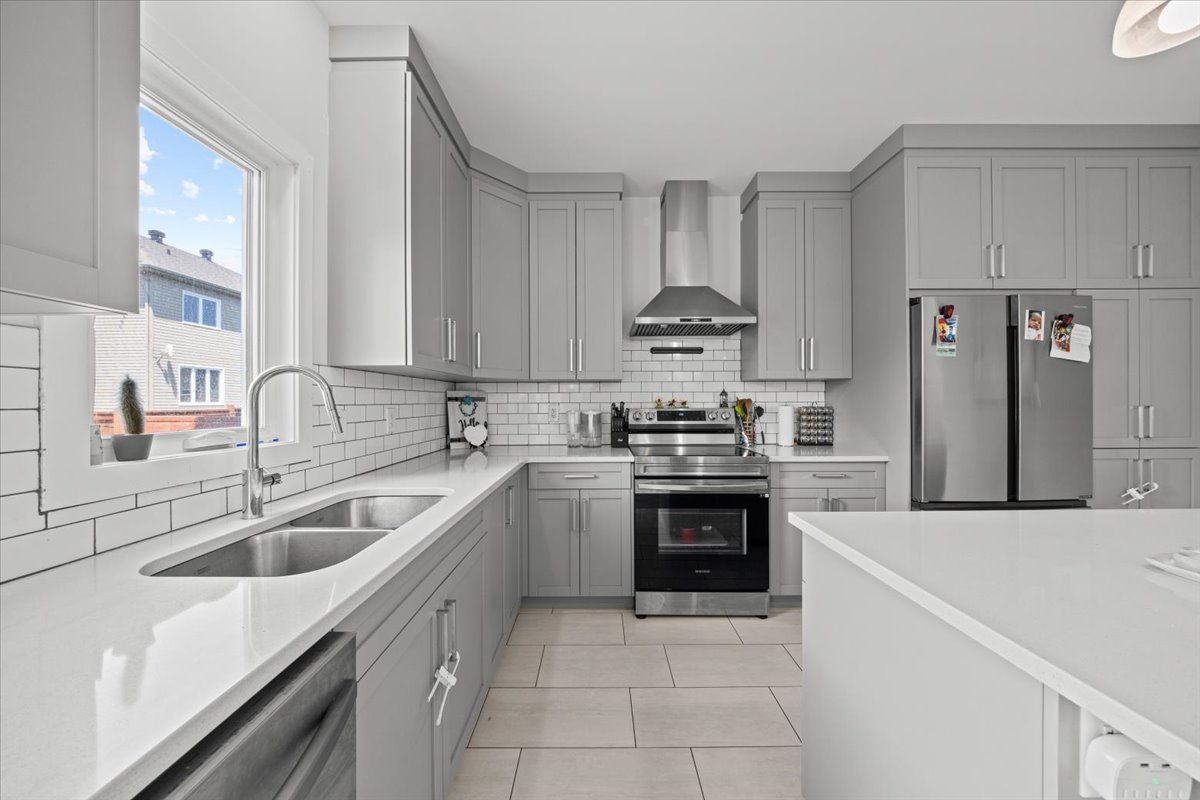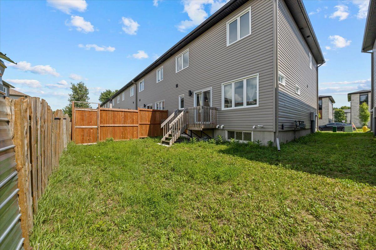 Stunning END UNIT Townhome, just 25 minutes from Ottawa! Welcome to this beautifully upgraded 3 bed, 3 bath home offering style, space and functionality in a prime location. With an open-concept layout, 9 ceilings and large windows, this home is flooded with natural light and designed for modern living. The heart of the home is the chef-inspired kitchen, complete with stainless steel appliances, extended-height cabinetry, elegant backsplash, quartz countertops, and a spacious island with breakfast bar perfect for casual meals or entertaining guests. The adjoining living and dining areas offer a seamless flow and are ideal for hosting family and friends. Upstairs, the generous primary bedroom features a large walk-in closet and a luxurious spa-like ensuite with double sinks and a glass walk-in shower. Two additional bedrooms, a full bathroom, and a convenient laundry room complete the upper level. The fully finished basement expands your living space with pot lights and stylish laminate flooring ideal for a family room, home office, or gym. All bathrooms feature timeless finishes and quartz counters throughout. Additional highlights include a double-lane driveway and end-unit privacy. Thoughtfully designed and move-in ready, this home truly has it all.