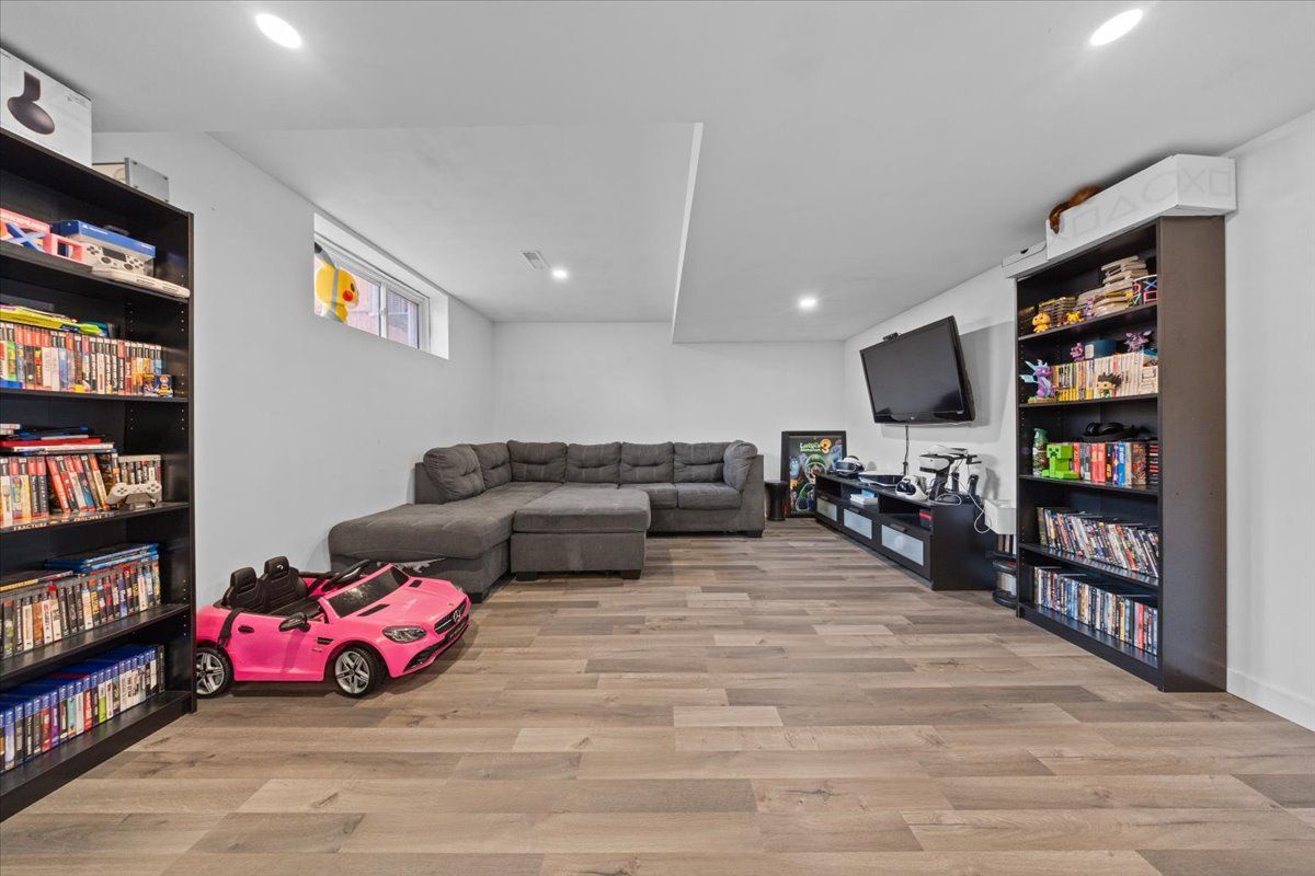上层空间,阔绰主卧配备超大步入式衣帽间及水疗级套卫,双台盆设计搭配玻璃幕墙步入式淋浴间尽显奢华。另有两间卧室、全套卫浴及便利洗衣房完善生活功能。全精装地下室通过嵌入式射灯与时尚复合地板拓展生活空间,可轻松改造为家庭娱乐室、居家办公室或健身区。