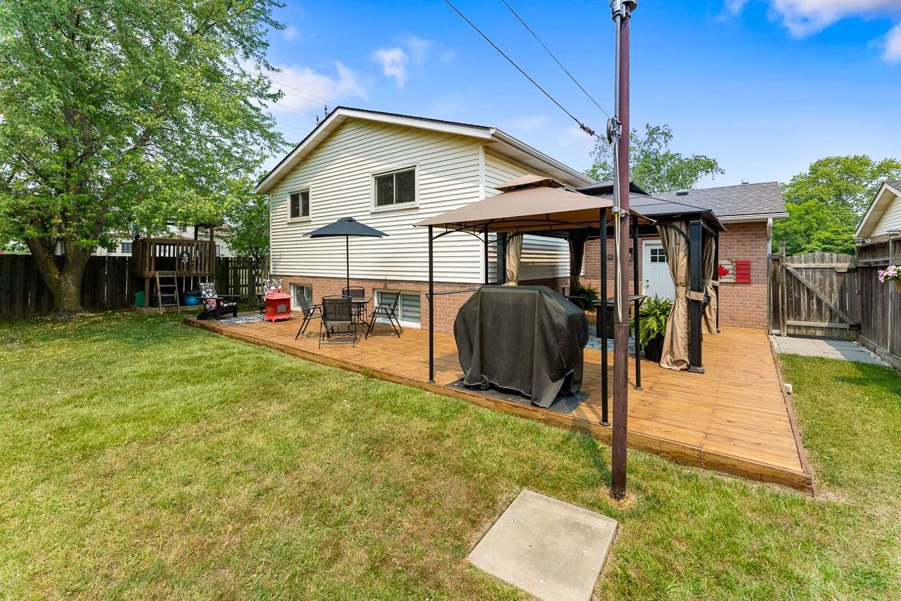 Perfec for first time buyers and a growing family. The spacious main floor interior features newly laid laminate floors throughout the living room, dining room and bedrooms. The eat-in kitchen is a fantastic space and has been well cared for with stainless steel appliances, freshly painted cabinets and pantry. The large living room and dining room will be perfect for entertaining family and friends and the three bedrooms offer plenty of closet space with a shared updated four-piece washroom. The lower level is complete with a renovated rec room with laminate floors, a private laundry area, media room, fourth bedroom and 3-piece bathroom. The outdoor space is perfect for summer nights as it features a huge deck and large full-fenced backyard. The heated garage is currently set up as a workshop and offers an entrance into the home with access to the backyard.Updates include: Roof (2019), Upstairs windows (2021), Laminate flooring (2022), Main floor bathroom (2017), Refinished deck (2023)