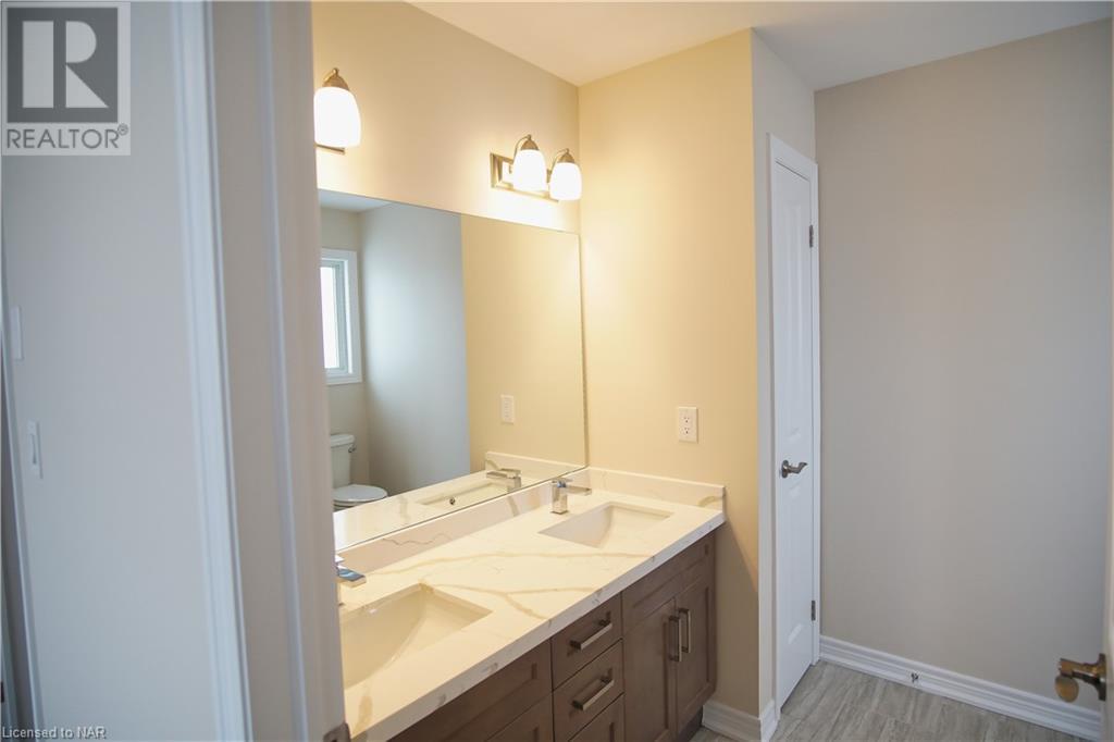Welcome to 27 McMann Drive, Brand New two-story home located in Thorold. Built by one of Niagara's Premier Builders. This home offers 2,150 sf. of finished living space with 3+1 bedrooms and 3+1 baths. Open concept living, kitchen and dining areas with engineered hardwood and tiled flooring. This home features lots of upgrades such as a kitchen with tiled backsplash, quartz counters, under cabinet lighting, crown molding on cabinets, SS appliances. Second floor is completed with 3 bedrooms, master with walk-in closet and 4 pc bathroom with double sink vanity and quartz counters, laundry also on the 2nd floor. The basement is fully finished with a separate entrance, a rec room, bedroom and a 4pc bathroom with quartz counters. A 10x10 deck and sod to be completed by the builder. Nothing to do but move in. Close to schools, 5-minute drive to Brock University, amenities, and highway. Full Tarion Warranty (id:22211)