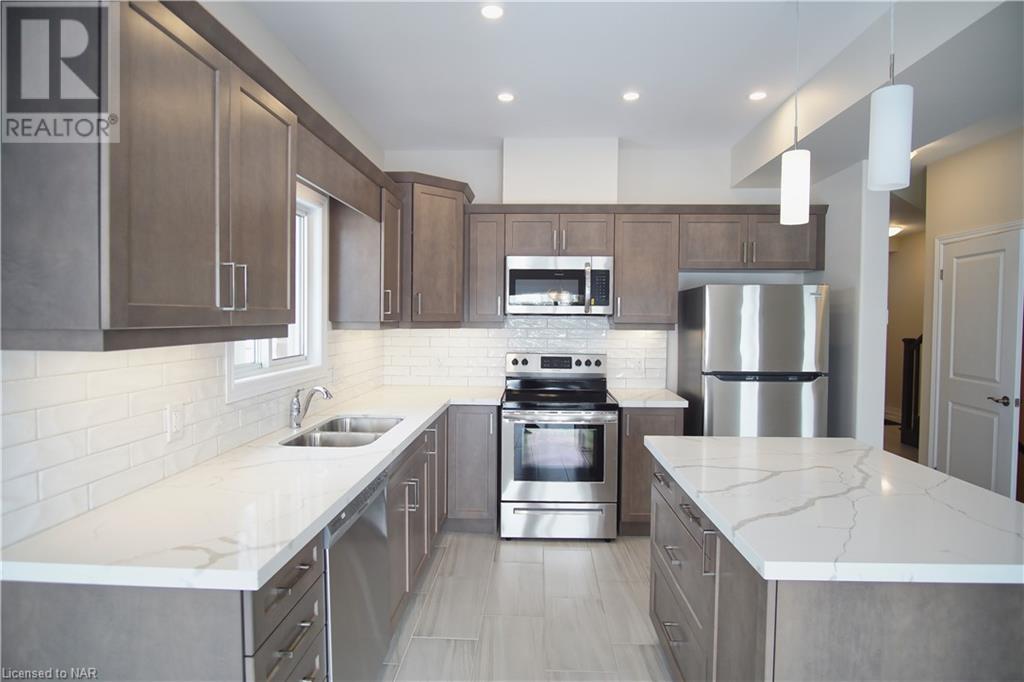 Brand New two-story home located in Thorold, great home for investors or first-time buyers looking to get some income in the basement to help with the mortgage. Build by one of Niagara's Premier Builders. This home offers 2,150 sf. of finished living space with 3+1 bedrooms and 3+1 baths. Open concept living, kitchen and dining areas with engineered hardwood and tiled flooring. This home features lots of upgrades such as a kitchen with tiled backsplash, quartz counters, under cabinet lighting, crown molding on cabinets, SS appliances. Second floor is completed with 3 bedrooms, master with walk-in closet and 4 pc bathroom with double sink vanity and quartz counters, laundry also on the 2nd floor. The basement is fully finished with a separate entrance, a rec room, bedroom and a 4pc bathroom with quartz counters. A 10x10 deck and sod to be completed by the builder. Nothing to do but move in. Close to schools, 5-minute drive to Brock University, amenities, and highway. Full Tarion Warranty (id:22211)