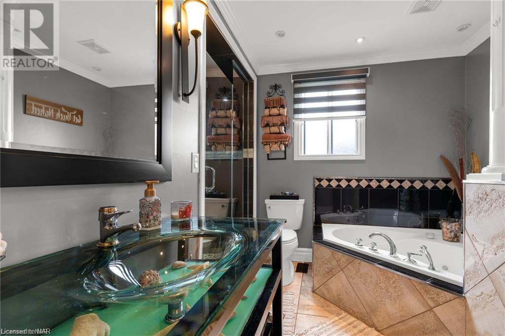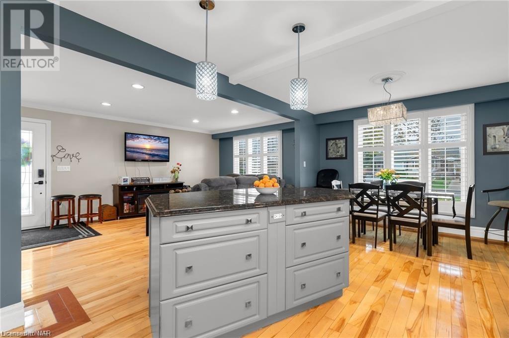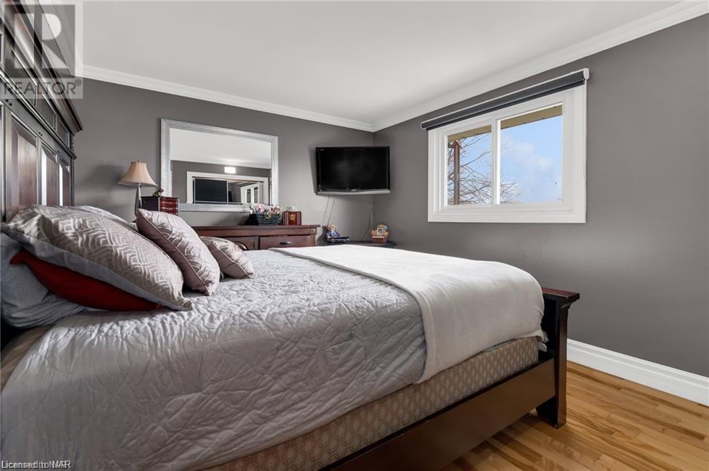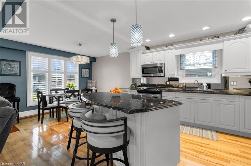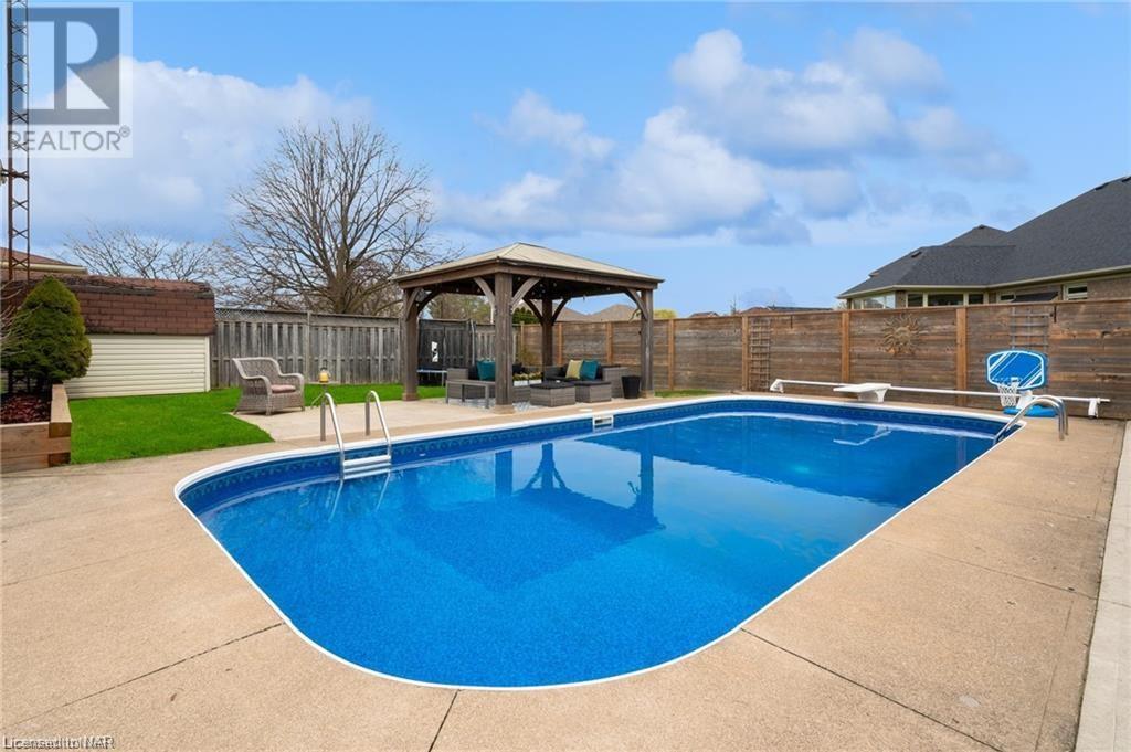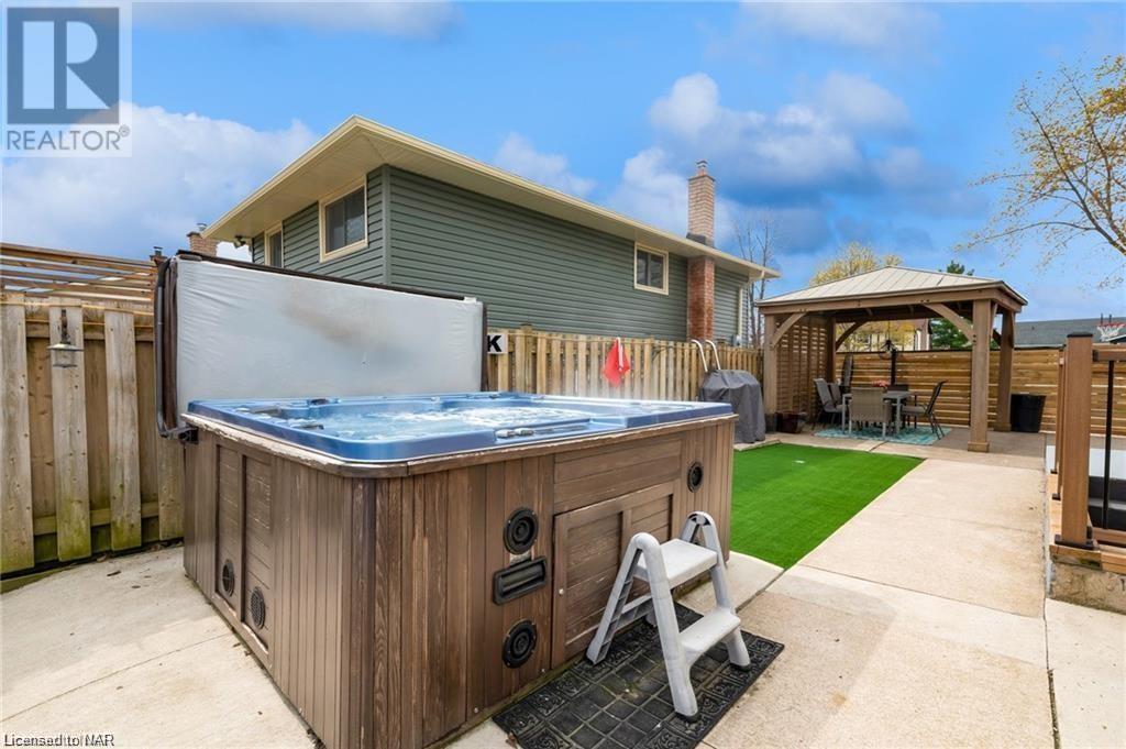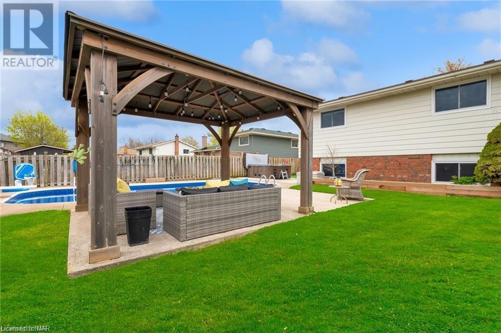 The perfect blend of comfort, style & charm. Here you'll find a true backyard oasis which includes an in-ground pool, hot tub, a putting green & 2 new yardistry gazebos. Inside you’ll be immediately impressed by the gleaming hardwood floors & open concept vibe which seamlessly blends the living, dining, and kitchen area. Upstairs you'll be greeted with three generously sized bedrooms, a 4 piece washroom which includes a jetted soaker tub. On the lower level you'll find an updated family room which is equipped with a gas fireplace, a pool table, 3 piece washroom, wet bar hook ups as well as a separate entrance. The lowest level includes an additional bedroom, laundry room, an office, storage space along with a cantina. Most windows replaced (2017) Pool heater (2018) Pool Liner (2022) Furnace and Ac (2017) 5 minutes to downtown Thorold and all necessary amenities. Come check out this little piece of paradise. A home that is truly a perfect combination of tranquility & character as well as an entertainers dream. (id:22211)