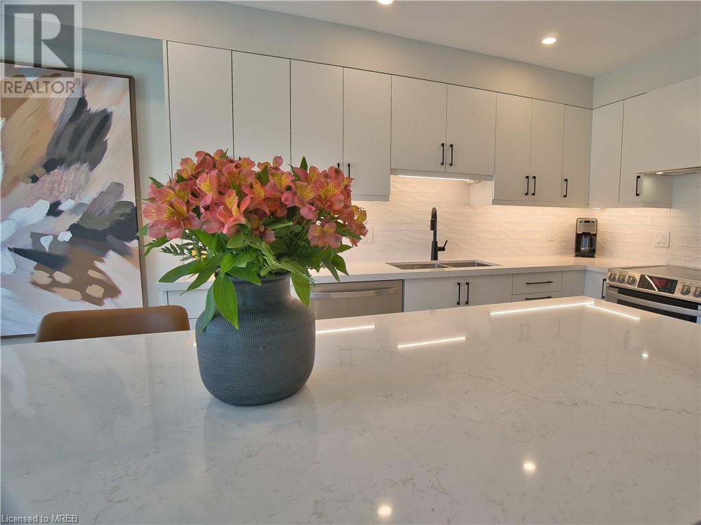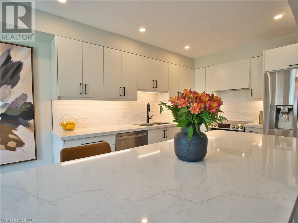 Introducing your dream home! This exceptional freehold townhouse, an end unit surpassing all others, offers a superior living experience. With four bedrooms and two full baths on the second floor, an open concept main floor with high ceilings, and a fully upgraded kitchen featuring a large quartz island, this home exudes elegance. The main and second levels boast new engineering hardwood, while the new stone patio and entrance stairs enhance the outdoor space. Enjoy the finished basement with a three-piece bath and large windows, along with a double car garage and double driveway. Immaculate and fully upgraded, this home offers a short closing option. With fresh paint throughout, it's ready for you to make it your own. Don't miss this opportunity to call this exquisite property yours. Schedule a viewing today and prepare to be captivated by its sheer beauty and luxury. (id:22211)