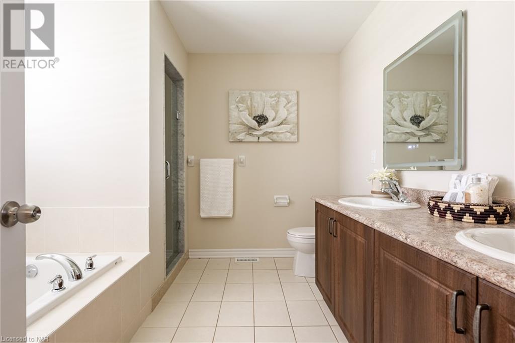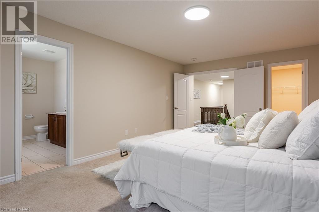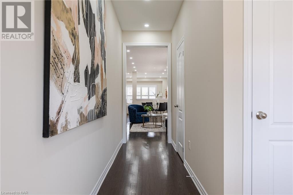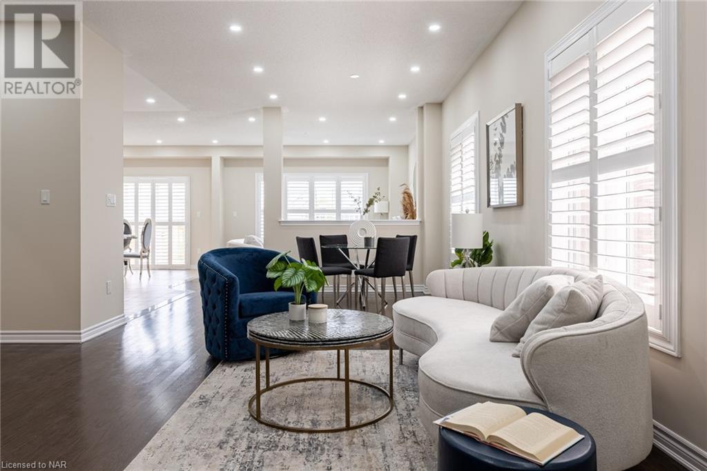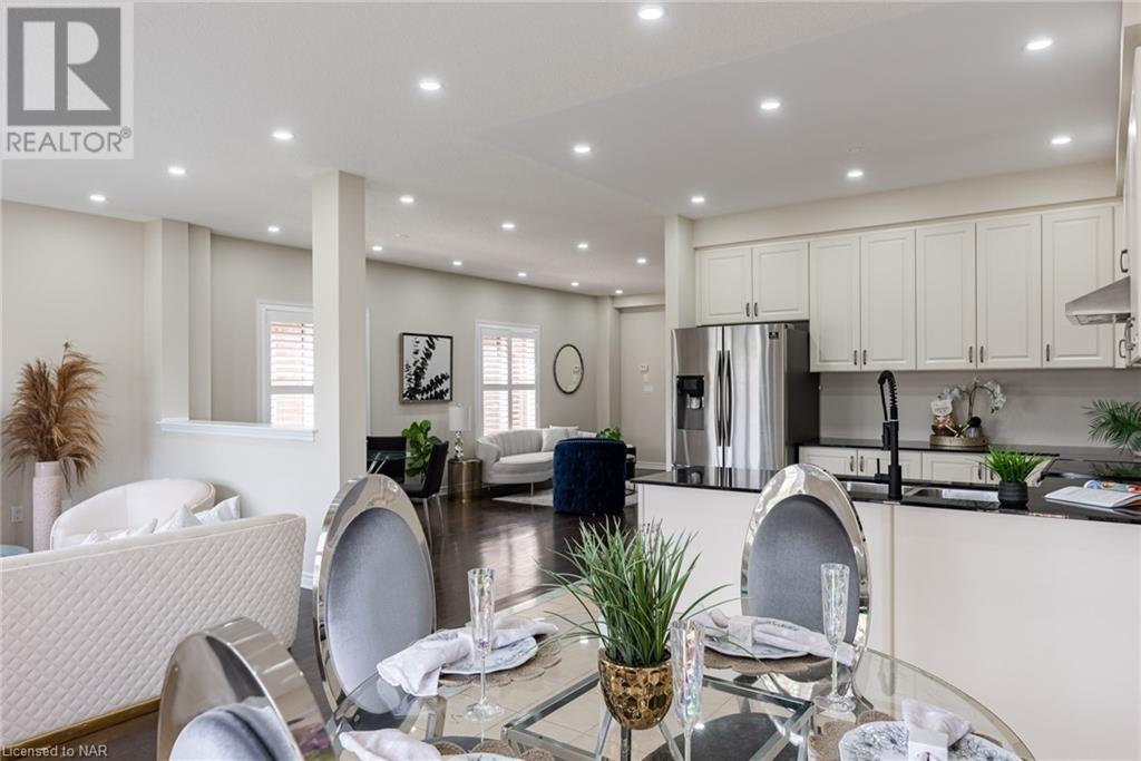 Welcome to Artisan Ridge...a conveniently located and diverse community in the heart of Niagara! This all brick Goldsmith model is the largest offered by the builder at 2600 sq feet. Beautifully appointed with California shutters throughout, 9 foot ceilings on the main floor and 5 engineered hardwood through the main floor and upper hallway. The open concept living space is flooded with light from both the large windows and recessed lighting. Sliding doors lead to the wood deck and private rear yard. A convenient main floor laundry room also serves as a mud room with access to the double garage. Upstairs you will find four large bedrooms with quality broadloom flooring; two with full ensuites and walk-in closets and two sharing a full Jack and Jill bath with ample closet space. The luxurious primary ensuite features a glass shower, double sinks with LED mirrors and a relaxing 5' oval soaker tub. This quality built house is the perfect place to call home for any large or multi-generational family. (id:22211)