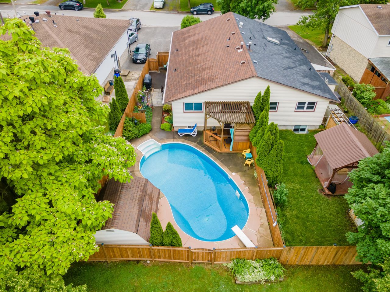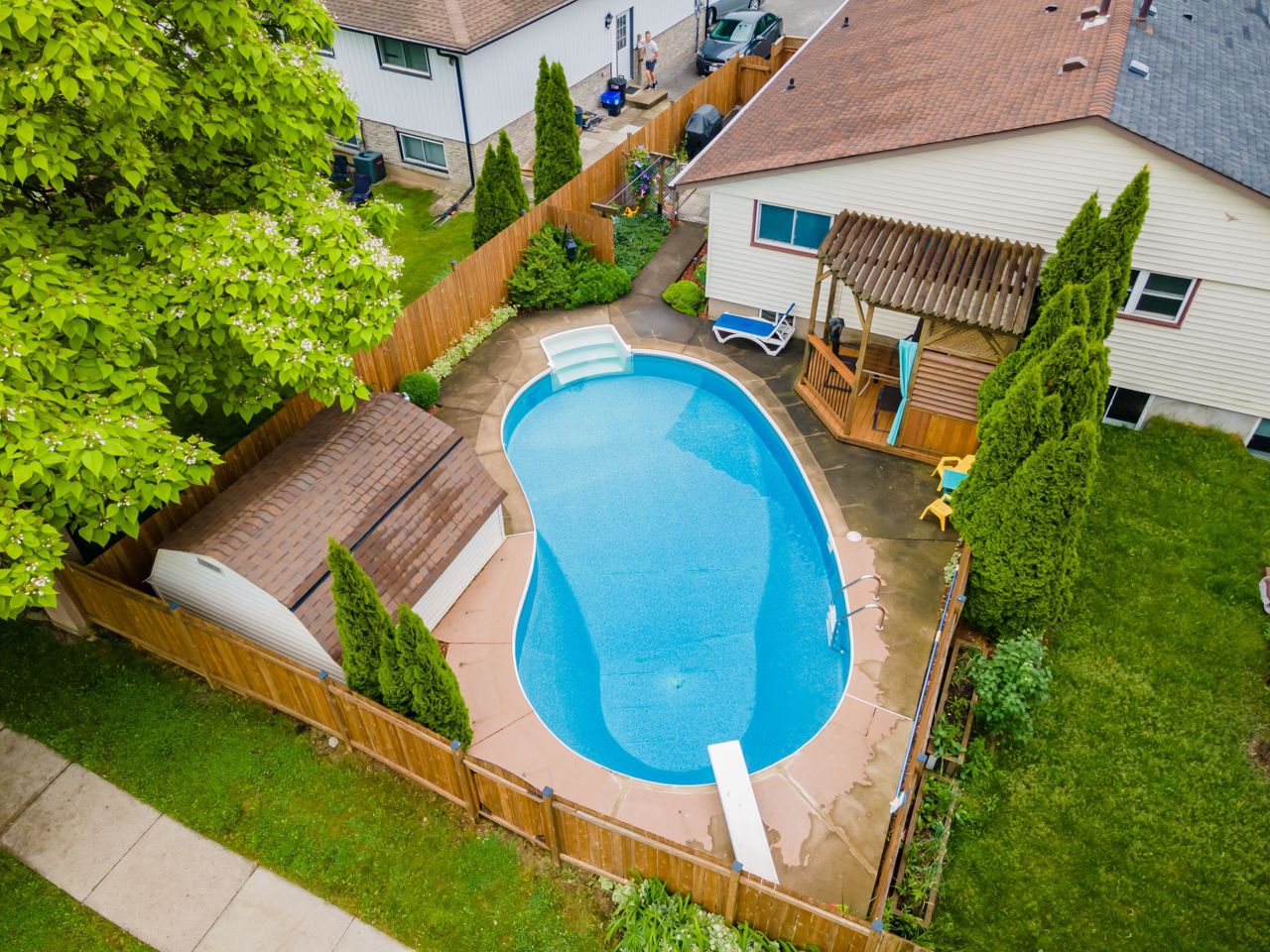Located in Thorold’s highly sought after Confederation Heights neighbourhood, only minutes to Brock, Downtown Thorold, and the 406, 46 Manley Crescent is not to be missed! Offering a fantastic main floor layout with 3 beds, inviting living and dining area, plus an eat-in kitchen and 4pc bath. A separate side entrance leads the lower level which is full of potential and features a spacious rec room, 3pc bath, bright laundry room, and cozy bedroom. Enjoy the Summer months splashing around in the backyard’s sparkling in-ground pool and spend warm evenings sitting under the custom-built wood pergola. With no rear neighbours, close to parks, and backing onto a main transit line, this solid home is full of value and is perfect for first-time buyers, investors, growing families, and active retirees. Recent upgrades include Pool Pump 2015, Liner 2015, Roof Shingles 2019, Rear Fence 2018, Eaves 2020, Gutter Guards 2022.Pool Pump ’15, Liner ’15, Roof ’19, Fence ’18, Eaves ’20, Gutter Guards ’22.