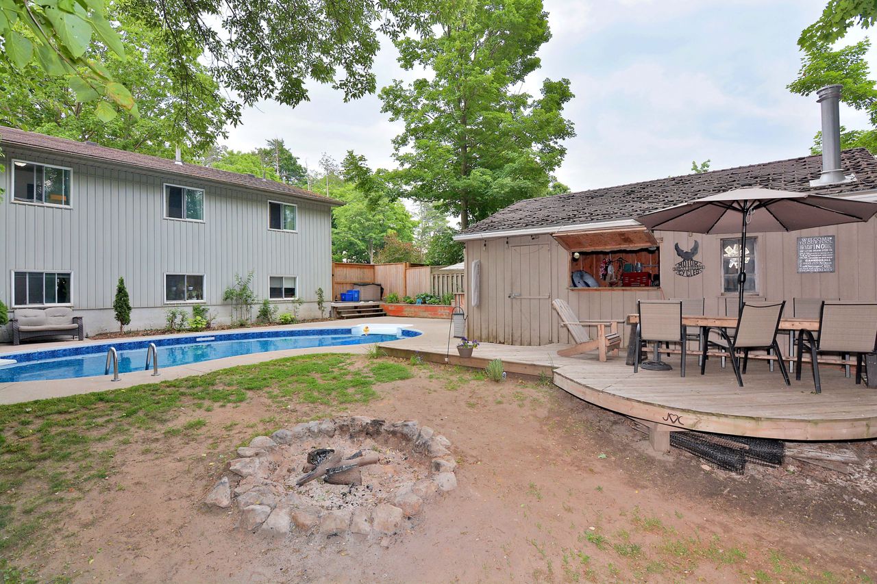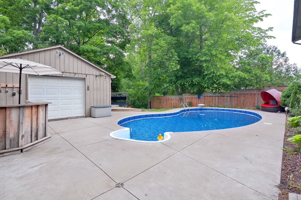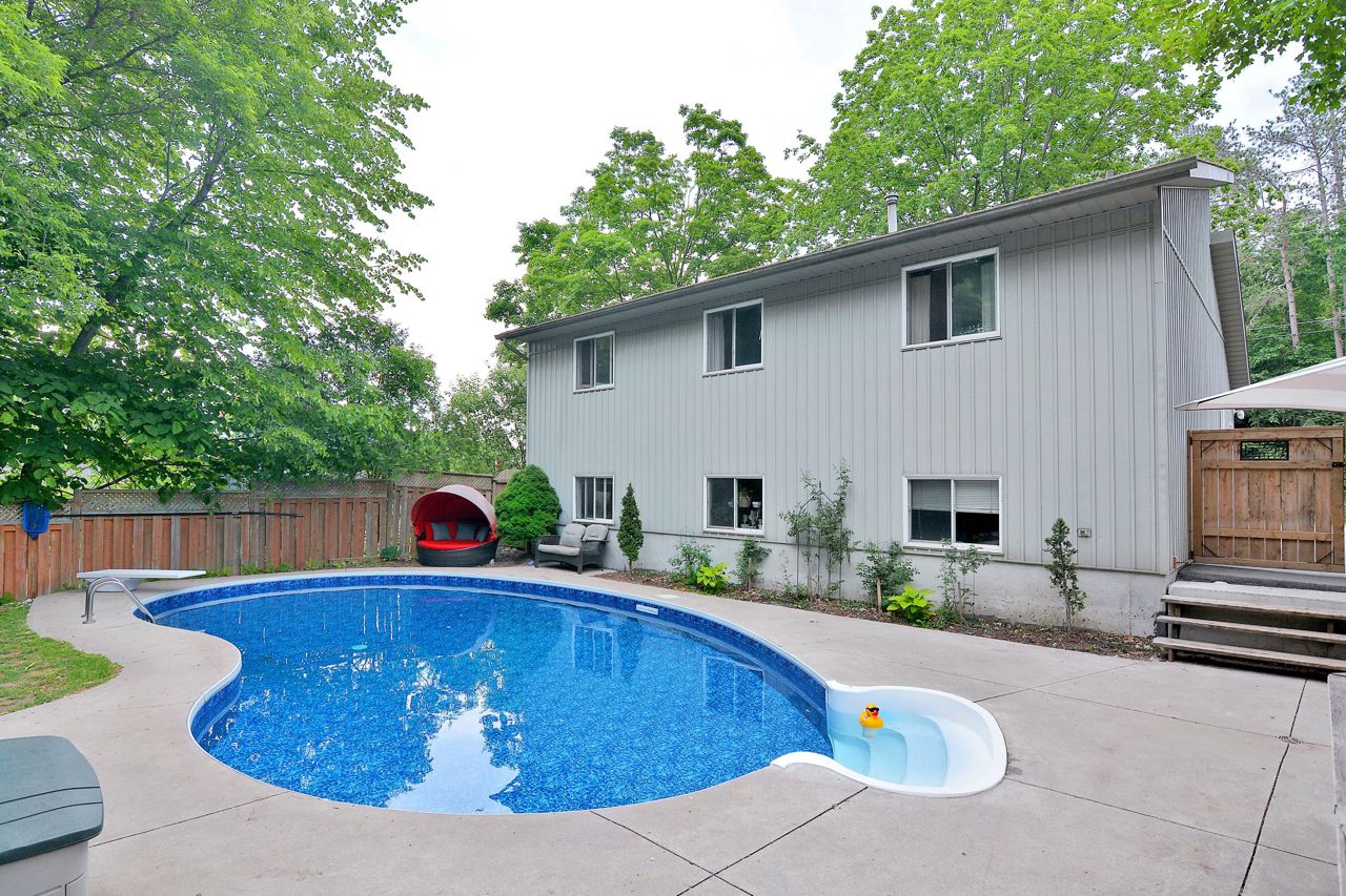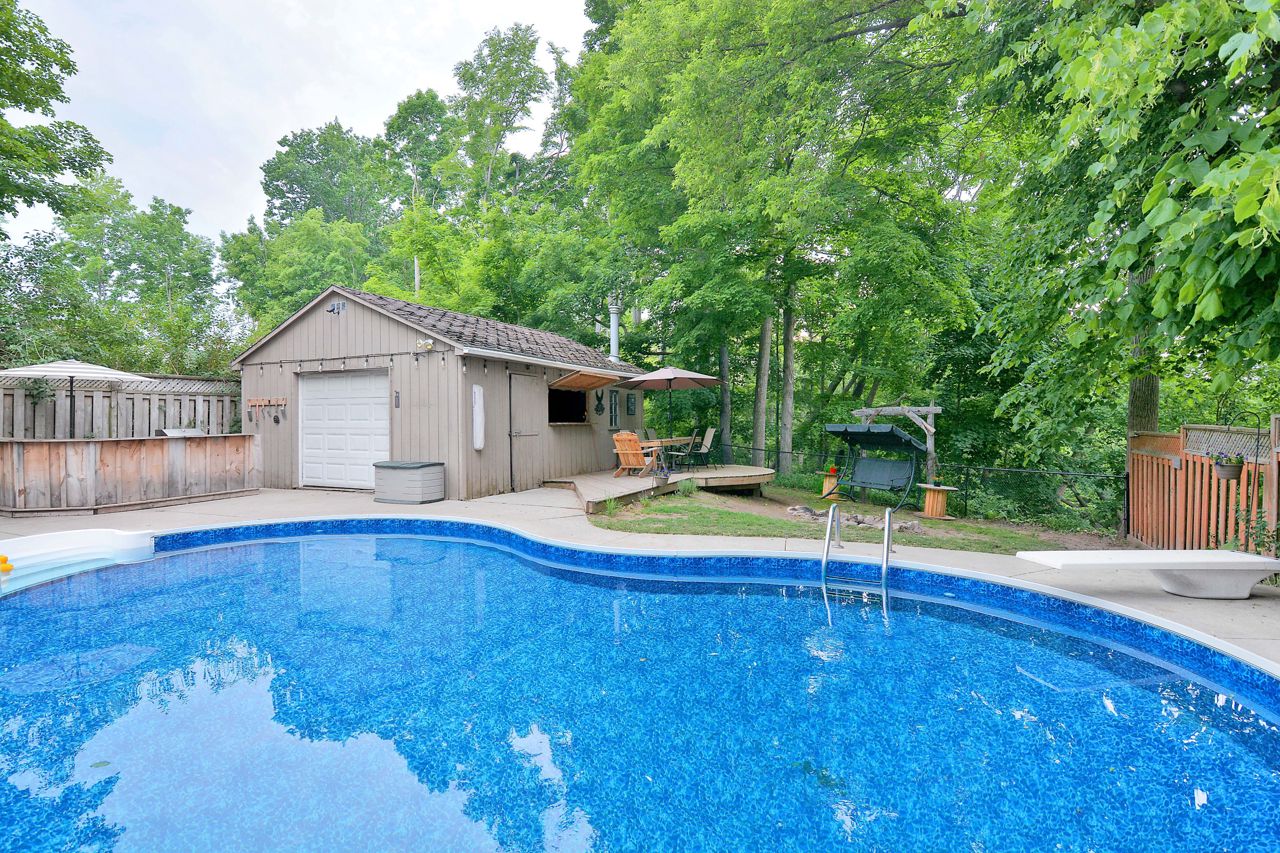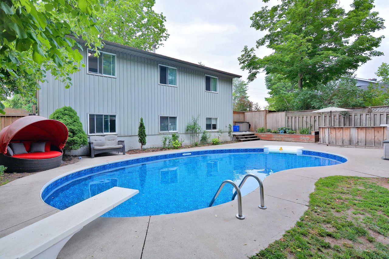 Looking for a backyard oasis... then this is the place for you. This backyard features an inground pool, two bar areas and a patio to sit and enjoy the outdoors. The property backs on a ravine and provides lots of privacy. Inside this backsplit you will find 3 bedrooms on the second floor and an open concept kitchen/ dining room and living room on the main level. The lower level has a large but cozy family room, an office space with lots of natural light and a second bathroom combined with the laundry room. The basement has lots of storage space. The liner for the pool was replaced last year and has a transferable warranty. The driveway was also done last year. Located on a quiet street but still close to downtown.