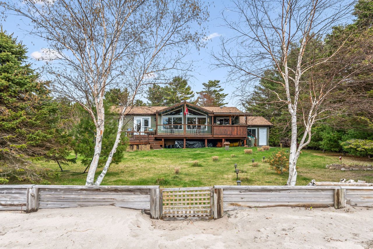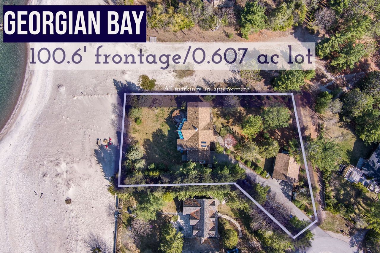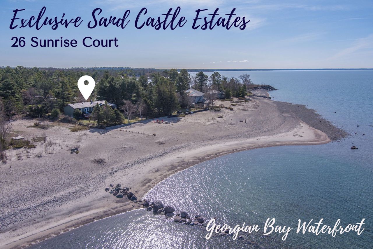 Incredibly rare offering on Georgian Bay in an exclusive & private enclave of waterfront properties in the elite community of Sand Castle Estates. A low annual fee of $140 grants use of the private boat launch, parks & trails. This is an architecturally designed residence with vaulted ceilings, shiplap, skylights & floor-to-ceiling windows that cascade all day sun. Unparalleled views of the lake & Blue Mountain will never get old. Enjoy 0.61 acres with 100.06' of frontage, a sandy beach, and clear water for the ultimate lakeside living. The grounds are spectacular with towering trees, armor stone, & perennial gardens that accentuate the million-dollar view! As a primary residence or a cottage, you are at nature's doorstep. Enjoy a hot tub, your outdoor kitchen, and ultimate privacy every day. Designed to bring nature indoors with large windows & views from every vantage point. Plenty of outdoor storage and parking with a triple garage and private lane. Within 90 minutes of the GTA.Optional membership to Sand Castle Estates, approximately $140/year which includes a private Sand Castle Community Boat Launch, access to 4 private parks, trails, and a private walkway to the beach.