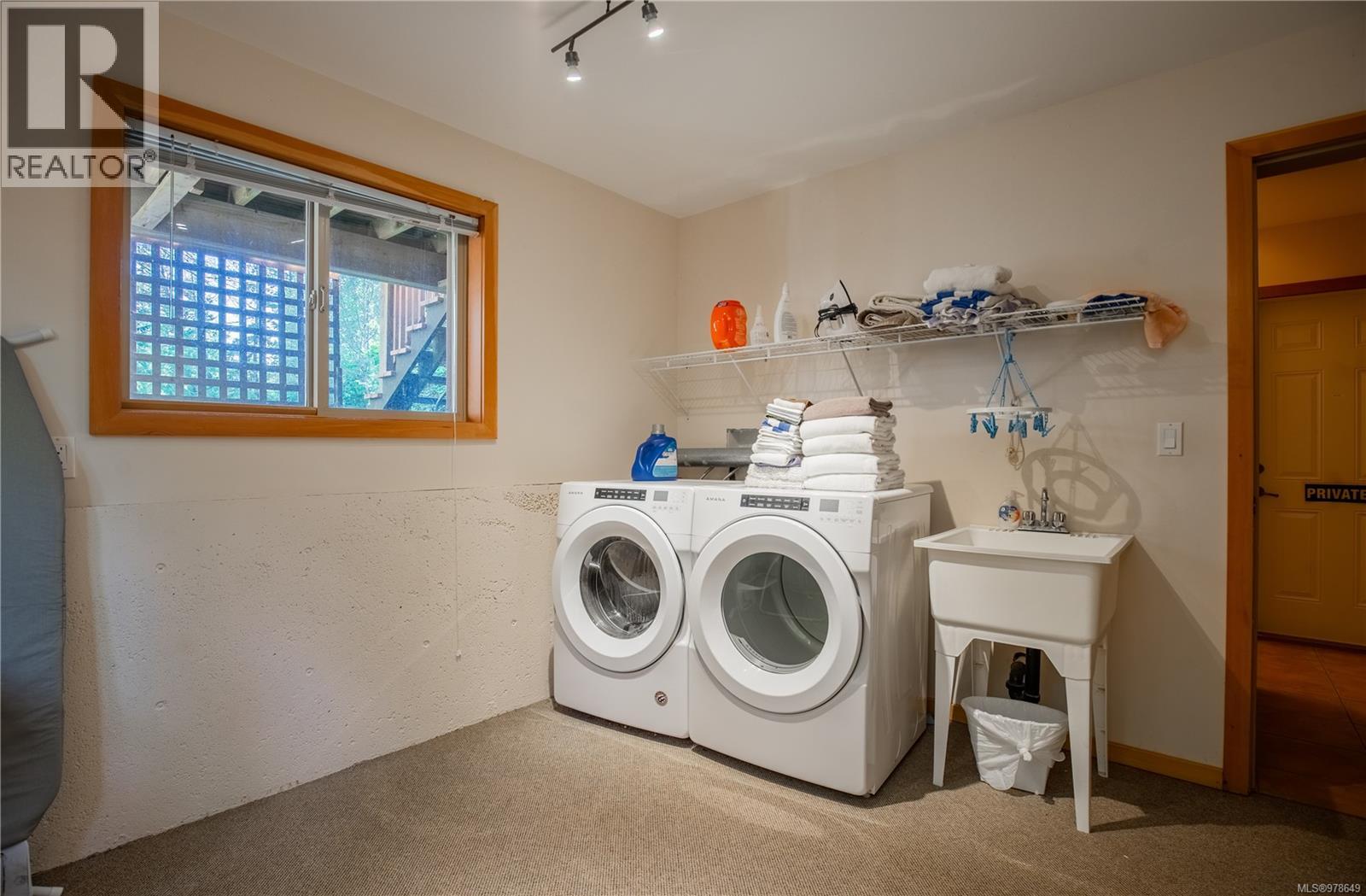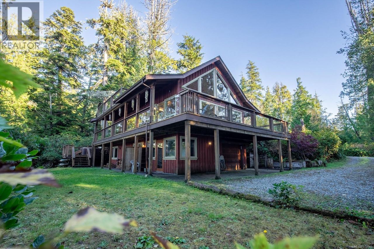 Tofino inlet front oasis. .63 acre lot located at the very end of Jensens Bay Road. 2693sq ft home, built in 2007, 3 bedrooms, 2 bathrooms, plus additional 1 bedroom 1 bath suite. This home has one of the best inlet views in all Jensens Bay. The 1 bedroom suite is on the ground floor, elevating your main living area to the second level which optimizes the views through an abundance of windows. The open-concept great room boasts 18ft vaulted wood ceilings, gorgeous wood beams, wood flooring & trim, & a slate tile propane fireplace to cozy up in front of on rainy days. The main living area leads out to the expansive wrap around balcony, great for wildlife viewing. Kitchen with granite countertops, stainless steel appliances and breakfast bar. Additionally, there are 2 bedrooms and 1 bathroom on the second level. There are plenty of windows to take in the views from almost every room in the house. Third level hosts the primary bedroom, with jack and jill ensuite bath. The primary bedroom has its own third level balcony, also accessible from the extra loft space/games room, which can double as an extra sleeping space. On the lower level, in addition to the 1 bedroom suite, there is a large laundry room, and full garage. The exterior of this home ticks all the boxes, expansive decks, hot tub and firepit both overlooking the inlet, ample yard space, outdoor surf shower, plenty of parking and a storage shed for all your toys. This property is in the desirable Jensens Bay neighborhood, conveniently located in between 2 of Tofino’s best surfing beaches, North Chesterman and Cox Bay. If you have been looking for a property on the tranquil inlet, look no further. GST may apply. (id:61201)